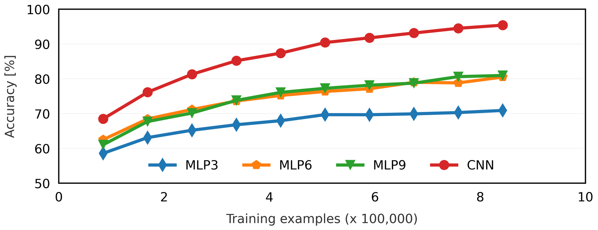 A A A Thermoacoustic stability prediction using Deep Learning Renaud GAUDRON 1 , Aimee S. MORGANS 2 Department of Mechanical Engineering, Imperial College London London, United Kingdom ABSTRACT Thermoacoustic instabilities are an undesirable physical phenomenon that can occur in a wide range of combustors. A well-established formalism to predict thermoacoustic stability is based on physics- based models where the combustor is represented by a sequence of connected acoustic modules. This approach has been successfully used to predict the stability of a variety of combustors but can be relatively computationally expensive when a large number of designs is explored. One option to reduce the computational cost of predicting the thermoacoustic stability of a given configuration is to use a data-driven approach as opposed to a physics-based approach. In the former approach, a Machine Learning algorithm is first trained to discriminate between thermoacoustically stable and unstable combustors using examples generated by a (physics-based) acoustic network model. The ML model is then able to predict the thermoacoustic stability of an unknown configuration much faster than a traditional acoustic network model and with a very high accuracy. This approach has been validated in a previous study for simple combustor geometries using a classifier chain (i.e. multiple classifiers). The objective of this study is to generalise those findings by predicting the thermoacoustic stability of more complex combustor geometries using a single classifier. More advanced classification algorithms are thus required to perform that task. Two di ff erent types of Deep Neural Network architectures are tested in this study: Deep Multilayer Perceptrons with 3, 6, and 9 hidden layers, and a Convolutional Neural Network. Overall, the Convolutional Neural Network was found to be much more accurate than any of the Multilayer Perceptrons. 1. INTRODUCTION Thermoacoustic instabilities are a physical phenomenon that can occur in a large variety of combustors, such as gas turbines [1–3], boilers [4,5], rocket engines [6,7], and many others. They are due to a positive feedback loop between a heat source (usually a flame) and the surrounding acoustic waves [3,8,9]. Those instabilities are undesirable as they can cause flame extinction [10], mechanical fatigue due to increased vibrations [10, 11], and even a complete failure of the combustor [10, 12]. Combustors burning carbon-free fuels, such as hydrogen or ammonia, have been shown to be highly sensitive to thermoacoustic instabilities [13–15]. Predicting and controlling those instabilities is thus crucial to the development of clean combustion technologies as an alternative to traditional 1 r.gaudron@imperial.ac.uk 2 a.morgans@imperial.ac.uk a slaty. inter.noise 21-24 AUGUST SCOTTISH EVENT CAMPUS O ¥, ? GLASGOW CO2-emitting combustors. Various methodologies aiming at predicting the occurrence of thermoacoustic instabilities have been developed in the past few decades. They can be broadly classified into three main categories: numerical simulations, where physical variables are approximated on 2D / 3D meshes [16–19], 0D / 1D analytical models [1–3, 20], and hybrid methods combining models with simulations and / or experimental data [21–24]. Conservation equations are at the foundation of every single one of those methods. The main advantage of hard-coding conservation equations is that the corresponding predictions automatically follow a set of physical principles (e.g. "mass is constant in a closed system"). The main drawback is that conservation equations are mathematically and conceptually complicated. As a consequence, using physics-based approaches requires years of experience and access to substantial numerical resources. An alternative to traditional physics-based approaches was introduced in a recent article [25]. Classification algorithms were first trained using examples generated by a low-order physics-based network model. The thermoacoustic stability of previously unknown configurations was then successfully predicted with a very high accuracy using the trained models. The first step, called training in Machine Learning (ML) terminology, was shown to have a moderate computational cost somewhat comparable to that of traditional low-order network model tools. The second step, called inference, was shown to be extremely computationally e ffi cient (from a thousand to a million times faster than a physics-based network model tool). The first major advantage of ML-based methods is that training and inference can be performed on di ff erent machines. For instance, a cluster can be used to train the algorithms and a regular computer or even a microcontroller can be used to infer the stability of new configurations. Pre-trained models can also be shared as self-contained files on the internet, a common practice in the ML community. The final advantage of ML-based methods is that a pre-trained model can be used indefinitely to predict the stability of new configurations as long as the corresponding parameters remain reasonably close to those of the training examples. In practice, if the initial training step is done properly, re-training a model is seldom required and the only computational cost that matters is related to inference. The main objective of Gaudron & Morgans 2022 was to demonstrate that classification algorithms can be used to predict the thermoacoustic stability of combustors very e ffi ciently and with a very high accuracy [25]. This article was designed as a proof of concept and several limiting assumptions were made to simplify the problem. First, the investigated geometries were relatively simple: they all contained three elements, the flame being located at the beginning of Element 2. In order to accurately describe lab-scale and industrial combustors, more elements are usually required and the flame should be allowed to be located anywhere. Second