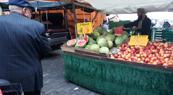 A A A Soundscape Research in Multicultural Market Areas - Example of Berlin Kreuzberg Özlem Gök Tokgöz 1 Institute of Acoustics and Speech Communication, TU Dresden, Germany Helmholtzstraße 18, 01062 Dresden André Fiebig 2 Institute of Fluid Dynamics and Technical Acoustics, TU Berlin, Germany Einsteinufer 25, 10587 Berlin ABSTRACT Market areas are places where sellers and buyers come together periodically. Throughout its history, market areas have always been places that allow rich cultural interaction. At those places usually, people from different cultural backgrounds and speaking different languages come together. Due to this rich cultural and social potential promoting social relations, it has been the subject of many studies from different disciplinary points of view. However, no study deals in detail with the soundscape of those areas where the human voice is often the main sound source and leads to unique acoustic environments. The study determines the role of market area soundscapes by means of user assessments and acoustic measurements. A field study was carried out in market areas in Berlin Kreuzberg. This district is a culturally diverse and multilingual area and in the street markets many products, mainly fruit and vegetable sales, are sold. In this study, comparative sound measurements and surveys were conducted. The field survey, which was held in Turkish, German, and English language, was applied to the group of sellers and buyers. The soundscape of these areas including its perception was systematically investigated and the role of sound as a mediator between cultures explored . 1. INTRODUCTION Market areas can be defined as sellers and buyers coming together periodically. A market area uses urban spaces determined by the authorities at regular intervals.[1] These areas, whose history goes back many years ago, appear in different forms in different geographies and cultures. Market areas have many different names from history to the present such as “street market, flea markets, periodical market, weekly market, bazaar, public market, traditional market.” They are named according to the type of product sold, installation period, duration, and location. Although their names change, their function of bringing together buyers and sellers remains the same. Market areas have always been places that allow rich cultural interaction throughout their history. Social, religious, and political relations are established and interactions take place in these places. It is used not only for shopping but also for social purposes. Due to this rich cultural and social potential, 1 oezlem_goek.tokgoez@mailbox.tu-dresden.de 2 andre.fiebig@tu-berlin.de it has been the subject of many studies like economics, sociology, urban, linguistics, and many cultural studies. In these places, people from different cultures speaking different languages come together. Due to this rich cultural and social potential that encourages social relationships, these markets are seen as cultural.[2] The acoustic character of market areas is also unique. In these areas, human based sounds are the main sound source. All sounds such as speaking in different languages, singing, shouting, music, human steps and movements are heard in these places. Street vendor`s cries are seen as a cultural soundscape.[3] And UNESCO has specified that the detection and protection of acoustic environments such a culturally important area are necessary. [4] The acoustic character of the market areas is also different from each other. Within the scope of the study, especially the markets where fresh fruits and vegetables are sold, and which are established weekly and temporarily are discussed. In this study, it is aimed to determine and evaluate the soundscapes of market areas where different cultures interact. It was searched for the opinions of the users on cultural and social issues about the market areas, the acoustic environment evaluations, the effect of the cultural point of view on this evaluation, and the soundmarks of these market areas. In the study, first, social interactions and acoustic character in the market areas are explained, then measurements, survey studies, and findings are discussed. 1.1. Social Interactions in Market Areas Market areas are important public spaces that provide access to differences, diversity, openness, cultural transfer, and communication. The diversity of social relations established in market areas makes these areas special. Watson defined different forms of sociability through market areas.[5], [6] The forms of sociability in market areas are defined as ‘Rubbing Along’, Inclusive Sociality, Theatre, and Performance, Mediating Differences (see Fig. 1). Different forms of sociability in market areas `Rubbing Along ´ Inclusive Sociality Mediating Differences Theatre and Performance Figure 1: Different forms of sociability in Watson`s for market areas [5], [6] ` Rubbing Along´ means in marketplaces people share limited spaces. People become aware of other people, they know to see and be seen.[6] There is a minimum level of interaction and sharing, between the seller-buyer or the buyer-buyer. People are in a space where you can hear different opinions, and thoughts, because of sharing the limited space and keeping in close contact. Inclusive Sociality expresses the potential of meeting with different age groups, different genders, different ethnic groups, and disadvantaged segments of the society from all walks of society. Everyone is visible to each other. Theatre and Performance are related to the presentation and transmission that the seller puts into selling the product. The seller uses different identities to sell the product and uses many visual and auditory elements to attract the attention of potential buyers. Mediating Differences mean that with the global migration, the markets are now more multicultural. People from different cultures bring things of their own culture to the m