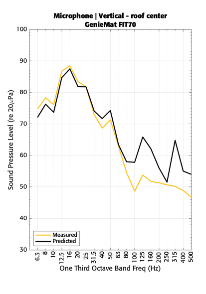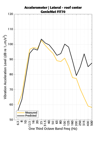 A A A Improvements to the 1/3 octave band heavy-hard impact prediction method Golden Matthew 1 Pliteq Inc. 131 Royal Group Crescent Vaughan, ON, L4H1X9, Canada Patzke Tim 2 Pliteq LTD. Compass House Vision Park Chivers Ways Histon Cambridge, CB24 9AD, UK ABSTRACT Previously, the authors presented a 1/3 octave band heavy/hard impact prediction method based on force pulse measurements from a drop tower. Since then, we have been applying the method with a variety of success. Previous papers presented on this topic were based on above grade applications in North American buildings. This paper will be looking at a slab-on-grade construction in the United Kingdom. This paper will be focused on the accuracy of the method and possible modes of error. It is shown that improved methodologies to measure the force pulse increased the accuracy of the prediction. 1. INTRODUCTION Over the last 8 years, there has been an increased interest in impact noise and vibration due to heavy-hard fitness sources. The authors along with other co-authors have presented many papers at conferences on measuring the noise and vibration in labs designed for ASTM E492 [1], measuring the actual impact force with drop towers [2,3,4], creating a prediction methodology based on the actual impact force and an in-situ measured transfer function [5,6], and finally predicting the one-third octave band sound and vibration levels using data obtained with a reference drop of a 7.26 kg (16 lb) spherical mass dropped from 1 m (39.4 in) onto a thin reference flooring sheet [7]. Both predictions methodologies proved successful below 100 Hz but were less successful at frequencies above 100 Hz. This paper will apply the author’s one-third octave band prediction method to a building in the United Kingdom and use that to examine possible sources or error and how to fix them. mgolden@pliteq.com 1 tpatzke@pliteq.com 2 tt inter-ncie’” SCOTTISH evENT CAMPUS 3) O , o iLASGOW 2. DROP TOWER In 2017, Pliteq finished building an automated drop tower, shown in Figure 1, to measure the impact force of heavy hard objects dropped onto fitness flooring. This drop tower is used for measure both single impacts and long-term fatigue performance. Two carriages are supported on low friction rails as to only allow one axis of motion. The upper carriage lifts the lower carriage to a selected height and releases it so that the lower carriage will impact the test specimen with close to free-fall like conditions. The lower carriage can be fitted with various load plates to adjust the mass of the lower carriage and the impact foot shape can be changed to simulate different types of weight impacts. A load cell measures the impact force pulse. Not shown in this photo, a large granite block with four load cells has been place directly below the lower carriage. This was done in an attempt to measure the force below the fitness flooring. The granite block was design to be large enough to avoid possible resonance modes in the frequency range of interest. Upper Carriage Force gauge Impact Foot Lower Carriage Test specimen Fig. 1 - Heavy Weight Drop Tower at Rest. This design has lead to three possible sources of systematic error. The first is that the lower carriage may be slowed down from friction on the rails. We have investigated the velocity of the lower carriage right before impact with displacement sensors and high-speed photography. It has proven difficult to measure the velocity with high enough precision and low enough bias to be certain the lower carriage is in free-fall. However, we have determined that this source of error seems to be well controlled. The second source of systemic error is that some of the mass of the upper carriage is below the load cell, in the impact foot, so the load cell does not experience all of the impact force. Since we can not impact the fitness flooring with the bare load cell, the error can not easily be eliminated, but it can be accounted for. Ideally, the impact foot would be massless. This would allow all of the mass to act on the upper side of the load cell. Since this is not possible we are measuring a reduce force at impact and a negative force while the carriage is rebounding. We have been exploring ways to compensate for this systematic error or to measure the impact force in other ways but have yet to find a superior solution. The mass of the impact foot also has resonances both internal to the foot and due to the mass of the impact foot hanging on sensor with the stiffness of the sensor creating a spring mass system. The third source of systematic error is likely the resonance mode due to the mass of the granite block on the stiffness of the sensors. This created a ringing decay after the impact foot has left contact with the fitness floor. These sensors are currently only used when the upper carriage is not used as the impacting source. As a last minute addition to this paper, a small scale force plate was designed, built and tested which has produced superior results when measuring small steel shots on thin fitness flooring. To date, any ringing in the data after impact has been address with exponential windowing. The authors are aware of the signal processing issues this creates but the effects can be minimized. 3. ONE-THIRD OCTAVE BAND PREDICTION METHOD Last year, Golden, et. al. [7] showed that data from the drop tower can be used along with in-situ measurements of lower mass impacts, a steel shot of 7.26 kg, onto a pretested sheet of GenieMat FIT08 used as a reference floor sheet. The method is summarized in Equation 1. oov sig osz 00% = 091 & sat J itd Microphone | Vertical - roof center GenieMat FIT70 ve Measured 2 8 & & (eavloz a1) jan27 ainssaig punos 100 90 40 |. 30 L ′  I , F , max , DUT = L ′  I , F , max , Ref −( L dt , Ref − L dt , DUT ) (1) L ′  I , F , max , DUT Where is the in-situ measured fast-time-weighted maximum vibration level of the device under test, is the in-situ measured fast-