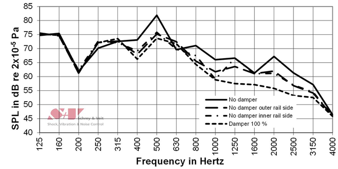 A A A Assessment of the Noise Reduction Impact from Application Restrictions on Rail Dampers Christoph Gramowski 1 Schrey & Veit GmbH Graf-von-Sponheim-Straße 2, 55576 Sprendlingen, Germany Roxana Donner 2 Acouplan GmbH Bundesallee 156, 10715 Berlin, Germany ABSTRACT In the last decades, rail dampers had become a common noise abatement measure at several mainline and metro networks. Rolling noise reductions outdoor/indoor up to 4/8 dB had been found. While the beginning of damper application was started with multiple test sections, infrastructure managers had raised installation restrictions from other related technology departments like signaling and communication. This is leading to defined sections where one rail has to remain partially free from dampers or the track has to remain completely free from dampers. These sections become relevant when the damper application is caused by noise tackling action plans. Therefore, the acoustic impact was assessed by a) laboratory test track analysis (partially free) and b) environmental noise prognosis software (completely free). It is shown, that also for a partially free rail, a cancellation of the noise reduction can be expected for single 1/3 octave frequencies. This can be relevant for the overall noise emission. The effect from the completely free rail is much larger. Railway noise mitigation has to consider these results or, if possible, the rail damper technology has to be improved to avoid these restricted sections. 1. INTRODUCTION In the last decades, multiple approaches on ‘innovative’ rail noise abatement had been realized. However, only a small number of technology approaches had been stepped into a ‘serial’ usage. One of these technologies are rail dampers. This label represents all vibration reducing devices, which are directly applied to the rail, independent from their material, design and/or manufacturer. Common characteristic is that these devices are acting passive, thus without external energy supply. Core advantage is that a rolling noise reduction is introduced with low effort, compared to other trackside measures like noise walls. Also, most of the damper types are maintenance free, do not need operating supplies (e.g. lubricants) and are made for a long lifetime. Most of all track maintenance works remain possible. 1 christoph.gramowski@sundv.de 2 roxana.donner@acouplan.de itr Tacs - he "intey neice SCOTTISH EVI VEN aT CAM MPU us = 202?2? GLASGOW Figure 1: Rail damper at mainline (left) and metro track (right) Rail dampers are mostly used at mainline tracks and metro networks, see Figure 1. For the latter, the low rail fastening stiffnesses’ at slab tracks are leading to remarkable indoor noise reductions of up to 8 dB [1] [2]. At mainline tracks, usually different train types like freight, intercity and regional trains are operating. This is leading to a design where the damper benefit is balanced between the relevant train types, decreasing the noise reduction to common values of 2-3 dB [3] [4]. Also, for passengers inside trains, this rolling noise reduction is perceivable, if this is not masked by additional noise sources. In the beginning, dampers had been applied following the approach “the more – the better”. From different track technology related reason this approach has been reduced by restrictions. However, noise prognosis calculations, which are often executed previously, are usually not considering these restrictions. From the acoustic point of view, it is interesting in which amount the rail damper’s noise reduction is affected by these restrictions. In-field measurements are in general possible but suffer from high organizational, personal and material efforts. 2. EXISTING RESEARCH Related investigations in the acoustic effect of reduced damper amounts had not been in the focus since general damper application questions are from a higher interest. Two publications are known from Ho et al. [5] and Croft et al. [6]. Ho et al. research is motivated by continuously less dampers per rail due to limited track access time (for installation) or a limited budget for purchase and installation work. For a ballasted track, it is shown that the Track Decay Rate (TDR) [7] starts to increase when only ¼ of the dampers are installed. Furthermore, “half installed” dampers are further increasing the TDR, leading to only small differences in most frequencies compared to a full damper installation. In contrast, for a booted sleeper track, the TDR improvement from ¼ dampers is less pronounced and it remains a remarkable TDR difference between “half installation” and “full installation”. Rail vibration measurement results are confirming these findings at most of the considered locations at the rail. Croft et al. are focusing on slab track applications with different technical constellations (rail type, fastening type etc.). The damper applications vary also in term of ‘density per rail meter’, similar to Ho et al. Results are presented both for in-field measurement and also a “short rail test” according the Stardamp approach [8]. The in-field results are determined by the rail roughness which makes an objective comparison difficult. In contrast, the “short rail” test offers neutral boundary conditions where only single parameter can be adjusted – but finally no sound reduction can be assessed. It is shown, that different damper densities are leading to damping changes which also differ in the frequency range but it is trending to decrease with less dampers. Both papers are addressing the damper density but not track sections, which are completely free of dampers. 3. RESTRICTIONS FROM INFRASTRUCTURE MANAGERS The beginning of rail damper application was started with multiple test sections [9] [10]. The installation was aiming on gathering noise reduction experience – more or less without installation restrictions. However, a deeper communication inside the Infrastructure Managers (
