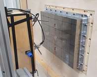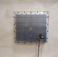 A A A Testing the active minimization of the total radiated sound power from a vibrating plate Mehran Hajilou 1 Helmut-Schmidt-University / University of the Federal Armed Forces Hamburg Holstenhofweg 85 22043 Hamburg, Germany Delf Sachau 2 Helmut-Schmidt-University / University of the Federal Armed Forces Hamburg Holstenhofweg 85 22043 Hamburg, Germany ABSTRACT This paper presents an experimental investigation of an Active-Noise-Control (ANC) system for reducing unwanted so-called primary sound by destructive interference with sound generated by so-called secondary sources (loudspeakers). In this work the primary source is a vibrating simply supported plate which is radiating sound into the free field. The loudspeakers are placed in front of the plate. The ANC-system utilizes the measured signals of the primary accelerometers which are placed on the surface of the plate. The number of the primary accelerometers corresponds to the number of the loudspeakers. Also, one secondary accelerometer is fixed onto each loudspeaker cone. Furthermore, a microphone in front of each loudspeaker measures the near field sound pressure. An adaptive feed-forward-controller is used to calculate the optimal control signal for each secondary source. The optimal control is achieved by minimizing the radiated active sound intensity in front of each loudspeaker in order to minimize the total radiated sound power of the primary and secondary sources. The ANC- system is tested in different configurations with one or two loudspeakers in front of the plate. Also, an approach for the system calibration is developed to compensate the phase deviation between the true and the measured sound intensity. 1. INTRODUCTION The minimization of the radiated sound power from an interfering source with a destructive secondary source is derived analytically in [4], [5] for point source radiators in the free field. Here, the idea is used that the sound power of each point source can be described by the product of its sound flow and the sound pressure at the position of the point sources. By formulating this problem into a quadratic error function depending on the complex sound flow of the secondary sound source, the global minimum of the total radiated sound power can be calculated. One important key finding through this derivation is that a reduction in the radiated sound power from the primary and secondary sources in the free sound field can only be achieved if the distance between the sound sources is less than half 1 hajiloum@hsu-hh.de 2 delf.sachau@ hsu-hh.de ceed nell if we rT inter.noise 21-24 auGUsT Scormisi event canpus an acoustic wavelength. The resistances components (real part of the acoustic impedance) of both sound sources are required in order to calculate the minimum of the total sound power. In practical applications with loudspeakers, these quantities are difficult to determine metrologically because the volume velocity and the sound pressure should be measured at the position of each source. This question is addressed in [6]. The expanded theoretical foundations are described in [7], [8] by means of the analytical model of the point sources in the free field depending on the frequency. The minimum of the radiated sound power from multiple interfering primary sources and destructive secondary sources is reached when the radiated sound power from each secondary source becomes zero. The volume velocities of the secondary sources become in phase or out of phase with the volume velocities of the interfering sound sources. The limits of this method are met when there are several sound sources which are distributed in a space with a diffuse sound field and when the distance of half an acoustic wavelength in the free sound field is exceeded. The undertaken analytical and experimental investigations for this purpose are limited to examples with sinusoidal sound in the weakly dampened rooms with a loudspeaker each for the constant periodic disturbance excitation and anti-noise generation [9], [10], [11], [12]. The secondary loudspeakers are controlled manually so that their radiated sound power is zero or the potential sound energy in the entire room is minimal. Placing a loudspeaker directly in front of an interfering loudspeaker is beneficial due to the high acoustic coupling. Another advantage of this method is that a direct accessibility to the acoustic radiation impedance of the interfering source is not required. The question of implementing the method in an adaptive control system remains unanswered. A formulation that minimizes the total radiated sound power will derive a reference solution. This solution can be used for theoretical preliminary investigations of anti-noise systems as a reference point of the highest possible noise reduction. In [13] an extended analytical study for minimizing structure borne noise is carried in order to minimize the total radiated sound power of a rectangular simply supported plate in a baffle with the point sources as secondary sources. The achieved minimum of the total radiated sound power depends on the number of the vibrating mode of the plate, the position and number of the secondary sources. An extended approach to the investigations in [13] is demonstrated in [14], [15] on a rectangular simply supported plate. In these studies, the plate is excited with an incident plane wave or a point force. The radiated sound from the vibrating plate and the flat anti-noise source of a finite surface is formulated by subdividing them into surface elements that vibrates in phase (elemental sources). The distance between the plate and the anti-noise sources is much smaller than the excited acoustic wavelength. By knowing the radiation impedance, the scalar error function for minimizing the total radiated sound power is derived with the mean of normal velocity and the sound pressure of the surface of each elemental source. Numerical calculations show that minimizing the total radiated so