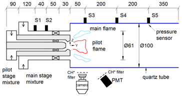 A A A The effect of main stage flow velocity on thermoacoustic instability of stratified swirl burner Meng Han 1 National Key Laboratory of Science and Technology on Aero-Engine, Research Institute of Aero- Engine, Beihang University, Beijing,100191, P. R. China Xiao Han 2 * National Key Laboratory of Science and Technology on Aero-Engine, Research Institute of Aero- Engine, Beihang University, Beijing,100191, P. R. China Jianchen Wang 3 National Key Laboratory of Science and Technology on Aero-Engine, Research Institute of Aero- Engine, Beihang University, Beijing,100191, P. R. China Yuzhen Lin 4 National Key Laboratory of Science and Technology on Aero-Engine, Research Institute of Aero- Engine, Beihang University, Beijing,100191, P. R. China ABSTRACT In this paper, two group experiments were conducted to study the effect of the main stage flow velocity on thermoacoustic instability and flame macrostructure. The experiments were carried out under atmosphere condition, and namely the pilot stage flame mode and the stratified swirl flame mode. The experimental results show that in the pilot stage flame mode, the thermoacoustic oscilla- tion amplitude remains constant (around 1000 Pa) with the decrease of the main stage flow velocity. But when the velocity is zero (without main stage air), the thermoacoustic instability disappeared. In the stratified swirl flame mode, the amplitude of thermoacoustic instability is the largest (around 300 Pa) when the main stage flow velocity is 6.2 m/s, and the amplitude is slightly smaller in other work- ing conditions. The time-averaged flame shape under the two flame modes is recorded and discussed. This paper highlights the effect of interactions between the pilot stage flame and main stage air or flame on thermoacoustic instability. 1. INTRODUCTION Lean premixed prevaporized (LPP) combustors are capable to reduce NOx emissions but are often affected by combustion instabilities generated by mutual interactions between pressure fluctuations ( 𝑝′ ) and heat release rate oscillations ( 𝑞ሶ′ ) produced by the flame[1]. Based on the Rayleigh criterion [2], the interaction is constructive only when 𝑝′ and 𝑞ሶ′ are in phase, i.e. the phase difference is within 1 hanmeng@buaa.edu.cn 2 han_xiao@buaa.edu.cn 3 wangjianchen@buaa.edu.cn 4 linyuzhen@buaa.edu.cn 1 worm 2022 90 degrees. Combustion instabilities are undesirable and sometimes dangerous, which should be avoided or controlled [3]. To ensure a wide stable operating range, LPP combustors often feature staged combustion with a central pilot flame surrounded by an annular main flame. The interaction of the pilot and main flames is complex and often show stratification [4]. Figure 1(a) shows a typical structure for a concentrically staged combustor, which consists of pilot and main swirlers separated by a lip structure. The resulting flow field features three major shear layers, the inner shear layer (ISL), lip shear layer (LSL), and outer shear layer (OSL). Swirling flames are usually stabilised inside the shear layers with relatively low local flow velocity. In recent decades, stratified swirl flame has received increasing concerns. Research group in Cam- bridge has conducted a series study of undivided stratified swirl flame, including flame shape, flame response, and nonlinear behaviour [5,6]. Kim and Hochgreb [7] observed that in an undivided stratified swirl burner, SR directly controls the flame shape. The flame lifts off when SR equals 2 and is attached to the burner when SR equals 0.5 and 1. SR was also found to influence also the flame angle. An expanded flame was obtained with a leaner inner stream. Chong et al. [8] examined the effect of ASR on the flame shape and found that larger inner flow increases the flame intensity, which results in a longer flame and a larger reaction zone. Sweeney et al. [9] conducted delicate measurements of flame structures in a stratified swirl burner, but did not study thermoacoustic properties. However, the above three configurations do not feature a separation lip between the inner and outer streams, which is essential to reduce NOx emis- sions [10]. Li et al. [17] tested a single swirl burner with a non-swirled pilot, and found that the presence of heat release in the inner shear layer leads to a destabilization of the global flame. The flow and reaction fields of a full-scale industrial LPP burner fuelled with kerosene have been meas- ured in Ref.12. The stratified flame structure was shown by flame surface density distribution, with separate pilot and main flames ahead of merging downstream of the lip structure. Combustion insta- bilities exhibiting a Helmholtz mode were observed [4], but the few operating conditions limited the variety of observed flame shapes. A recent work of the author [13] proposed a novel BASIS burner with dual-swirler structure. Based on this configuration, we illustrated the importance of equivalence ratio combination of the pilot and main flame. Among the three observed flame types, the stratified flame features thermoacoustic stability [13]. Large eddy simulation (LES) using incompressible solver is then proved to be able to capture the time-averaged flame shape and flame dynamics in 2 worm 2022 BASIS burner [14]. In addition, thermoacoustic instability of different premixed modes in the pilot and main stage have been investigated [15]. In practice, the pilot and main flame often work with different equivalence ratio. More common, with the pilot flame richer than the main flame, aiming to suppress the unsteady combustion and reduce emissions. The interaction between the two flames is complex and have significant effects on combustion performances. However, although flame interaction has attracted plenty of studies, but most of them focus on transverse flame interaction in multi-injector combustors. These work is sum- marized by a recent review paper [16]. On the other hand, flame interactions within the stratified 