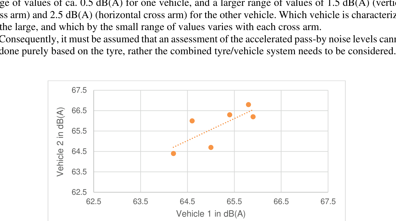 A A A Factors influencing tyre/road noise under torque Carsten Hoever 1 Achillefs Tsotras 2 Continental Tires Jadekamp 30 D-30419 Hannover Germany Marie-Agnès Pallas 3 Université Gustave Eiffel, CEREMA, Université Lyon, UMRAE F-69675 Bron France Julien Cesbron 4 Université Gustave Eiffel, CEREMA, UMRAE F-44344 Bouguenais France ABSTRACT High levels of road traffic noise negatively impact public health in many parts of Europe, especially in cities. The introduction of electric mobility is often seen as one of the best measures to reduce noise exposition in urban environments. Compared to internal combustion engine vehicles (ICEV), there is an increased importance of tyre/road noise for electric vehicles (EV) because of the reduced masking by the powertrain noise. This effect increases further under acceleration. Firstly, it is known that in most cases tyre/road noise is higher under torque than for free rolling. Secondly, in situations which are characterized by increased driving torque, the lack of masking from powertrain noise for EVs is especially evident when compared to ICEVs. The aim of the LIFE E-VIA project is to reduce road traffic noise in cities by providing noise optimized road surfaces and tyres for EVs. Because of the mentioned effects, not only constant speed driving needs to be considered but also accelerated driv- ing. Consequently, within E-VIA noise measurements from an indoor drum and a test track have been used to investigate the impact of different tyre parameters and operating conditions on the change of tyre/road noise under acceleration when compared to free rolling. 1 carsten.hoever@conti.de 2 achillefs.tsotras@conti.de 3 marie-agnes.pallas@univ-eiffel.fr 4 julien.cesbron@univ-eiffel.fr worm 2022 1. INTRODUCTION High levels of road traffic noise negatively impact public health in many parts of Europe, especially in cities [1, 2]. One of the best ways to reduce noise exposition in urban environments is the intro- duction of electric mobility. For electric vehicles (EV) there is an increased importance of tyre/road noise because of the reduced masking by the powertrain noise compared to internal combustion en- gine vehicles (ICEV). Studies have shown that this effect increases further with acceleration, i.e. with tyre torque [3]. Even though also characterized by the occurrence of torque, for normal braking and recuperation, in contrast, only small changes have been observed [4]. There are two main explanations for the increased relevance of tyre/road noise under acceleration. Firstly, there are additional noise generation mechanisms which are of minor importance under nor- mal driving but become relevant with increased torque. These are stick-snap and snap-out phenomena which can appear under torque conditions in addition to the radial block impacts which, together with the road surface, are the main tyre excitation mechanism for free rolling [5]. Both stick-snap and snap-out potentially lead to an additional tangential excitation of the tire structure. These effects are more pronounced for EVs than for ICEVs since the former are typically characterized by higher- power-to-mass ratios and considerably wider RPM ranges at which maximum torque is available. Secondly, in many situations which are characterized by an increase in driving torque, such as spor- tive open-throttle acceleration, the lack of masking from powertrain noise for EVs is especially evi- dent when compared to typical ICEVs with comparably noisy powertrains under acceleration [4]. Within the LIFE E-VIA project [6] road traffic noise in in urban environments shall be mitigated by providing noise optimized road surfaces and tyres for EVs. Because of the mentioned effects, not only constant speed driving needs to be considered but also accelerated driving. In this study it is investigated to which extend the tyre/road noise generation under acceleration is influenced by tyre and surface properties, or environmental or testing conditions. 2. ACCELERATED PASS-BY NOISE MEASUREMENTS Pass-by noise measurements have been carried out based on UNECE Regulation 51, Revision 3 [7]. Independent of the type of pass-by (without/with acceleration), only measurements for which the test vehicle passes the microphone position with a speed of 50 km/h ± 1 km/h are considered. For free rolling (in the following also called CRS - constant rolling speed ) the used metric is the maximum sound pressure level recorded during the pass-by, 𝐿 𝑚𝑎𝑥,CRS . Accelerated pass-bys are con- ducted for several different accelerations a ranging from roughly 1 m/s 2 to 3 m/s 2 . From a polynomial interpolation based on the maximum sound pressure levels of the individual pass-bys, the accelerated pass-by noise level for a reference acceleration of 2 m/s 2 , 𝐿 𝑚𝑎𝑥 (𝑎= 2 m s 2 ) , is estimated, see Figure 1. From this the sound pressure level change under torque follows as ∆𝐿 acc = 𝐿 𝑚𝑎𝑥 (2 m/s 2 ) −𝐿 𝑚𝑎𝑥,CRS . (1) If not specified otherwise, 1. all measurements have been conducted using electrically powered vehicles, and 2. all pass-bys which are analysed in the same evaluation have been measured with the same test vehicle, on the same test track, and under comparable environmental and operational condi- tions. worm 2022 63.8 64.0 64.2 64.4 64.6 64.8 65.0 65.2 65.4 65.6 65.8 L max in dB(A) ΔL acc L max ( a =2 m/s 2 ) L max,CRS 0.0 0.5 1.0 1.5 2.0 acceleration in m/s 2 Figure 1: Example for the evaluation of accelerated pass-by measurements. 3. TYRE/ROAD NOISE UNDER FREE AND ACCELERATED ROLLING Figure 2 shows the results of pass-by noise measurements for six different summer tyres. There is no systematic relation between the constant speed noise levels and the accelerated noise levels. For ex- ample, T1 is the most silent tyre without acceleration but at the same time the sound pressure level for this tyre increases by ca. 3 dB(A) for an acceleration of 2 m/s 2 . Consequently, T1 