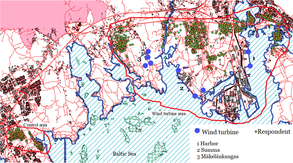 A A A Finnish study on the health effects of environmental noise among resi- dents living close to a wind power area Valtteri Hongisto, 1 Jenni Radun, Henna Maula, Pekka Saarinen, Jukka Keränen, Reijo Alakoivu Built Environment research group, Turku University of Applied Sciences Joukahaisenkatu 3, FI-20520 Turku ABSTRACT The aim was to determine how the sound levels of wind turbines and road traffic are associated with stress, diseases, and symptoms in a wind turbine area. Case-control design included a wind power area and a control area farther away not exposed to wind turbine noise nor visibility of turbines. Sound levels were modeled to the yard or all potential respondents. Road traffic and wind turbine sound level varied between 32 64 dB and 17 39 dB L Aeq , respectively. Altogether 684 residents re- sponded to a living environment questionnaire. No associations with wind turbine sound level were found for symptoms, diseases, nor stress. Unexpectedly, prevalence of several symptoms and preva- lence of heart disease were higher if road traffic sound level was higher. Wind turbine sound level did not exceed the Finnish regulated value of 40 dB L Aeq in any residential yard. Therefore, the find- ings can be applied to existing and future areas where the regulated value is applied. Our study emphasizes that road traffic noise can be a larger problem than wind turbine noise even in wind power areas, not to mention areas where the road traffic noise is higher than in our study. 1. INTRODUCTION Most of the residential surveys investigating the effects of wind turbine (WT) noise until 2015 were conducted in wind power areas where a large proportion of residents close to the WTs were exposed to A-weighted sound pressure levels (SPLs) higher than 40 dB L Aeq [1, 2]. Those studies were utilized as scientific evidence in the development of Finnish WT noise regulations which were published in 2015 [3]. These regulations give the upper limit of WT noise both for daytime (L Aeq,07 22 =45 dB) and nighttime (L Aeq,07 22 =40 dB). In practice, the nighttime regulation is applied also during daytime since energy companies do not want to invest on WTs which cannot produce full power during the nighttime. It is highly relevant now to investigate the effects of WTs in areas, which fulfill the new regulation. This will provide evidence-based information about the health effects of WTs under cur- rent regulations. This is especially important in areas with large WTs, since they induce more con- cerns and fears than smaller WTs. The concern about the infrasound exposure is also an important driver to investigate the health status of residents living close to WT areas fulfilling regulations. Because onshore WTs are usually erected close to main roads, WT noise is not the only form of environmental noise in WT areas. Previous studies have not shown any other health effects of WTs than noise annoyance. Instead, several different health effects have been found to be associated with road traffic (RT) noise [4]. From public health point of view, it is relevant to investigate the health effects of both WT and RT noise in parallel to provide a holistic understanding of the health effects of environmental noise in the living environment. Focusing solely on the health effects of WT noise 1 valtteri.hongisto@turkuamk.fi 21-24 AUGUST SCOTTISH EVENT CAMPUS. ? O? ? GLASGOW is not reasonable, if it is self-evident that the residents are also exposed to other forms of environ- mental noise. There are very few studies which have investigated the health effects of both WT and RT noise in parallel in the same area. Our purpose was to determine, how RT and WT noise are associated with noise annoyance, symp- toms, stress, and diseases. This study is a summary of Ref. [5]. 2. MATERIALS AND METHODS The study applied case-control design, where the exposure variables (independent, objectively meas- urable variable) were the SPLs of RT noise and WT noise in the yard and the response variables (dependent variables) were the subjective responses to the questionnaire. The study was accepted by the ethic committee of Turku University of Applied Sciences. We wanted to WT areas, where the Finnish WT noise regulation [3] is fulfilled. The areas should also have sufficient population density. We could not apply random sampling over all Finnish WT areas since it was necessary to conduct the noise emission measurements of the WTs and they are very time-consuming. The best choice in Finland was Hamina city, which has three nearby WT areas: Harbor involves two 3 MW WTs erected in 2015 Summa involves three 3 MW WTs erected in 2010 Mäkelänkangas involves four 2 MW WTs erected in 2012. The control area was a suburb in Kotka city 6.8 8.0 km west from Mäkelänkangas. The control area resembled Hamina with respect to building base, socioeconomics, and seaside environment. The permanent residential houses were identified with map services. Their building IDs were used to obtain the basic information of residents from population registry. We asked them for individual ad- dress of a single adult from each household. In the case of two or more adults in the same address, randomization was made with respect to age and gender. All households were invited to respond, which located closer than 2,8 km from the WTs. The living environment questionnaire was mailed to 2560 households in the WT area and 498 households in the control area, altogether to 3058 households. Questionnaire survey was conducted in autumn 2018. Response time was 4 weeks after which a re- minder was sent to all households. We received 684 responses, 563 from WT area and 121 from control area. Response rate was 22.4%. Questionnaire was mailed in paper form. Web option was available in Finnish, Swedish, and English. The questionnaire was masked: it was not possible to see, that our purpose was to study WT and RT noise effects on human. In this paper, we focus on a very limited proportion