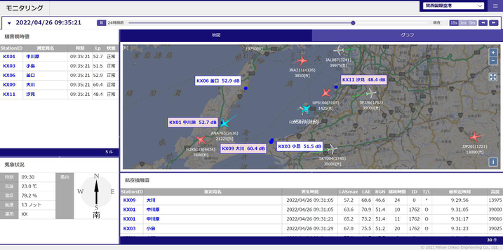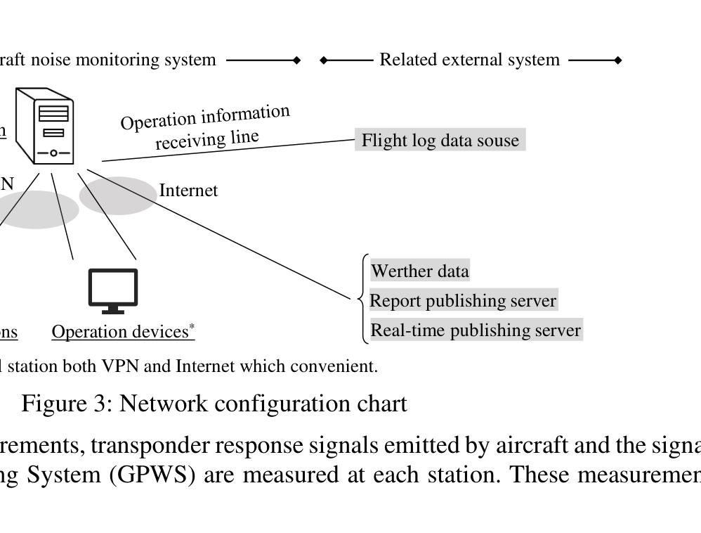 A A A The new aircraft noise monitoring system for 3 airports in the Osaka area. Kazuyuki Shibuya 1 Kenji Matsubara Yoshio Nishino Junshi Izumi Kansai Airports Co., Ltd. 1-banchi, Senshu-Kuko Kita, Izumisano-shi, Osaka 549-8501, Japan Etsushi Fujita Taichi Higashioka Nihon Onkyo Engineering Co., Ltd. Data Science Div. 1-21-10 Midori, Sumida-Ku, Tokyo 130-0021, Japan ABSTRACT There are three airports in the Osaka area and each of them has been analyzing and evaluating aircraft noise and publishing its results. However, since these three airports are adjacent to each other, the airspace is complicated, and the monitoring range is wide, which caused so much manual work for data review before obtaining an accurate noise impact assessment. This paper introduces a new aircraft noise monitoring system that has been constructed to reduce the human workload and accurately and integrally monitor aircraft noise at the three airports with flight-track measurement. The new system reduces the time for noise analysis and evaluation using artificial intelligence, and it has become possible to publish accurate noise conditions more quickly and at a lower cost. In addition, since it is difficult for an airport operator to obtain air traffic control data, we constructed a system that can monitor the position coordinates of aircraft as recent as 15 seconds ago. By oper- ating this system integrally with the noise system, we can now visually confirm the noise level at the measurement point and the position of aircraft on a map, and publish the real-time noise data online for residents living near the airports. 1. INTRODUCTION The Kansai region in Japan is home to several tourist cities, including Kyoto, Nara, Osaka, and Hyogo, and has the world's 10th largest hinterland with a population of 19.28 million 1 . Kansai Air- ports operates three airports in the Kansai region, Kansai International Airport (KIX), Osaka Interna- tional Airport (ITAMI), and Kobe Airport (KOBE), to support tourism and business demand in the region. A location map of the 3 airports is shown in Figure 1. 1 kazuyuki.shibuya@kansai-airports.co.jp worm 2022 worm 2022 ITAMI Central Osaka KOBE KIX Figure 1: Location map of the three airports (Photo from https://maps.gsi.go.jp/) ITAMI is a highly convenient urban airport located 11 km from central Osaka. ITAMI used to be the only airport in the Kansai region, and during the period of rapid economic growth in the 1970s, ITAMI grew dramatically, but at the same time, serious noise pollution became a social problem. Residents living near the airport filed lawsuits demanding compensation, and also petitioned for pol- lution mediation, demanding the abolition of the airport. As a result, the government voluntarily de- cided to change the operation hours to be limited from 7:00 a.m. to 9:00 p.m. This operation has continued to the present day. In addition to restricting operating hours, ITAMI is currently imple- menting source control measures such as limiting aircraft movements, setting landing charge to en- courage the introduction of low-noise aircraft, introducing an operation system to reduce aircraft noise, setting priority flight paths, and reducing the use of reverse thrust during nighttime landings. In addition, in areas around airports where noise impact is significant, efforts are being made to com- pensate for relocation, develop buffer green zone, and subsidize soundproofing work. In order to solve the aircraft noise problem around ITAMI, an airport with no noise was required in the Kansai region, and KIX was built in 1994 on the sea 5 km off Osaka Bay. KIX was built on the sea based on strict environmental assessment such as noise, and the company is operating KIX with an environmentally friendly manner by using routes that have as little impact on the land as possible. On the other hand, ITAMI was considered for closure due to its noise problem, but the local government and local residents' groups agreed to keep ITAMI in operation on the condition that it would be maintained for the time being, with restrictions on operating hours and the number of air- craft movements, since ITAMI plays a significant role in stimulating the local economy and in provid- ing convenience as an urban airport. As a result of these backgrounds, KIX has become an international gateway airport mainly for western Japan with a concentration of international flights, ITAMI has become a core airport for domestic flights in harmony with the environment, and KOBE, which opened as an offshore airport in 2006, has become a regional airport serving the aviation needs of the Kobe area. Therefore, even today, ITAMI is required to properly monitor the impact of aircraft noise, while KIX and KOBE place importance on monitoring the impact of aircraft noise on the land area. There- fore, KIX, in particular, has established an environmental monitoring plan in order to achieve an airport with no noise pollution, checks the aircraft noise situation on a daily basis, and publishes detailed noise values. The three airports adjacent to each other in the Kansai region create a complicated airspace, and the large number of measuring stations (32 in total), especially some of stations for KIX, which are located far from the airport, and the small difference between background noise and aircraft noise, have made it necessary for a large amount of human work for data review for accurate noise impact assessment. To reduce this human work, a new aircraft noise monitoring system was established to evaluate the aircraft noise at the three airports accurately and in an integrated manner by introducing new technologies such as wake (position coordinates) measurement. An overview of the system is presented below. worm 2022 2. OVERVIEW The new aircraft noise monitoring system (hereafter referred to as the "new system") consists of 32 measuring stations and a central station (Figure 2). Seven of the stations, which are located at a distance 