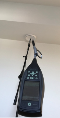 A A A Measuring low ventilation noise level in dwellings Birger Bech Jessen 1 Danish Technological Institute Gregersensvej 3 DK-2630 Hoeje Taastrup ABSTRACT The Danish standard DS 490:2018 “Akustik – Lydklassifikation af boliger” *1 , translated to “Acoustics - Acoustic Classification of Dwellings” relates to many acoustical parameters, and “Noise from ventilation” is now being tested in real life in the Danish “Voluntary sustainability classification” (called FBK *6 ). The Danish building regulation *2 state a sound level limit in dwellings from all kinds of technical systems at 30 dB(A), equal to the Acoustical class C, comparable with the limit in several countries. Research shows *3 that 30 dB(A) does not ensure acoustic satisfying comfort for all people. The FBK has chosen to lower the noise limit to 25 dB(A), equal to acoustical class B. We need to improve the ventilation systems to reach such lower level of sound emission, and we must be able to measure it implemented in dwellings. This paper describes some methods and in situ experience fighting background noise problems caused by activities and equipment around and in the dwelling, as well as in the measurement systems. A proposal for measuring closer to the ventilation armature and convert data to the prescribed position larger distance is described ant tested. The goal is: Measure and document low noise without a high cost in time and money, which could be a barrier for implementing lower noise levels in dwellings. 1. INTRODUCTION A low noise level in dwellings for living is a very desirable goal, and for many years a sound pressure level average of around 30 dB(A) has been a common accepted limit for sound from ‘fixed’ technical appliances like heating, ventilation, plumbing, water pumps, waste disposal etc. Such systems have little or no control possibilities for the persons in the dwelling and are normally mounted as fixed installations. In the Danish standard DS 490/2018 *1 , now adapted to ISO/TS 1948:21, “Acoustic classification of dwellings” the 30 dB(A) level corresponds to class “C”. But more and more evidence show that the limit of around 30 dB(A) is too high for many normally hearing persons, when it comes to relaxing and sleeping situations. The standard DS 490:2018 is aiming at the building acoustics, as well as the noise from the technical systems in a dwelling. This means that not only the insulation from sounds from neighbors (sound insulation and impact noise insulation), but also the sound from each dwelling´s ‘self-made’ noise in the dwelling is in focus. Testing the sound and impact insulation using standardized methods and controllable loud ‘reference’ sound source or impact noise exciter is possible in most circumstances, because the background noise may be ‘overruled’, even at daytime. The costs for checking such parameters are reasonable. But measuring the low noise levels below 25-28 dB(A) according to the Danish guide *4 (SBI- Anvisning 217) from well designed ‘low noise’ technical devices like heating/cooling ventilation 1 bbjn@teknologisk.dk system may be troublesome at daytime and even in evening and night times due to traffic noise and people in surrounding dwellings, and sometimes sounds from restaurants, music/café activities. This must not be a barrier for the future implementation and optimization of low noise appliances to achieve Class B (=25 dB(A) and even Class A (=20 dB(A)). This paper describes in short form the relevant background noises, what to do, the measurement systems for very low levels, best practices for ensuring good and reliable low noise measurements, considerations for alternative methods like calculations of expected sound pressure levels based on sound power data / near field measurements and finally a method for direct measurement of the individual noise source transmission from near field to the ‘standardized 1 meter distance’ position. 2. Background noise Type of noise – What to do – notes: • Traffic noise (cars, airplanes, trains, persons…) - Wait for silent periods • Weather (windy, rainy) - Wait for less influence. Wind is normally varying up and down in a cyclic pattern like 3-5 minutes. Prepare, check weather forecast and may be cancel before doing anything.. • Person noise in building: It is not easy to be completely quite for more than say 1 minute for most people. Hand / arm movements, breathing, couching etc. will again and again disturb the measurements. When there also may be disturbance from traffic etc. you will waste too much time for bad measurements. • In the relevant apartment/dwelling inform persons, and if possible, find a time slot when persons are not at home (give them a dinner or cinema ticket). The neighbors should also be informed and if any planned noisy activities can be foreseen then find a less noisy time slot later or next day… • Technical installations/devices in the building: Only the relevant part should be running, so others must be recognized and if possible closed down. Find the electric fuse box and switch off the relevant BUT be sure you can turn them on in relevant state. So, prepare in time by asking the entrepreneur / landlord what may be turned off and what to check. Examples: refrigerators, freezer, aquaria pump, noisy chargers, lamps, telephones, PC’s, laundry, pumps for central heating, wastewater. 3. Acoustic measurement system noise • Use low noise microphones. 10-15 dB(A) inherent noise is possible but expensive. • The preamps and the sound level meter / digital recording system should be of ‘best class’ • Our system is a 2 channel Brüel & Kjær 2270, if needed special low noise microphones Brüel & Kjær type 4145. Typical combined lower limit is 14 dB(A) • A digital recording system (SoundDevices) is reported to be as low as 12 dB(A) • Do on-site check measurements with an acoustic ‘no noise’ adapter or a turned-off acoustic calib
