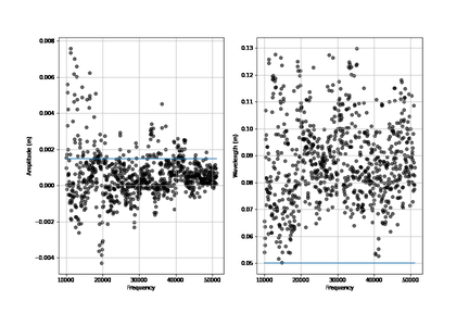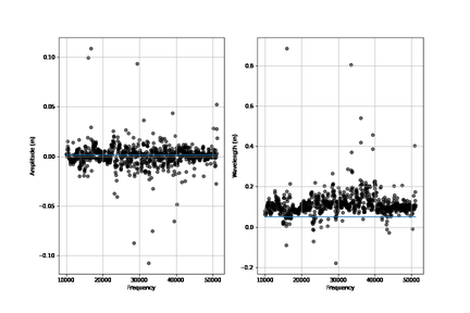 A A A Data-driven reconstruction of rough surfaces from acoustic scattering Michael-David Johnson 1 Department of Mechanical Engineering, The University of She ffi eld, She ffi eld, United Kingdom Anton Krynkin Department of Mechanical Engineering, The University of She ffi eld, She ffi eld, United Kingdom Jacques Cuenca Siemens Digital Industries Software, Interleuvenlaan 68, B-3001 Leuven, Belgium Mansour Alkmim Siemens Digital Industries Software, Interleuvenlaan 68, B-3001 Leuven, Belgium Laurent De Ryck Siemens Digital Industries Software, Interleuvenlaan 68, B-3001 Leuven, Belgium Yue Li Siemens Digital Industries Software, Interleuvenlaan 68, B-3001 Leuven, Belgium Giulio Dolcetti Department of Civil, Environmental and Mechanical Engineering, University of Trento, Trento, Italy Abstract This work investigates the use of data-driven approaches for reconstructing rough surfaces from scattered sound. The proposed methods stands as alternatives to matrix inversion, which requires a linearisation of the dependence on the surface parameters. Here, a large dataset was formed from scattered acoustic field, estimated through the Kirchho ff Approximation. Limiting this work to the reconstruction of a static surface, K-Nearest Neighbors, Random Forests and a stochastic approach are compared to recover a parameterisation of surfaces using the scattered acoustical pressure as input. The models are then validated against a laboratory experiment alongside methods highlighted in Dolcetti et. al., JSV, 2021. The models are tested at a frequency that best fits the lab uncertainties, then tested on a broad frequency range. This scheme provides relatively accurate results in comparison to the approaches tested. Estimation errors as well as robustness in the presence of noise are discussed. 1. INTRODUCTION Machine Learning has been a highly active section of research in recent years, proving more than capable in many fields, including acoustics. Bianco et al. [1] highlighted some key areas in acoustics where Machine Learning has been used. Namely, source localisation, bioacoustics and reverberation. However, as the number of Machine Learning solutions increase, questions are rising about the reproducibility of results [2–4]. Typically, when evaluating the performance of a model or method in inverse scattering, there are some base cases which are tested. For example, Fan et al. [5] successfully applied deep learning methodologies utilising the Helmholtz equation in the recovery of the shape and placement of multiple scatterers in two di ff erent settings, including a seismic imaging setting where the source and receivers 1 mjohnson9@she ffi eld.ac.uk were above the scatterers and receivers were in a linear array. The scatterers were placed randomly and formed from a number of shapes such as triangles, squares or ellipses. These results were then verified against positions and shapes that were known. As well as in Johnson et al. [6] where the surface was created in laboratory, and those measurements were used to predict the shape of the surface relatively accurately for di ff erent noise levels [6] (Figure 1). However, although these results are accurate, it is only known to be accurate because of the setup used for validation. The aim of this work is to investigate a further method of knowing if the model’s prediction is correct. This is done by leveraging the potential benefits that a broadband frequency source can bring, more typical regression models (Linear regression, K-nearest neighbours, and random forests) are trained on every frequency in a broadband frequency range to estimate consistency in prediction, in order to give some confidence in prediction. Following this, the Metropolis Markov Chain Monte Carlo (MCMC) algorithm is shown on a single frequency case, yielding more information than merely a single point prediction. The layout of this paper is as follows: Section 2 holds information about the experiment as well as the properties of the surface tested, section 3 presents the Kirchho ff Approximation, which is used to generate data for the models, as well as a discussion on the data processing. Section 4 showcases results and discussions for the models at a broadband frequency range. Section 5 introduces the Metropolis algorithm, as well as results and discussions. Section 6 contains the conclusions. Figure 1: Surface reconstruction using a random forest approach, trained with 15% noise included, as highlighted in [6]. 2. EXPERIMENT SETUP For these calculations, the source and receiver locations were chosen in accordance with the existing experimental data [7] which was used for validation in this paper. The source location was at ( x 1 , y 1 ) = ( − 0 . 20 , 0 . 22) m. The angle ϕ 0 of the source main axis to the Ox axis was 60 degrees. The receivers were located at a height of approximately y 2 = 0 . 28 m in the y -axis and 34 receivers were distributed evenly with x 2 taking values from -0.13 m to 0.53 m in the x -axis, leading to an average distance between the receivers of 0.02 m. The real-world data used was collected with 34 1 / 4 ′′ microphones (G.R.A.S. 40PH) and a loudspeaker (Visaton G 25 FFL), arranged with the same geometry discussed. A sinusoidal surface (with amplitude ζ 1 = 0 . 0015 m and wavelength ζ 2 = 0 . 05 m) was machined from an aluminium block. A signal was produced from the source and recorded simultaneously at all microphones, with a sampling rate of 102.4 kHz. The amplitude at each microphone was calculated by a Fourier transform applied to 0.02 s segments, and averaged over 2000 segments using Hann windowing. This yields information beginning at 10,000Hz and ending at 51,150Hz. The data was calibrated by comparing measurements of the acoustic field reflected by a flat surface with the corresponding Kirchho ff approximation, following the procedure outlined in Dolcetti et al. [7]. The residual di ff erence between the measured pressure field after c