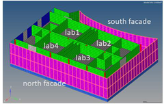 A A A Prediction methodology and assessment of low frequency noise break- in for a science building Christos Karatsovis 1 ISVR Consulting, University of Southampton University Road, Highfield, Southampton, SO17 1BJ Erika Quaranta 2 ISVR Consulting, University of Southampton University Road, Highfield, Southampton, SO17 1BJ ABSTRACT More often than not the effects of anthropogenic (or man-made) noise are evident in all facets of the built environment: from residences and offices through to state-of-the-art research and development facilities. Often, external ambient noise can penetrate the fabric of these buildings and adversely affect, for instance, human symbiosis on a socio-political level or mar the outcome of research in R&D facilities. The principles of acoustic design of buildings are mainly limited to a specific frequency range, i.e. within the standard sonic range, and usually do not account for the effect of lower frequency noise, such as sound in the less audible range. It is in the remit of this work to outline a method of estimating the impact of lower frequency noise on a building housing particularly sensitive scientific tools. An analytical model of the excitation mechanism of the external building fabric will therefore be outlined and used in tandem with a structural/acoustical numerical model of a science building in order to predict the low frequency acoustic levels within the laboratories. A set of measured noise data in the actual laboratories will also lend a level of support to the described method of predictions . 1. INTRODUCTION Human perception of low frequency sound is often associated with the lower end of the full frequency spectrum of hearing from 20 to 20,000 Hz. Sound below 20 Hz is typically described as infrasound and not considered as being a part of human perceptibility on the grounds that is inaudible. That being said, humans can still perceive infrasound and that itself reflects clear differences in hearing thresholds and sensitivities amongst different individuals [1]. The hearing thresholds are indeed rather variable between individuals depending on their genetics, prior noise exposure and age. Infrasound at adequately high levels is also clearly audible [2], while body vibrations can be triggered following high-levels of low frequency noise [3]. Additionally, the upper limit of low frequency is not firmly determined in the literature; it could either be 250 Hz [1] or 100 Hz [4] for instance, depending on the context and application. Regardless, it is documented robustly that anthropogenic noise sources 1 Christos@soton.ac.uk 2 E.Quaranta@soton.ac.uk associated with infrastructure, such as road, railway and aircraft, which can all be sources of low frequency noise, can have an effect on the health and wellbeing of individuals [5]. Low frequency noise effects can cover impairment on performance and cognition, communication and psychosocial issues, sleep disturbance, mental health and physiological impacts (endocrine and cardiovascular effects, etc.) [1]. One of the main metrics of human perception and annoyance uses a time-integrated sound pressure level with the A-weighting frequency network, which accurately emulates the perceived auditory sensitivity of the ear at low to medium noise levels, while placing less emphasis on the low frequencies. However, some studies have considered the use of the G-weighting, which can be used to determine human annoyance due to infrasound for sounds below 20 Hz. The latter network was standardised with ISO 7196 and is used by some countries [6]. Moving away from the topic of human perceptibility, there lies the low frequency sensitivity of tools (or instrumentation) found in science buildings and laboratory settings. It is well known that state-of-the-art science facilities housing equipment require as little influence as possible from sources of vibration, such as low-frequency footfall from people walking within the building, mechanical plant, transportation noise in the near and far vicinity, and so forth. Vibration-sensitive experimental work may involve the use of lasers, super-cooled magnets, various analytical instruments, such as Scanning Tunnelling Microscopes (STMs) and Atomic Force Microscopes (AFMs). Most of these sensitive processes require a high-level of imaging resolution and normally are housed in areas which are as far away as possible from the influence of vibration [7]. It therefore is often the case that highly sensitive instrumentation is mounted directly on top of a special table with a stiff honeycomb core plate to maximise dynamic rigidity, while the stiff plate is in turn supported on pneumatic isolators for dynamic decoupling from the rest of the building and external vibration influences. The same design principle applies in the case of large, high-tonnage, monolithic concrete keel blocks supported on air springs with very low natural frequencies. These design principles have raised the issue of whether acoustics forces could adversely affect the performance of such vibration mitigation measures; for instance, the excitation of acoustic modes in a laboratory room by infrasound and the potential efficient coupling of the room modes with a pneumatically supported large inertia concrete block [8]. Furthermore, and regardless of the impact on the vibration isolation of a sensitive tool, low frequency noise can also have a direct effect on the tool itself. In particular, the operation of Scanning Electron Microscopes (SEMs) or Transmission Electron Microscopes (TEMs) can be affected by low frequency noise in the room, since the tool’s operating resolution or magnification factor is a function of its sensitivity to various factors. For this reason, generic noise criteria curves, also known as NCTs, have been devised for such tools, which may go well below (as low as the 4 Hz octave band centre frequency) the typical NR or NC curves used in standard noise control design [9]. For instance, the