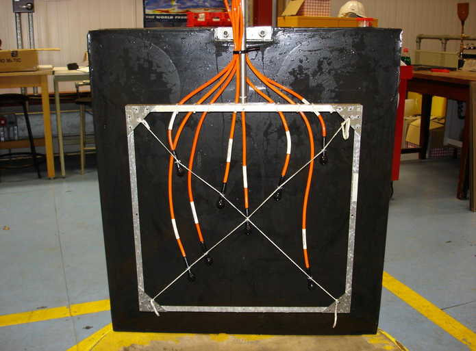 A A A Comparing Acoustic Measurements of Underwater Materials in Pressure Tanks Using a Calibration Panel Scott E Kasprzak 1 Naval Surface Warfare Center, Carderock Division 9500 MacArthur Blvd Bethesda, MD 20817 USA Matthew A Craun 2 Naval Surface Warfare Center, Carderock Division 9500 MacArthur Blvd Bethesda, MD 20817 USA Stephen P Robinson 3 National Physical Laboratory Hampton Rd Teddington TW11 0LW, UK ABSTRACT Researchers in the United Kingdom and the United States worked together to compare acoustic panel measurement methods and equipment using a calibration test panel in two temperature- and pressure-controlled tank facilities. Underwater testing can be used to calibrate various transducers or to measure acoustic properties of materials. The calibration panel used in this study consisted of a urethane material. Tests were initially conducted in the Acoustic Pressure Vessel (APV) at the National Physical Laboratory (NPL) in Teddington, UK and were subsequently performed in the Acoustic Pressure Tank Facility (APTF) at the Naval Undersea Warfare Center (NUWC) in Newport, Rhode Island, USA. The UK tank is a smaller-scale version of the US tank. However, the measurement approaches developed by the two groups of researchers differs. The UK utilizes a parametric source with a baffle and a planar hydrophone array for reflection and transmission measurements. The US uses a spherical source, a linear pseudo-array along with coherent subtraction for reflection, and a single hydrophone for transmission measurements. Results show that the measurement methods generally agreed on the panel’s acoustic response, but differences varied based on environmental conditions and as a function of frequency. Potential sources of error were enumerated and are discussed. 1. INTRODUCTION The acoustic behavior of materials in water are of interest in numerous maritime applications such as sonar, noise control, and underwater communications. Underwater acoustic measurements of materials can be used to extract standard material properties [1] at various temperatures and pressures, as well as the dilatational wave speed [2] and the influence of the backing substrate [3]. But rather 1 scott.e.kasprzak.civ@us.navy.mil 2 matthew.a.craun.civ@us.navy.mil 3 stephen.robinson@npl.co.uk than study the material properties of any material of interest, the purpose of this investigation was to compare and contrast the measurement equipment and methods developed separately by US and UK investigators. A calibration/reference panel was fabricated by the UK and tested at both facilities. The simplest method of capturing the energy incident upon, reflected from, and transmitted by the test panel is via a single hydrophone placed on either side of the test object [4]. The measurement quantity being investigated during this set of experiments was the reflection loss for the material. The reflection loss, RL, is defined as: 𝒑 𝒓𝒆𝒇𝒍𝒆𝒄𝒕𝒆𝒅 𝒑 𝒊𝒏𝒄𝒊𝒅𝒆𝒏𝒕 ) , (1) 𝑹𝑳= −𝟐𝟎∗𝐥𝐨𝐠 𝟏𝟎 ( where p is the reflected or incident pressure, as measured at the same source-side reflection hydrophone. The measurement of the reflection loss is particularly challenging in pressure tanks and thus was the focus of the experimental comparisons. The high sound speeds in the medium and the comparatively small dimensions of the tank limit the separation time between desired direct arrival and undesired wall reflections at the measurement point. Additional complications exist due to edge scattering from the panel itself and the rigging that supports the panel. The need to separate the incident and reflected pressures at the hydrophone(s), combined with signal contamination sources and arrival times, creates an experimental challenge especially at low kilohertz frequencies. It is, therefore, necessary to subtract from the reflection time history an incident signal recorded at the same point and under the same conditions without the test panel present [5]. Coherent subtraction, judicious timegating, proper window selection, and advanced signal processing are used to minimize the impacts of the undesired factors on the measurement. Of particular interest to the researchers at both locations was the level of the panel’s response as well as the frequency and amplitude of any peaks or valleys. The results of this paper focus on the reflection characteristics of the panel, but the techniques can be extended to transmission behavior. The transmission loss, TL, is defined as: 𝒑 𝒕𝒓𝒂𝒏𝒔𝒎𝒊𝒕𝒕𝒆𝒅 𝒑 𝒊𝒏𝒄𝒊𝒅𝒆𝒏𝒕 ) , (2) 𝑻𝑳= −𝟐𝟎∗𝐥𝐨𝐠 𝟏𝟎 ( where 𝑝 is the transmitted or incident pressure, as measured at the behind-panel transmission hydrophone. Typically the transmission hydrophone is placed as close behind the panel as practicable to minimize the impact of diffracted waves on the measurement. When measuring the transmission loss, it is not possible to capture the incident signal at the measurement point behind the test panel for reference, and for this reason a separate measurement must be made to capture the incident signal without the test panel present. 2. TEST ARTICLE AND MEASUREMENT CONDITIONS Measurements were conducted on a test panel designed to have suitable performance in the frequency range 1 kHz to 15 kHz. The panel was 800 mm wide, 900 mm high, and 125 mm thick. The test panel was designed and manufactured by QinetiQ, Ltd. and consisted of a two-layer acoustic absorber fabricated from polyurethane, to which Expancel spheres had been added as a filler material. The panel is shown in Figure 1. Figure 1: Test panel used for measurement comparisons. Conditions of measurement: Frequency range: 1 kHz – 15 kHz Pressures: 0.1 MPa, 0.7 MPa, 1.4 MPa, and 2.8 MPa, Temperatures: 8 °C & 20 °C 3. TESTING FACILITIES AND EQUIPMENT 3.1. United States The Underwater Sound Reference Division (USRD) was est