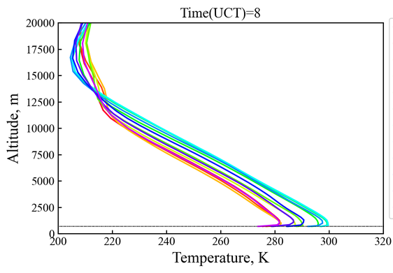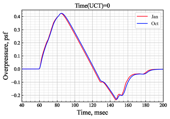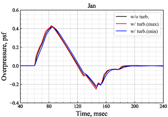 A A A Numerical study of sonic boom propagation through atmospheric turbulence using open data of weather research and forecasting Shinya Koganezawa 1 Japan Aerospace Exploration Agency Mitaka, Tokyo, 181-0015, Japan Yusuke Naka 2 Japan Aerospace Exploration Agency Mitaka, Tokyo, 181-0015, Japan Hiroaki Ishikawa 3 Japan Aerospace Exploration Agency Mitaka, Tokyo, 181-0015, Japan Ryo Shimada 4 ASIRI inc. Chiyoda, Tokyo, 101-0047, Japan ABSTRACT Sonic boom noise is a major issue to be addressed for the realization of supersonic transport. In particular, the deformation of waveforms and changes in noise levels due to atmospheric turbulence have been studied from the viewpoint of assessing annoyance and certification standards. Although many studies on the effects of atmospheric turbulence on sonic booms have been conducted, few studies have investigated realistic trends of atmospheric turbulence. In this study, numerical analysis of sonic boom propagation considering atmospheric turbulence is performed for C609, an early type of NASA’s X-59 Low-Boom Flight Demonstrator. The model equation for propagation is heterogeneous one-way approximation for the resolution of diffraction (HOWARD) and the Ostashev and Wilson model is chosen to define the atmospheric turbulence spectra. The parameters characterizing the atmospheric turbulence are set based on publicly available datasets of weather research and forecasting (WRF) simulation. The Edwards Air Force Base, where the first flight of X-59 is planned, was selected as the data acquisition point. The sonic boom waveforms obtained by the numerical simulations and their noise level variations are statistically processed to evaluate seasonal and temporal trends. A series of numerical analyses demonstrate the usefulness of WRF-based atmospheric data. 1 koganezawa.shinya@jaxa.jp 2 naka.yusuke@jaxa.jp 3 ishikawa.hiroaki2@jaxa.jp 4 r-shimada@asiri.co.jp a Shea mar ce 21-24 AUGUST SCOTTISH BENT caso 1. INTRODUCTION Recently, significant research efforts have focused on the development of supersonic transport in many institutes and industrial companies, including startups. Sonic boom noise is a major issue to be addressed for the realization of supersonic transport and has therefore attracted considerable attention among stakeholders as well as researchers. In particular, the deformation of waveforms and changes in noise levels owing to atmospheric turbulence have been studied from the viewpoint of assessing annoyance and certification standards. NASA conducted a sonic boom in atmospheric turbulence (SonicBAT) program [1] to investigate the effects of atmospheric turbulence on the propagation of sonic booms. Distorted waveforms due to atmospheric turbulence were measured, and variations in the perceived level [2] (PL) were quantitatively evaluated. Numerical simulation using the Khokhlov–Zabolotskaya– Kuznetzov (KZK) propagation equation and the Ostashev and Wilson model [3,4] (the O-W model) was also performed, and the results showed good agreement with the measurement data [5]. This shows that the numerical simulation is sufficiently useful for predicting the PL variances and annoyance of sonic booms through atmospheric turbulence. Atmospheric turbulence conditions vary depending on environmental factors (e.g., region, season, and time); therefore, it is necessary to set turbulence parameters that are consistent with realistic trends. However, measuring atmospheric turbulence requires large-scale equipment, such as lidars and sodars, which are costly and difficult to investigate globally and comprehensively. In recent years, as a mesoscale numerical weather prediction model, the WRF model has been applied to various fields. High-resolution rapid refresh response (HRRR) [6] is a WRF-based model developed by the National Oceanic and Atmospheric Administration (NOAA) that provides U.S. weather data. The HRRR is a 3-km resolution, cloud-resolving, convection-allowing atmospheric model that is updated hourly. The output data were archived by MesoWest of the University of Utah and are publicly available [7]. In this study, a numerical analysis of sonic boom propagation considering atmospheric turbulence was performed for C609. The atmospheric turbulence spectrum is defined by four turbulence parameters: atmospheric boundary layer (ABL) thickness z i , friction velocity u * , friction temperature T * , and mixed-layer velocity scale w * . These parameters were set based on publicly available datasets of the HRRR. Mean values calculated from the past three years near the Edwards Air Force Base, where the first flight of X-59 is planned, were used as atmospheric conditions. The sonic boom waveforms obtained by the numerical simulations and their noise level variations were statistically processed and evaluated. 2. NUMERICAL CONDITIONS A numerical analysis of sonic boom propagation considering atmospheric turbulence was performed for C609. The near-field ( R / L =3) pressure signature data distributed for the SBPW3 [8,9] were used as input for the simulations. The numerical analysis was divided into two processes. First, propagation analysis from the near field of the aircraft to the upper layer of the ABL was performed using Xnoise [10]. Subsequently, the propagation analysis in the ABL was performed using SPnoise for a sonic boom [11]. These codes were developed at JAXA to estimate sonic booms in stratified atmospheres and atmospheric turbulence, respectively. The waveforms obtained on the ground and their noise-level variations were statistically processed and evaluated. The PL was used as the evaluation metric. The PL metric has been shown to estimate annoyance caused by sonic booms well [12] and is used in SonicBAT [1]. The governing equation for propagation in a stratified atmosphere is the augmented Burgers equation. Xnoise [10] solves the equation by separating it into the following effects: nonlinearity, geometrical spreading, stratification of atmos