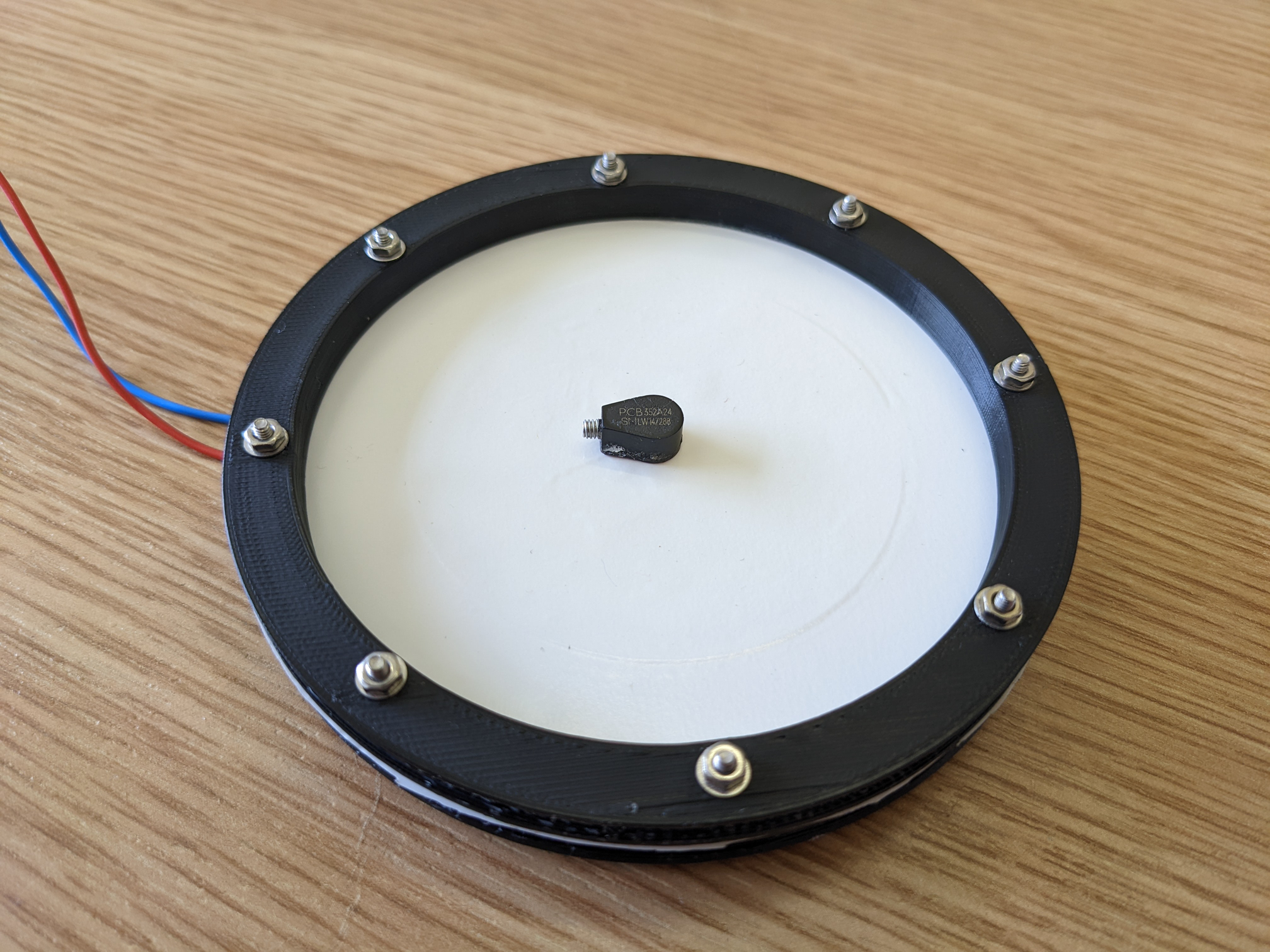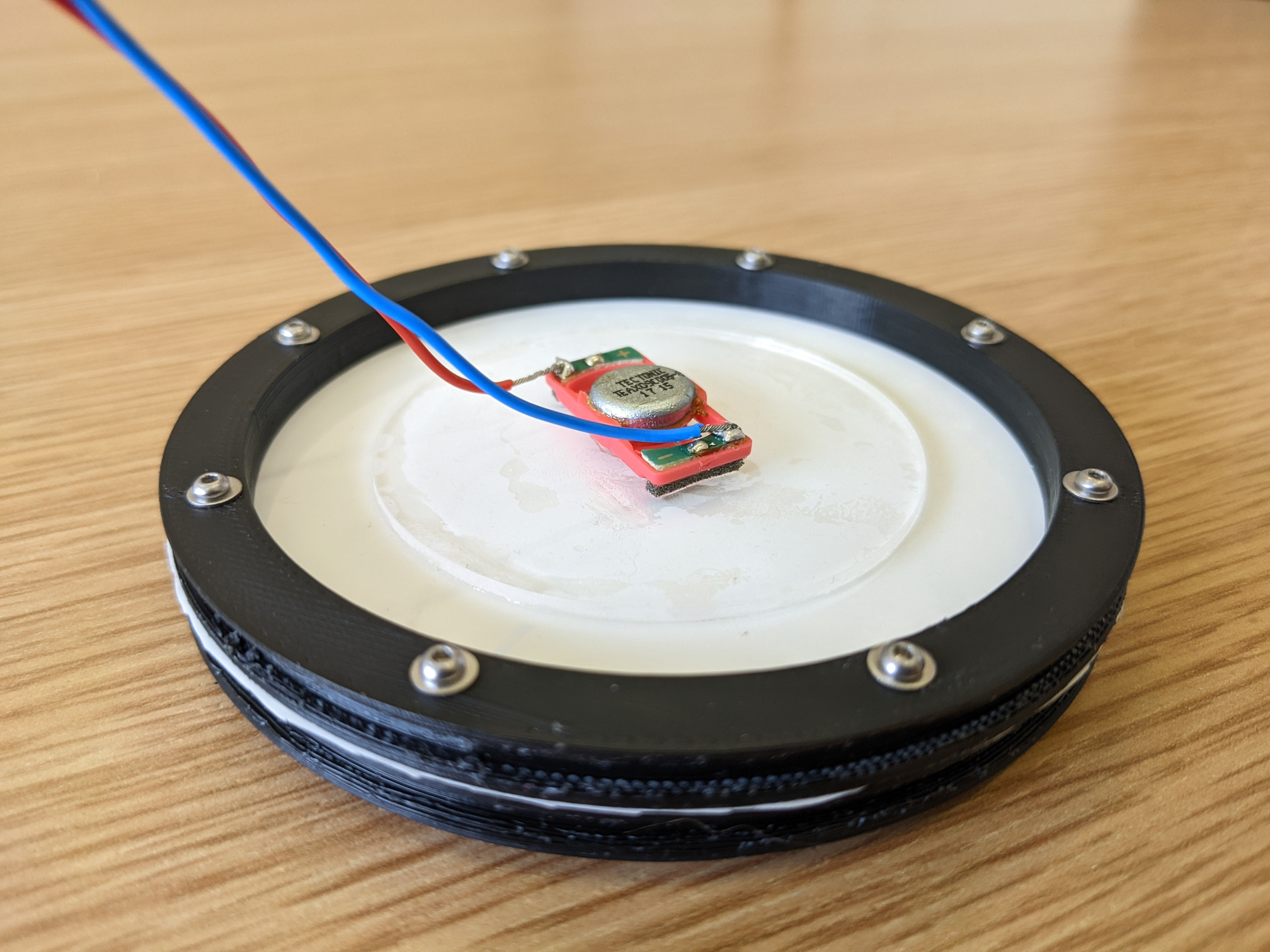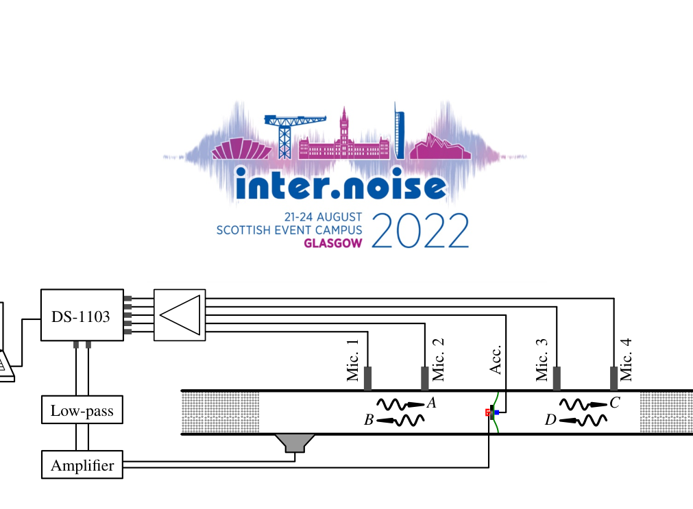 A A A A Preliminary Investigation of an Active Membrane-type Acoustic Metamaterial Felix Langfeldt 1 Institute of Sound & Vibration Research, University of Southampton University Road, Highfield, Southampton, SO17 1BJ, United Kingdom Jordan Cheer 2 Institute of Sound & Vibration Research, University of Southampton University Road, Highfield, Southampton, SO17 1BJ, United Kingdom ABSTRACT One of the most promising features of membrane-type acoustic metamaterials (MAM) is their anti- resonance at low frequencies, which typically exhibits sound transmission loss values that can signif- icantly exceed the corresponding mass-law values. The bandwidth of this anti-resonance, however, is usually very small, which limits the applicability of MAM in practical noise control problems. In previous research it has been shown that different types of actuators (e.g. magnets, electrodes, or pressurized air) can be used to adjust the anti-resonance frequency of MAM, for example to adapt to changing tonal frequencies. However, these actuation principles require additional components to be added to the otherwise lightweight MAM. To overcome these limitations, this paper will present preliminary results from an experimental study of a smart MAM which has the sensors and actuators compactly embedded within the added mass located at the center of the membrane of the unit cell. A small accelerometer is used to measure the vibration of the added mass and this signal is fed back to a controller, which is used to actuate the MAM using a small electrodynamic exciter. An impedance tube is used to measure the sound transmission through the smart MAM and different control algorithms are compared. 1. INTRODUCTION Membrane-type acoustic metamaterials (MAM) are composed of a planar periodic array of sub- wavelength sized unit cells, where each unit cell consists of a thin flexible membrane with at least one added mass attached to the membrane. Essentially, this arrangement forms a resonant spring- mass system that, when tuned properly, can exhibit so-called anti-resonances at low frequencies with sound transmission loss values much higher than expected from the mass-law [1, 2]. Due to their compact design, MAM can be designed to be very lightweight and therefore are a very attractive po- tential solution for low-frequency tonal noise control, especially when weight and volume of acoustic treatments are highly constrained (such as in aircraft, vehicles, or mobile sound barriers). While these properties of MAM are encouraging, the low bandwidth of the anti-resonance frequencies limits their applications to noise sources with very narrowband noise or stationary tones. Certain approaches for improving the bandwidth of MAM have been suggested in previous research, for example by stacking 1 F.Langfeldt@soton.ac.uk 2 J.Cheer@soton.ac.uk inter.noise 21-24 AUGUST SCOTTISH EVENT CAMPUS O ? ? GLASGOW multiple layers of MAM or coupling unit cells with different anti-resonance frequencies in parallel [3, 4]. These approaches, however, ultimately lead to more complex, heavier, and bulkier structures. Also, the peak noise reduction performance will be reduced when increasing the bandwidth using passive means, which reduces the advantage of MAM over conventional partitions governed by the mass-law. On the other hand, an active actuation of the MAM could be employed to adjust the anti-resonances according to the incident noise spectrum. For example, Xiao et al. [5] investigated changing the anti-resonance frequency of a MAM unit cell by applying an electric field, essentially changing the stiffness of the resonant spring-mass system using voltages of up to 1 kV. In Ref. [6], a non-electrical approach for achieving similar anti-resonance frequency shifts by employing a static pressurization of the MAM has been demonstrated. These actuation principles clearly can be employed to ac- tively adjust the acoustical properties of MAM, but they require additional structures (e.g. electrodes, as in Ref. [5], or pressure tubes, as in Ref. [6]) which add to the weight and complexity of these MAM. Furthermore, feedback control algorithms and many adaptive filtering methods, such as the well-known filtered-reference least mean squares algorithm (FxLMS), require error sensors (typically microphones) to be positioned as close to the receiver as possible [7]. A more integral approach that could help minimizing the weight and complexity of active MAM would be to embed both actuators and sensors within the added mass which is required anyway for the desired functionality of MAM. Instead of using microphones, which—depending on the environ- mental conditions—could deteriorate after some time, accelerometers on the surface of the MAM could be used as a more robust alternative to estimate the error signals at the receiver location using the remote sensing technique [8]. In this contribution, the results of a preliminary investigation of an active MAM with a compact sensor-actuator added mass will be presented. The basic components of one unit cell of the active MAM and the active control algorithms will be discussed in Section 2. In Section 3, simulations will be performed to estimate the performance of the active MAM using different control strategies. Based on these results, an experimental test sample has been built and measured inside an impedance tube. The experimental results are presented in Section 4. Finally, Section 5 concludes the paper with a brief summary of the results. 2. SET-UP OF THE ACTIVE MAM 2.1. Membrane-type acoustic metamaterial Since the measurements were to be conducted inside a circular impedance tube, the shape of the unit cell of the MAM considered here is circular. It should be noted that rectangular MAM unit cells are more suitable for covering large surfaces with multiple unit cells, but there are no fundamental differences between the vibro-acoustic behaviour of circular and rectangular MAM [9]. The results presented herei