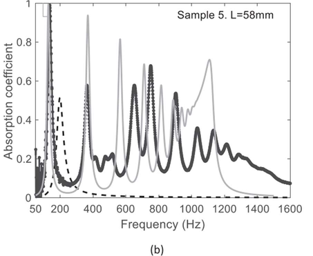 A A A Description of sound absorption by a flat resonator stacking metamaterial with double porosity model Daniel C. Brooke 1 University of Salford School of Science, Engineering and Environment, 43 Crescent, Salford, M5 4WT, UK Olga Umnova 2 University of Salford School of Science, Engineering and Environment, 43 Crescent, Salford, M5 4WT, UK Philippe Leclaire 3 ISAT - DRIVE Université de Bourgogne, 49 rue Mademoiselle Bourgeois, 58027 Nevers cedex, France Thomas Dupont 4 Ecole de Technologie Supérieure Université du Québec, 1100, rue Notre-Dame Ouest, Montréal (Qc) H3C 1K3, Canada ABSTRACT Acoustic metamaterials can be designed by inserting along the path of a sound wave periodically spaced side resonators. An example of efficient design was recently proposed consisting of a perforated stacking of flat annular cavities (the pancake resonator), the perforation allowing the propagation of sound waves. The pancake resonator is used in absorber mode and the theoretical description of sound absorption can be achieved with the help of the theory of sound propagation in fluid saturated porous media in which two porosities are considered: the main porosity associated with the perforation and a porosity associated with the flat cavity volumes. Considering a perforation diameter and flat cavity thickness ranging from submillimetric values to a few millimeters allows a wide range of material permeabilities and permeability contrasts between main pore and stacking of cavities. The relatively small values of diameter and cavity thickness also results in the existence of viscous and thermal boundary layers in the main pore (the perforation) and in the flat cavities. This metamaterial makes simultaneous use of viscothermal losses and periodicity in order to achieve low frequency sound absorption for an overall small absorber thickness. Experimental results are also presented for the validation of the model. 1 D.C.Brooke@edu.salford.ac.uk 2 O.Umnova@salford.ac.uk 3 Philippe.Leclaire@u-bourgogne.fr 4 Thomas.Dupont@etsmtl.ca Jai. inter noise 21-24 AUGUST SCOTTISH EVENT CAMPUS ? O ? . GLASGOW 1. INTRODUCTION The problem of sound wave propagation in ducts with periodically distributed side resonators has been studied for years (see for example [1,2]). The periodicity is responsible for the existence of frequency bandgaps in the dispersion curves and for peaks in the absorption curves. A design of sound absorbing metamaterial consisting of a perforated stacking of periodically spaced flat annular cavities separated by thin solid plates was recently proposed by Dupont et al [3] (see Figure 1). The perforation acts as a duct and allows sound propagation and the flat cavities act as side resonators. However, the perforation radius and the cavity thickness are millimetric or sub- millimetric so that the entire device which is used as an absorber can be thin if the periodicity i.e. the distance between two flat cavities is also set to a small value. The periodicity is controlled by the thickness of the solid plates separating the cavities. In such design, the viscous and thermal boundary layers associated with the sound wave cannot be neglected as their thicknesses can be of the order or even greater than the characteristic size of the system (perforation radius or flat cavity thickness) in the frequency range of interest (typically of few tens of Hz to a few kHz). The Bragg frequency associated with the small periodicity is typically of a few kHz to a few tens of kHz, outside the range of interest for the absorber. Therefore, the periodicity has seemingly no particular interesting effect in this study. However, it has been shown by Leclaire et al. [4] that combining the losses in the boundary layers and periodicity in porous materials with periodically distributed dead-end pores can seemingly also create low frequency bandgaps resulting in low frequency sound absorption in the range of interest. This effect was also reported by Groby et al. [5]. In reference [3], the acoustic properties of the resonator were modelled analytically using the Transfer Matrix Method (TMM) and numerically with the Finite Element Method (FEM). The determination of the flat cavity impedance in the TMM was inspired by the work of Dickey and Selamet [6] who studied a Helmholtz resonator with a “pancake” shape. More recently, Brooke et al. [7] studied this absorber in the linear regime by developing a model for the effective properties and validated the model with experimental results obtained in a standard impedance tube using white noise excitation. Brooke et al. also investigated the weekly nonlinear regimes by modifying the flow expression of resistivity in the model to include the Forchheimer parameter. The nonlinear model was validated using pure tone signals of different amplitudes in a high sound pressure impedance tube. The nonlinear model does not involve more adjustable parameters than the linear one and uses independently measured Forchheimer’s nonlinearity parameter. The aim of the present paper is to focus on a specific aspect of the model proposed by Brooke et al. related to the similarity between the studied metamaterial and the double porosity structure as described by Olny and Boutin [8]. Section 2 of this paper synthesizes the results obtained in previous papers for the effective properties i.e. the effective density and effective compressibility of the absorber. Section 3 presents experimental and theoretical results on the absorption curves and comments on the disagreements between model predictions and experimental results. Section 4 provides interpretations to better understand the wave propagation in flat cavity resonators and makes an attempt at establishing a link between the proposed model for metamaterial absorber and the double porosity model for porous media. Figure 1: Metamaterial absorber made of a periodic stacking of flat cavities [3]. 2. EFFECTIVE PROPERTIES OF THE ABSORBER 2.1. Use of porou