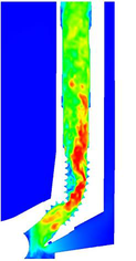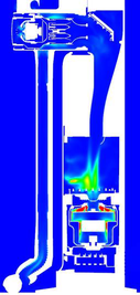 A A A Aerodynamic noise due to complex internal flow through cordless vac- uum cleaner and suction tower station Kwongi Lee 1 , Cheolung Cheong 1,* School of Mechanical Engineering, Pusan National University Busan 46241, Republic of Korea Kyeonghun Park 2 , Jinman Jang 2 LG Electronics Changwon-si 51554, Republic of Korea ABSTRACT Although the demands and sales of cordless vacuum cleaners are on the rise in the global home appliance markets, some consumers are still complaining of the inconvenience such as short battery life and frequent emptying of a dust box. To resolve such inconvenience, a suction sta- tion tower that can automatically charge the battery and empty the dust box has been developed and is now on the market. However, aerodynamic noise generated when the station tower sucks dust in the vacuum cleaner causes another inconvenience. The purpose of this study is to iden- tify the major aerodynamic noise sources in the complex internal flow passage which forms when the station tower is connected to a wireless vacuum cleaner and to develop a low-noise design based on the identified noise sources. First, the entire flow path through the cordless vacuum cleaner and the station tower was simulated using the unsteady compressible Reynolds- Averaged Navier-Stokes equations. Then, the main aerodynamic noise sources were identified using the vortex sound sources. From these results, the flow region through the head nozzle throat of the cordless vacuum cleaner was identified as one of the most significant aerodynamic noise sources. Based on the identified noise source mechanism, two new throat designs named Model A and B were proposed, and their validity was investigated using a high-resolution Large Eddy Simulation technique. It was found that the strength of the vortex sound source of pipe flow through Model B was much less than the others. This result well matched the predicted and measured sound pressure levels according to the different shapes of the head nozzle throats. 1. INTRODUCTION The vacuum cleaner is a device that uses a high-pressure fan to create a partial vacuum to suck dust and dirt from the floor, sofas, and other upholstery. Cordless vacuum cleaners are battery-pow- ered and provide better portability and convenience compared to corded vacuum cleaners. In recent years, the share of cordless vacuum cleaners in the global home appliance markets is rising due to these merits. However, the most frequently claimed issue by the customers in using the cordless vac- uum cleaner is the need to change the battery and empty the dust box. To resolve this problem, a suction station tower, which can automatically charge the battery and empty the dust of the cordless vacuum cleaner, has been developed. Nevertheless, these conveniences are provided at the cost of 1 dlrnjsrl93@pusan.ac.kr(K.L.); ccheong@pusan.ac.kr(C.C.) 2 Kyeonghun.park@lge.com(K.P.); jinman.jang@lge.com(J.J.) worm 2022 additional aerodynamic noise generated by airflow through the complex internal flow passage of a suction station tower and a cordless vacuum cleaner. The purpose of the current study is to identify the major aerodynamic noise sources in the complex internal flow and to develop a low-noise design based on the identified noise source. The previous studies about vacuum cleaners have been carried out in terms of flow and noise performances. Brungart et al. [1] experimentally showed that the reshaped fan-housing and the use of an uneven fan blade arrangement were effective in the reduction of noise. Kale et al. [2] experi- mentally designed the vacuum cleaner by adopting the absorptive muffler to reduce noise and im- prove efficiency. Jafar et al. [3] experimentally reduced the broadband noise by changing the material of the filter in the vacuum cleaner. Son et al. [4] numerically and experimentally designed the fan- motor unit of the vacuum cleaner by optimizing the selected design parameters through the applica- tion of the Plackett-Burman design technique. Kim et al. [5] proposed high-performance and low- noise designs of impeller blades for the cordless vacuum cleaner by utilizing the virtual fan perfor- mance tester in a combination with the surface response method. However, most of the previous studies focused on the fan noise which is known as one of the most contributing noise sources in vacuum cleaners. The flow passage of the suction station tower and the vacuum cleaner consists of various pipe components such as nozzle, filter, and fan which can be potentially important aerody- namics noise sources. Therefore, the most contributing noise sources need to be identified in the current study. Lighthill [6-7] firstly defined the aerodynamic noise sources by deriving the wave equation from the Navier-Stokes equations. Howe [8] rewrote the Lighthill’s sound source in terms of vortex sound source. Lee et al. [9] used the vortex sound source to identify aerodynamic sound sources causing a whistling sound of the narrow gap of automobile side mirror and successfully found the generation mechanism of the whistle sound. Kim et al. [10] also quantified the reduction of internal aerodynamic noise due to the use of perforated plates in a high-pressure valve flow by utilizing the vortex sound source. In this study, the vortex sound source is used to quantify the aerodynamic sound sources in the complex internal pipe flow. First, the entire flow path of the station tower connected to a cordless vacuum cleaner is simulated by solving the unsteady compressible Reynolds-Averaged Navier-Stokes equation numerically. The main aerodynamic noise sources are identified using the vortex sound sources. Based on these results, the flow region of the head nozzle throat located at the inlet of the cordless vacuum cleaner is ranked as one of the most significant aerodynamic noise sources. Through the identified noise source mech- anism, new nozzle throat designs are proposed, and its validity is confirmed by comparing the re
