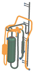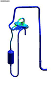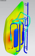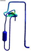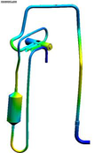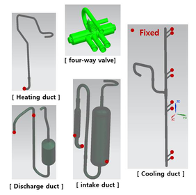 A A A Development of flow-vibroacoustic coupled numerical methods for prediction of noise radiation due to flow-born vibration of compressor discharge piping system Sangheon Lee 1 School of Mechanical Engineering, Pusan National University 2, Busandaehak-ro 63beon-gil, Geumjeong-gu, Busan, Republic of Korea Cheolung Cheong 2 School of Mechanical Engineering, Pusan National University 2, Busandaehak-ro 63beon-gil, Geumjeong-gu, Busan, Republic of Korea Jinhyung Park 3 Air-Soulution R&D Lab. LG electronics 84, Wanam-ro, Seongsan-gu, Changwon-si, Gyeongsangnam-do, Republic of Korea Jangwoo Lee 4 Air-Soulution R&D Lab. LG electronics 84, Wanam-ro, Seongsan-gu, Changwon-si, Gyeongsangnam-do, Republic of Korea ABSTRACT The compressor in the air conditioner outdoor unit is the core component that determines noise and cooling or heating performances. For high-efficiency air conditioners, the size and operating speed of the compressor become smaller and faster, respectively. As the operating speed of the compressor increases, flow-born noise makes a more significant contribution to the overall noise of the air conditioner unit than structure-born noise. Especially the compressor piping systems, which can be classified into the discharge and suction ones, are considered one of the dominant noise sources. However, the physical mechanism of noise radiation due to flow-born vibration of these piping systems is so complex that it consists of three steps: flow-born excitation, the vibrational response of the piping system, and noise radiation due to pipe vibration. In this study, flow-vibroacoustic coupled numerical methods are developed to predict noise radiation from the compressor piping system due to refrigerant flow. First, the compressible LES technique is used to predict refrigerant flow accurately. Second, the vibration of the piping system due to surface pressure fluctuation of refrigerant flow is computed using the finite element method. Finally, the acoustic near- and far- fields due to the pipe vibration are calculated using the finite and boundary element methods, respectively. The validity of the proposed method is confirmed by comparing the predicted noise 1 tkdwjdwjd222@pusan.ac.kr 2 ccheong@pusan.ac.kr 3 Jh0311.park@lge.com 4 jonathan.lee@lge.com spectrum with the measured one. The result reveals that the current numerical methodology can be used as an effective design tool to develop the low-noise compressor piping system. 1. INTRODUCTION The compressor of air conditioners is a core component that determines their cooling or heating performances. To develop a high-performance and high-efficiency system, the operating speed of the compressor in an outdoor air conditioner unit tends to increase. However, the increment in the operating speed inevitably increases the relative importance of the flow-born noise compared to the traditional structure-born noise. Especially the compressor piping systems, which can be classified into the discharge and suction ones, are considered one of the dominant noise sources. Therefore, it is essential for developing high-performance and low-noise air-conditioner units to develop reliable numerical methods, which can be used as an effective design tool. This study develops flow- vibroacoustic coupled numerical methods to predict noise radiation from the compressor piping system due to refrigerant flow. The physical mechanism of noise radiation due to flow-born vibration of these piping systems is based on three multi-physical phases: flow-born excitation, the vibrational response of the piping system, and noise radiation due to pipe vibration. Therefore, the reliable numerical method must account for these multi-physical aspects. Berge et al. [1] tried to characterize the flow pattern in the U-curved piping line by using the Dean number defined using pipe curvature, fluid velocity, and pipe diameter. Zhang et al. [2] investigated flow noise in the 90-degree curved pipe using the Large Eddy Simulation and the Ffowcs-Williams Hawking equation and reported that the vorticity on the pipe wall was related to the flow noise. These studies considered only flow fields inside the pipe system without considering its excitation mechanism on the pipe wall. The high-speed walking fluid generates a strong turbulence flow which produces pressure fluctuation on the inner wall surface of the pipe. The fluctuating pressure field can be classified into incompressible and compressible ones. The former associated with the vortex structure in the turbulent flow fields directly excites the pipe wall at the flow convection speed. The latter, i.e., the acoustic pressure field produced by flow noise sources such as turbulent flow, excites the pipe wall at the sound speed. Ku et al. [3] decomposed the pressure fluctuation field of the critical nozzle flow into the incompressible and compressible ones by using the wavenumber-frequency transform and showed that the compressible pressure field made more contribution in a high- frequency range. However, this study did not associate the identified incompressible and compressible pressure fields with the vibro-acoustical feature of the relevant structure system. Maurerlehner et al. [4] conducted an experimental investigation on the flow-induced vibration and noise and reported that the pipe inner-wall pressure fluctuations depend on turbulence flow and acoustic resonance. In addition, the noise radiation due to the flow-born pipe vibration was shown to be closely related to the vibration modes of the pipe wall structure. Therefore, it is critical for the accurate prediction of noise radiation from the piping system due to flow disturbances to couple the flow field excitation with the vibrational characteristics of the related system. The numerical methods developed in this study consist of three sequential methods. First, the compressible LES technique is used to predict refrigerant flow accurately. Second, the vibration of the piping sys