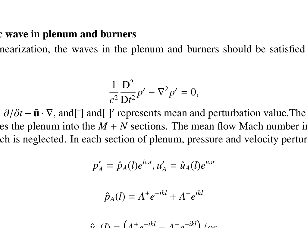 A A A A 2D low-order thermoacoustic network model of annular combustor with ba ffl es in the plenum Liang Ji School of Astronautics, Beihang University BeiJing 102206 China Yuanqi Fang School of Aeronautics and Astronautics, Zhejiang University Zhejiang 310027 China Jingxuan Li 1 School of Astronautics, Beihang University BeiJing 102206 China Aircraft and Propulsion Laboratory, Ningbo Institute of Technology, Beihang University Ningbo 315100 China Gaofeng Wang School of Aeronautics and Astronautics, Zhejiang University Zhejiang 310027 China Lijun Yang School of Astronautics, Beihang University BeiJing 102206 China Aircraft and Propulsion Laboratory, Ningbo Institute of Technology, Beihang University Ningbo 315100 China ABSTRACT Experimental results showed that configuring di ff erent ba ffl es (a regular ba ffl e, a single- or double- layer perforated plate and a Helmholtz resonator) in the plenum has an impact on the self-excited oscillation in annular combustor. In this paper, a 2D low-order network model is proposed to describe this phenomenon and predict the modal frequencies and growth rates of longitudinal and circumferential thermoacoustic modes for annular combustor with di ff erent ba ffl es. In the plenum, only the circumferential acoustic propagation and the influence of ba ffl es on it are accounted for as the longitudinal geometry size is much smaller than the acoustic wavelength of the longitudinal mode. Pure longitudinal acoustic propagation is considered in burners and both longitudinal and circumferential ones are accounted for in the combustion chamber. These three modules are connected by jump conditions. Compared with the experimental results, Ba ffl es using Helmholtz 1 jingxuanli@buaa.edu.cn a slaty. inter.noise 21-24 AUGUST SCOTTISH EVENT CAMPUS O ¥, ? GLASGOW resonators feature the best damping performance for specific modes. The circumferential mode is converted to two unfolded non-degenerate modes when configuring perforated plates ba ffl es. And these two modes are orthogonal to each other. 1. INTRODUCTION In order to achieve low NOx emission, the aero-engine with lean premixed combustion is prone to lead combustion instability, which impact is often catastrophic and making the design work challenging. How to control and predict the instability modes in the engine has been the focus of research. For finding stable operating condition, the full-scale numerical calculation or experiment of the engine is expensive, which is unacceptable for design. The low-order model based on solving linearized conservation equations can well describe the acoustic characteristics, combining linear or nonlinear flame model [1] [2] [3] [4]and di ff erent boundary condition which makes the stability prediction of the engine based on a small calculation possible. The low-order model for annular combustor has been widely studied [2] [3] [4] [5] [6] [7] [4] [8]. Some studies [2] [4]conducted 2D annular combustor models which considered the axial and circumferential propagation and neglect the radius ones, besides some conducted 3D models [9]. However these models can only be applied to modes with circumferential symmetry. Bauerheim et al. [5] [6] [7] simplifies the annular combustor by focusing on the circumferential wave in plenum and chamber and neglecting the axial ones which could capture the e ff ect of the circumferential mean flow and the coupling modes for plenum and chamber. Similarly, in our low-order model only circumferential modes in the plenum are discussed. In addition, in order to suppress combustion instability, several passive control schemes are often used including perforated plates, Helmholtz resonators and ba ffl es. And the perforated plates and HRs could absorb acoustic energy to suppress the combustion instability Perforated plates usually have a broadband acoustic absorption, and ones with bias flow is better than ones without bias flow [10]. Helmholtz resonator is di ff erent from perforated plates which structure leads to good sound absorption e ff ect only for specific frequency [11]. Ba ffl es could truncate the acoustic propagation, which is more common in rocket engines, for instance, F-1 rocket engine is equipped with ba ffl es to damp the combustion instability [12]. But in practical engineering, the di ff erent parameters and locations of these devise cause big changes in control e ff ect. Serval research established the perforated plates [13] [14] [15], HRs [16] and ba ffl es [17] models providing important help for the design work. The perforated model [18] [19] [15] based on the orifices’ impedance considering the influence between holes could easily couple with low-order network model. Besides Dupere et al. [16] established a HRs model which gives the nonlinear impendence for HRs without bias flow and well describes the acoustic absorption e ff ect. Acoustically, Ba ffl es can be considered as a solid boundary condition. Wicker and Wicker et al. [17] partitioned the combustion chamber and established ba ffl e model. The pressure and heat release rate disturbances caused by combustion instability are in the combustion chamber where devices often installed, and numerous works have described their e ff ect of damping to the combustion system. However, in the experiment, we found that there is a circumferential mode in the annular plenum which also a ff ect the combustion. In this study, we try to conduct a model which absorption devices are installed in the plenum analysis the e ff ect for this mode. The structure of the article is as follows. A model for annular combustor based on low-order network is established in Sec II. In this model, only plenum and burners are considered, and di ff erent ba ffl es installed in radial direction coupling with models. The modes changing after ba ffl es installed are discussed in Sec III. Di ff erent locations of ba ffl es are the focus of our attention. In Sec IV, the conclusions are made on the key findings o