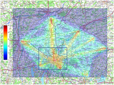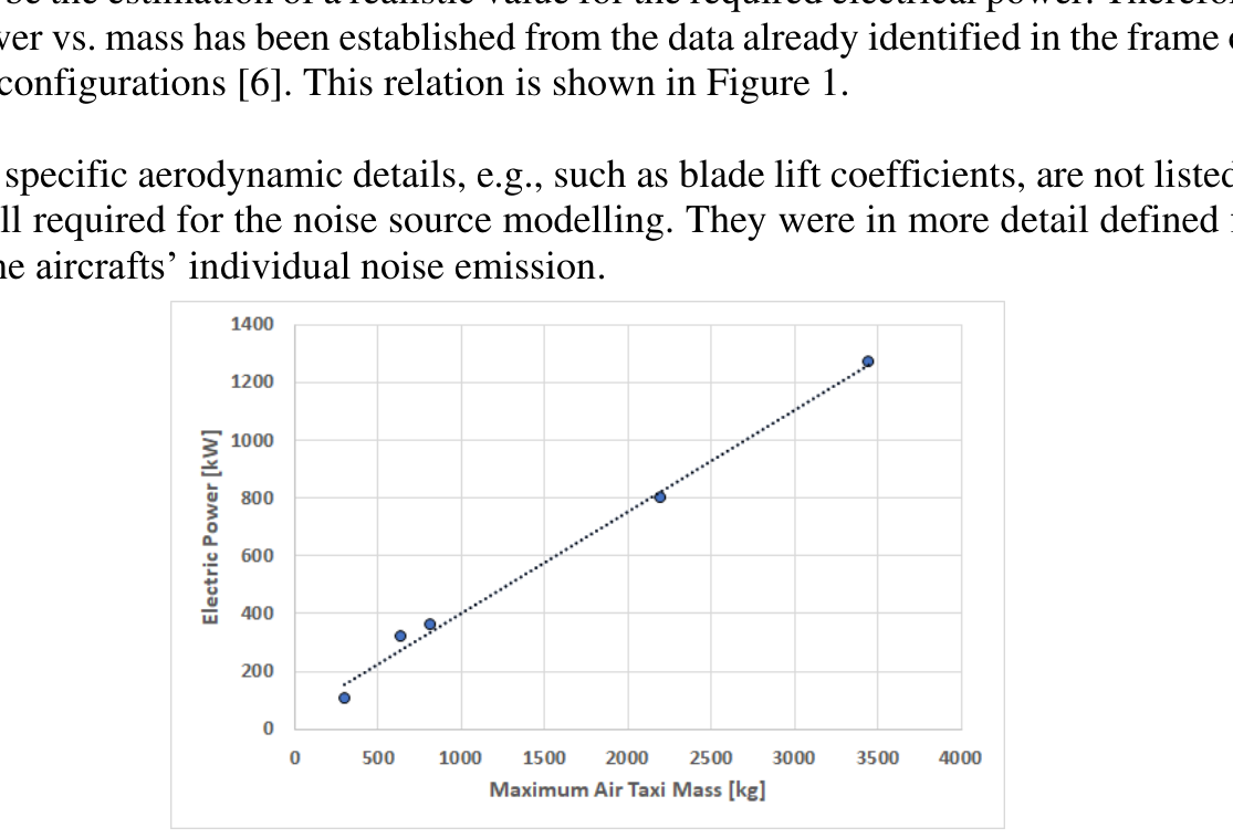 A A A ATEFA – Project’s results on UAM air traffic noise and air-taxi certi- fication Michael Bauer 1 Munich Aeroacoustics 85551 Kirchheim b. Muenchen, Germany Daniel Redmann 2 Kopter Germany GmbH 85635 Höhenkirchen-Siegertsbrunn, Germany ABSTRACT ATEFA, Germany’s first nationally funded research project on UAM community noise, aimed to pro- vide first answers, how novel air traffic noise from air-taxis can be assessed in a realistic scenario. Two eVTOL air-taxi systems – diverse in design and acoustics – and one regional STOL were acous- tically described and implemented in a traffic scenario which was covering the greater area around Munich in southern Germany, interlinking surrounding small towns, five larger cities of the region and the international airport. So far, in most studies generic noise emission data were used to discuss quite complex, but also generic air traffic scenarios. ATEFA did follow a different path, based on realistic technical data and passenger number predictions. Besides this, simulated certification pro- cedures were carried out for the two air-taxi systems. This activity was performed for an understand- ing of the applicability of already existing rules and regulations regarding noise certification. The project will close by end of 2022, but significant results for air-taxi flyover simulations, large area noise mapping, and certification aspects are already part of this paper. 1. INTRODUCTION New air vehicles may enter service around the year 2025+. ATEFA – Air-taxis: First Operational Noise Assessment – as a first German approach, will include noise source modeling, air-taxi opera- tions and certification aspects, and will provide first insight to answer questions related to community noise coming from future air-taxi operations [1]. One main task of ATEFA was collecting sufficient technical data of two air-taxi systems and the reference aircraft, in order to describe their main acoustic properties which will be used for all fly- over simulations in the project [1]. These acoustic properties were predicted according to existing semi-empiric methods, especially for noise sources related to rotor and propeller noise, as, e.g., pro- vided in [2]. Main results from the ATEFA project, will be summarized here, together with simulation results from flyover situations. A full noise mapping, performed for the greater area of Munich City in southern 1 michael.bauer@muc-aero.com 2 daniel.redmann@koptergroup.de worm 2022 Germany are completing the work shown here. The STOL regional aircraft was not included since the focus here is on the urban air-traffic with the possibility of operating in vertical take-off and landing mode. 2. AIR-TAXI CONCEPT SELECTION AND DESCRIPTION 2.1. Selection Criteria The criteria for the selection of the two UAM aircraft described in this paper have been defined in the project’s Task 1.1 already. One main idea – which is also part of ATEFA’s objectives – was not to design new air-taxi concepts but start from existing ones. However, the technical specifications should be close to real air-taxi systems. For this reason, it has been decided that each of the selected air-taxis will have a similar counterpart in “real life”, but with deviating technical details to avoid any assessment of an existing or currently developed product, and to remain with general statements. In some cases, this deviation was inevitable, anyway, due to the lack of publicly available data. One main requirement has been that both aircraft and the reference aircraft should have a clearly different acoustic character. This requirement appears to be necessary for later conclusions on com- munity noise effects and certification aspects. But all three vehicles should have in common to be operated in VTOL conditions. As reference aircraft, the small helicopter type “CABRI” [3] was selected because it is expected to cover the same range for maximum take-off weight (MTOW) like most of the promising air-taxi concepts. Another advantage is the availability of data from noise certification, which will later help comparing with air-taxi noise and assessing possible certification aspects . To include acoustically highly diverse air-taxis, their propulsion concept including its installation situation should be represented by a different aircraft different design. In any case, it was never the aim of ATEFA to model and simulate any existing air-taxi concept from the various (potential) man- ufacturers. Therefore, the two finally selected air-taxis will be labelled and described according to a specific classification, which will be shortly described in the next section. 2.2. eVTOL Classification for ATEFA Since the currently discussed future air-taxi systems show a big variety of different technical solu- tions, a classification will be necessary for a better “clustering” of the different aircrafts. There are already several classifications in use. In the principle, two major properties appear to be useful for classifying a certain air-taxi: Its technical design or the range of its intended operations. By technology, the following five major types may be used [4]: • Vectored Thrust • Lift + Cruise • Wingless (Multicopter) • Hover Bikes/Personal Flying Devices • Electric Rotorcraft By operational range, four classes seem to be useful [5] • urban to urban (intra-urban) • urban to next urban (inter-urban) • urban to outland (regional) • cross border (long distance) worm 2022 Both of ATEFA’s air-taxis are capable to operate intra-urban as well as inter-urban, so the description regarding the aircrafts’ basic technology will be used here. 2.3. Technical Data Only those data, preliminarily relevant for the acoustic description of the vehicle, were of interest. Table 1 provides some of the technical specifications developed in ATEFA. Table 1: Basic Technical Specifications for Reference Aircraft and Air-taxi Systems. Helicopter Multicopte