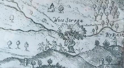 A A A Acoustic search for ‘The Witches Valley’ Antonella Bevilacqua 1 Department of Industrial Engineering, University of Parma Area delle Scienze, 43100 Parma, Italy Cobi van Tonder 2 Department of Theatre, Film, Television & Interactive Media, University of York York, UK Ilaria Lombardi 3 Department of Industrial Engineering, University of Campania Luigi Vanvitelli Aversa, Italy ABSTRACT Benevento is famous as the ‘city of witches’ according to folklore dating from the 13 th century. There exists much mystery and variation around the origin of the legend of ‘The Witches Valley’. Various writers, composers, poets and artists have referred to it, including the chief physician of Benevento, Pietro Piperno, who in 1639 in his book entitled ‘De Nuce Maga Beneventana’ traced the legend of the witches back to Lombards invaders in the seventh century, who gathered south of the city to dance and perform rituals under a magical walnut tree somewhere in the valley of the river Sabato, in a long narrow gorge. This paper aims to confirm the place of this legend based on acoustic properties and suggests two possible locations in the valley of the river Sabato: The Strait of Barba and Wolf Rock, that due to their acoustic properties could have been the place of the legend. A campaign of acoustic measurements has been performed using firecrackers recorded with a Brahma microphone. The acoustic analysis confirms that both these places are character- ized by a development of sound reflections, a phenomenon that can explain why a drum roll was perceived as a very reverberant and ‘magical’ sound. 1. INTRODUCTION History shows a long trail of how sound is connected to the sublime, whether deliberately manipulated by shamans, oracles, priests or witches in their rituals or whether determining the choice of sacred (magical) sites for spiritual activities. In prehistoric times the phenomena of sound propagation and reflection was unknown; as such, our primitive ancestors associated the presence of supernatural di- vinities to the rocks where the sound was reflected. In France and Spain in a few Paleolithic caves the images of hunting with quadrupedal animals have been discovered, detected in the areas where the reverberation is considerable, while scenes with feathered animals were discovered in the areas where the reverberation is not perceivable [1-3]. Shamans selected reverberant sites such as caves or narrow valleys to amplify their sounds, (which would often be the beating of drums) and intensify an 1 antonella.bevilacqua@unipr.it 2 cobi.vantonder@york.ac.uk 3 ilaria.lombardi@unicampania.it worm 2022 atmosphere of mystery and otherworldly power in order to impress the participants. Additionally, series of echoes and reflections generated the effect of mysterious voices – the voices of gods. Ex- amples can be found ranging from the pre-Columbian societies of Latin America [4], to ancient Greece [5] that show how reverberant sound was associated with supernatural phenomena: the echoes were believed to be the voices of spirits. In literature, there are various articles on the acoustics of caves and on the acoustics of valleys from which one can draw inspiration for the acoustic study of similar places and with modern acoustics techniques it is possible to investigate the propagation of the sound field in places where one believes they may have been used for sacred rites or functions. This paper deals with the acoustic investigation related to the existence of valleys in the country- side of Benevento where the legend of witches was born. Specific places located in the valley of the river Sabato have been measured. This valley is still a natural amphitheater surrounded by woods and hills. 2. THE LEGEND OF THE WITCHES’ VALLEY In Piperno’s ‘De Nuce Maga Beneventana’, the legend of the witches is traced back to Lombards invaders in the seventh century [6]. Though formally converted to Catholicism these Lombards car- ried on with their pagan traditions. The Christians of Benevento would have considered their rites as that of witches. According to the legend, witches were considered women with magical knowledge who could cure diseases with the use of medicinal plants. There is a description of witches that gath- ered south of the city to dance and perform rituals under a magical walnut tree, locating the place of their rituals somewhere in the valley of the river Sabato, in a long narrow gorge. Figure 1 shows a historical representation of Benevento as reported in the book by Piperino. In particular, a tree wrapped by a snake with the witches dancing around is indicated on the right side of the river Sabato, identified as the place where the witches were used to have periodical meetings. Supposedly, Saint Barbatus cut down the sacred tree and tore out its roots leaving acoustic evidence as an alternative way to confirm where the rituals took place. The Lombards would have selected a place where the sound could be amplified by the natural conformation of the landscape in order to impress the partic- ipants. Two possible locations in the valley of the river Sabato - the Strait of Barba and Wolf Rock, due to their acoustic properties could have been the place of the legend. worm 2022 Figure 1: Representation of the Witches’ Valley. Drawings by Piperino in De Nuce Maga Beneventana. 3. A STRATEGIC PLACE THROUGHOUT THE HISTORY The countryside of the actual Benevento was occupied by the Samnite tribes before they were domi- nated by Romans. With the realization of the Appia road, Benevento had a strategic position to be in the middle of an important commercial axis linking the Tyrrhenian with the Adriatic Sea. The legend of the witches took place with the invasion of the Lombards (Germans), who migrated to Italy due to famine and wars in northern Europe. They occupied also a part of southern Italy, establishing their center in the city of Benevento around 570 [7]. The Lombards brought the