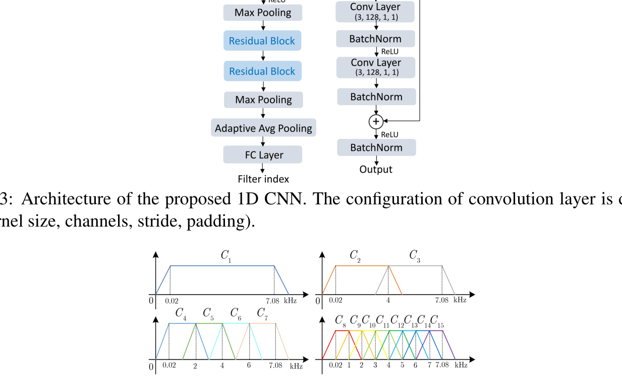 A A A Performance Evaluation of Selective Fixed-filter Active Noise Control based on Di ff erent Convolutional Neural Networks Zhengding Luo 1 , Dongyuan Shi 2 , Woon-Seng Gan 3 School of Electrical and Electronic Engineering, Nanyang Technological University, Singapore. Libin Zhang 4 Huawei Technologies Co., Ltd. Qirui Huang 5 Huawei International Pte. Ltd. ABSTRACT Due to its rapid response time and a high degree of robustness, the selective fixed-filter active noise control (SFANC) method appears to be a viable candidate for widespread use in a variety of practical active noise control (ANC) systems. In comparison to conventional fixed-filter ANC methods, SFANC can select the pre-trained control filters for di ff erent types of noise. Deep learning technologies, thus, can be used in SFANC methods to enable a more flexible selection of the most appropriate control filters for attenuating various noises. Furthermore, with the assistance of a deep neural network, the selecting strategy can be learned automatically from noise data rather than through trial and error, which significantly simplifies and improves the practicability of ANC design. Therefore, this paper investigates the performance of SFANC based on di ff erent one-dimensional and two-dimensional convolutional neural networks. Additionally, we conducted comparative analyses of several network training strategies and discovered that fine-tuning could improve selection performance. 1. INTRODUCTION Acoustic noise problems are becoming more prevalent as the quantity of industrial equipment increases [1]. The attenuation of low-frequency noises is quite di ffi cult and expensive for passive noise control techniques such as enclosures, barriers, silencers, etc. Di ff erent from passive techniques, active noise control (ANC) involves the electro-acoustic generation of a sound field to cancel an unwanted existing sound field [2]. Moreover, ANC can o ff er a possible lower-cost alternative for the control of low-frequency noises. Thus, it attracts much interest from the industry. When dealing 1 luoz0021@e.ntu.edu.sg 2 dongyuan.shi@ntu.edu.sg 3 ewsgan@ntu.edu.sg 4 zhanglibin@huawei.com 5 huang.qirui@huawei.com a slaty. inter.noise 21-24 AUGUST SCOTTISH EVENT CAMPUS O ¥, ? GLASGOW Error signal + ( ) x n Primary noise ( ) e n ( ) d n Disturbance Primary path ( ) P z _ ' ( ) y n Secondary path Control filter ( ) W z ( ) S z Anti-noise Co-processor Min-max operation Pre-trained Filter index CNN Control filter database Control filter database Figure 1: Block diagram of the CNN-based SFANC algorithm. with di ff erent types of noises, traditional ANC systems typically use adaptive algorithms to adjust control filter coe ffi cients to minimize the error signal [3]. Among adaptive algorithms, the filtered-X least mean square (FxLMS) and filtered-X normalized least-mean-square (FxNLMS) algorithm are commonly used since they can compensate for the delay involved by the secondary path to increase the system robustness [4]. However, due to the least mean square (LMS) based algorithms’ inherent slow convergence and poor tracking ability [5], FxLMS and FxNLMS are less capable of dealing with rapidly varying or non-stationary noises. Their slow responses to noises may impact customers’ perceptions of the noise reduction e ff ect [6]. Fixed-filter ANC methods [7] can be adopted to tackle slow convergence, where the control filter coe ffi cients are pre-trained rather than adaptive updated. However, the pre- trained control filter is only suitable for a specific noise type, resulting in the degradation of noise reduction performance for other types of noises. To rapidly select di ff erent pre-trained control filters given di ff erent noise types, a selective fixed-filter active noise control (SFANC) method based on the frequency band matching was proposed in [8]. Though the SFANC method [8] selects the most suitable pre-trained control filters in response to di ff erent noise types, several critical parameters of the method can only be determined through trials and errors. Considering the limitations, deep learning techniques, particularly convolutional neural networks (CNNs) [9–12], appear to be powerful in classifying noises in SFANC methods. Automatic learning of the SFANC algorithm’s critical parameters based on deep learning would broaden its applications in real-world scenarios. With the learning ability of CNN models, the SFANC algorithm can automatically learn its parameters from noise datasets and select the best control filter given di ff erent noise types without resorting to extra-human e ff orts [13]. Additionally, a CNN model implemented on a co-processor can decouple the computational load from the real-time noise controller. Therefore, in this paper, we compared the performance of several one-dimensional (1D) CNNs and two-dimensional (2D) CNNs in the SFANC method. Also, di ff erent network training strategies are tried to choose the best one for training the networks. Experiments show that the SFANC method based on CNN not only achieves faster responses than FxLMS and FxNLMS but also exhibits good robustness. Thus, it is expected to be used for attenuating dynamic noises such as tra ffi c noises and urban noises, etc. 2. CNN-BASED SFANC ALGORITHM The overall architecture of the CNN-based SFANC algorithm is depicted in Figure 1. Throughout the control process, the real-time controller conducts filtering to generate anti-noise while simultaneously sending the primary noise to a co-processor (e.g., a mobile phone). Given the primary noise, the co- processor employs a pre-trained CNN to produce the index for the most appropriate control filter and Figure 2: Markov model of the ANC progress. delivers it to the real-time controller. The controller then adjusts the control filter coe ffi cients based on the received filter index. Notably, if the network is a 1D CNN, its input is the raw waveform [14]. However, if the network is a 2D CNN