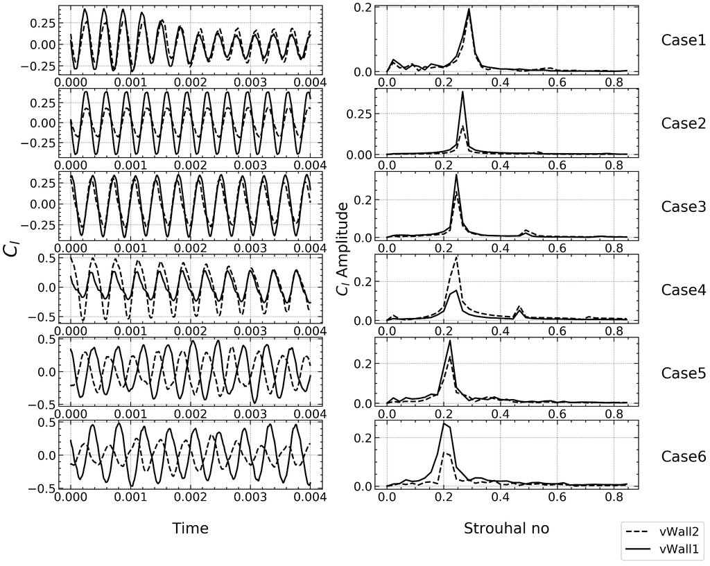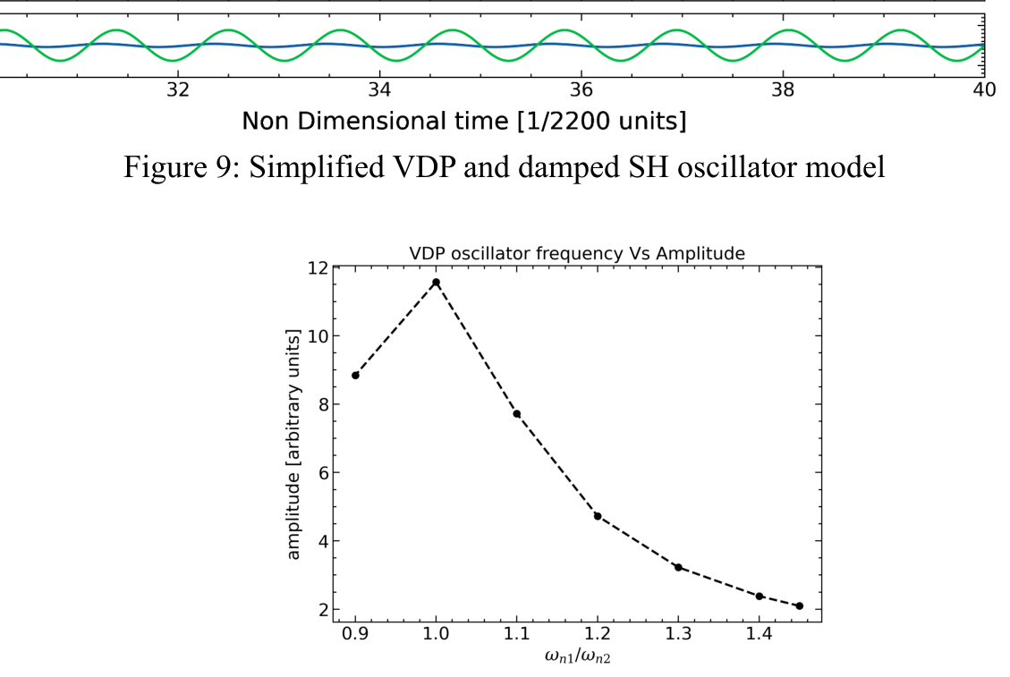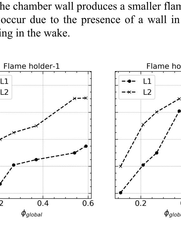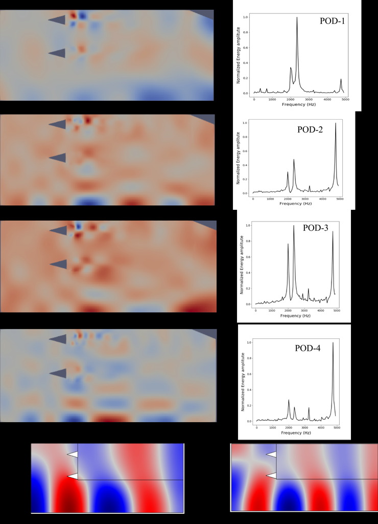 A A A Numerical investigation of thermoacoustic instability in a model afterburner with a simplified model for observed lock-in phenomena Muthaiah Manickam, Indian Institute of Technology-Madras, Chennai-India memuthaiah@gmail.com Ragul Senthilkumar 1 Indian Institute of Technology-Madras, Chennai-India Dr. VarunKumar S 2 Indian Institute of Technology-Madras, Chennai-India ABSTRACT Thermoacoustic oscillations in a gas-turbine afterburner are numerically investigated using CFD. A simplified 2-dimensional axisymmetric afterburner with bluff-body stabilized flame is considered in the investigation. Occurrences of high-frequency thermo-acoustic oscillations in the afterburner chamber is observed at specific fuel flow rates. The flow field from the CFD shows the bluff-body vortex shedding frequency to excite the acoustics of the afterburner chamber during the thermo-acoustic oscillations. The synchronization of the bluff-body wake with the acoustics of the domain results in thermoacoustic coupling. The Proper Orthogonal Decomposition of the flow field revealed the presence of chamber acoustics in the pressure field confirming the coupling. Then a simplified coupled oscillator model based on the van-der Pol and simple harmonic oscillators is attempted to reproduce the observed resonant oscillations. The oscillator model qualitatively captures the observed resonant oscillations in the chamber. This model could be extended to combustors with bluff-body wake in predicting thermoacoustic oscillations 1. INTRODUCTION At certain operating conditions, large-amplitude pressure oscillations are encountered in some combustion systems. These oscillations are referred to as thermoacoustic instability. As the name implies, these oscillations arise due to the interaction between the heat release and acoustics of the combustion chamber. When the unsteady processes of fluctuations in the heat release rate and the chamber acoustics are in phase, the energy in the acoustic field of the chamber could increase. It 1 ragulsk002@gmail.com 2 varuns@iitm.ac.in 21-24 AUGUST SCOTTISH EVENT CAMPUS ? 02 ? GLASGOW was first mathematically described by Lord Rayleigh [1]. Many applications ranging from liquid rocket engines, and aircraft gas turbines to industrial burners and furnaces suffer from the sudden occurrence of this instability. These oscillations result in unwanted vibrations/noise to catastrophic failure of the system or its components. Thus analysis and prediction of the instability gain importance. Numerous studies starting from the 1960s have focused on these thermo-acoustic oscillations. These high-pressure oscillations can be classified as low frequency/rumble and high-frequency/screech oscillations. A large body of work is available for low-frequency oscillations with a widely established theory for prediction [2]–[4]. However, the high-frequency counterpart has received relatively low attention, and the theory for prediction is still open. The complexity in the analysis of high-frequency oscillations is due to the participation of transverse modes, hydrodynamics, and non-compact heat release. Accounting for all of these in an analysis/investigation poses great challenges due to the multiscale nature of the processes that constitute the thermoacoustic loop. A review of various acoustic-hydrodynamic-acoustic mechanisms resulting in thermoacoustic oscillations can be found in [5]. Flame holders are used in stabilizing and sustaining the flame in high-speed air streams. They play an essential role in aerospace applications such as afterburners and ramjets. The unsteady wake flame is known to be a part of thermo-acoustic coupling leading to high-frequency oscillations [6]. Thus dynamics of the flame holder stabilized flames have been the focus of high-frequency screech research [7]–[11]. Many experimental studies were reported on the lab-scale setups with a flame holder placed in a rectangular or cylindrical duct [8], [9], [12]. Experiments with premixed inlet conditions showed high amplitude screech oscillations [8], [12]. Studies accounting for variations in inlet density ratios showed differing wake oscillations with a strong dependence on inlet density[13]. Convectively unstable mode with the varicose mode of oscillation is observed for high-density ratio, and absolutely unstable mode with sinuous oscillations for low-density ratio wakes [13]. This study investigates unsteady thermoacoustic oscillations in an axisymmetric afterburner setup with two bluff-body stabilized flames using CFD. High temperature vitiated inlet conditions encountered in the practical afterburner inlet conditions are also accounted for. The fuel injection rates are varied, with the other boundary conditions kept unchanged. The flow field is analyzed for the high-pressure resonant oscillations to identify the thermoacoustic coupling. In addition, the flow field is decomposed with the proper orthogonal decomposition (POD) technique to identify the dynamics of the spatio-temporal structures in the flow field. Then a representative simplified oscillator model based on the Van der Pol and a simple harmonic oscillator is developed. In the next sections, the geometric details of the afterburner setup, computational domain, CFD results and the POD, and the attempt on the simplified model are described. 2. GEOMETRY, COMPUTATIONAL DOMAIN & NUMERICS The 2D afterburner setup used in the present study is shown in Figure 1. The afterburner chamber consists of a jet pipe, flame holder arrangement, a convergent-divergent nozzle, and an extended domain into the atmosphere. The geometry is a simplified version of the afterburner setup based on [14]. The flame-holders are placed about 0.2 m from the inlet of the afterburner at a radius of 0.2 m and 0.32 m, respectively. The flame holders are wedge type having a width of 0.04 21-24 AUGUST SCOTTISH EVENT CAMPUS ? 02 ? GLASGOW m and a double angle of 30 o . An extended region with an atmosphere afte