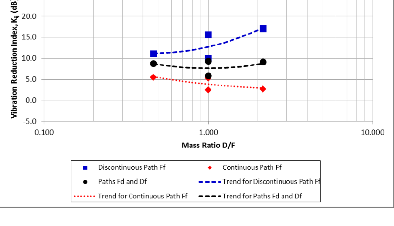 A A A The Vibration Reduction Index of Typical Canadian Cross-laminated Timber Junctions Jeffrey Mahn 1 National Research Council Canada 1200 Montreal Rd, Ottawa, Canada K1A 0R6 Markus Müller-Trapet National Research Council Canada 1200 Montreal Rd, Ottawa, Canada K1A 0R6 Iara B. Cunha National Research Council Canada 1200 Montreal Rd, Ottawa, Canada K1A 0R6 ABSTRACT In support of the National Building Code of Canada, The National Research Council Canada has published research report RR-335 which describes the results of measurements of the transmission of structure-borne noise through junctions between mass timber elements. The Code only allows for the use of measured data for the vibration reduction index from the NRC’s reports or reports from other research institutes. The Code does not currently allow for the use of empirical data for the calculation of the apparent sound transmission class of mass timber buildings. A lack of published data for typical mass timber junctions used in Canada can result in the overdesign of buildings or buildings which don’t meet the acoustic requirements of the Code. The NRC has embarked on a program to measure the vibration reduction index of a number of mock junctions of typical junctions used in Canada including junctions between cross-laminated timber floors and lightweight timber framed walls. The new data will aid in the development of empirical models of typical Canadian mass timber constructions. 1. INTRODUCTION The acoustic requirements of the National Building Code of Canada describe the estimation of the apparent sound transmission class (ASTC) rating according to ISO 12354 [1], but modified to use ASTM metrics as outlined in the Guide RR-331 [2]. While the Code allows for the empirical data from Annex E of ISO 12354 to be used to estimate the vibration reduction index (𝐾 𝑖𝑗 ) for concrete and concrete masonry assemblies, the Code requires that the vibration reduction index for cross- laminated timber (CLT) assemblies must be measured. To this end, the National Research Council Canada (NRC) has published the Report RR-335 [3] which includes data for a number of different CLT junctions. However, not every possible combination of floor, wall and connectors has been evaluated in RR- 335 which limits the choices for designers and builders of CLT constructions. 1 jeffrey.mahn@nrc-cnrc.gc.ca 21-24 auGUST Scortsi event Cas La inter.noise | ee 2022 A new research project at the NRC has set out to measure data for floor / wall and wall / wall junctions using different connector types and spacing to fill in some of the gaps in the existing knowledge for the vibration reduction index of CLT junctions. The planned outcome will be curves based on the empirical data that can be used for the prediction of the 𝐾 𝑖𝑗 values, similar to what is presented in Annex E of ISO 12354. 2. JUNCTION DESIGN The NRC has measured the 𝐾 𝑖𝑗 values for a number of junctions with similar mass rations such as a 3-ply wall connected to another 3-ply wall or a 5-ply wall. The CLT thicknesses for the wall / wall junctions of this study were chosen to measure the 𝐾 𝑖𝑗 values for more extreme mass ratios such as a 9-ply wall connected to a 3-ply wall. The new data points are intended to better define the curves shown in Report RR-335 such as that shown in Figure 1. Figure 1: The mean 𝐾 𝑖𝑗 values and the best fit curves for cross-junctions using angle brackets from RR-335 [3]. The 9-ply connected to the 3-ply will give mass ratios closer to 4 and .25. Other combinations of 3, 5 , 7 and 9 ply elements will fill in the empty spaces between the extremes. In addition to the cross-junctions to be evaluated, the 𝐾 𝑖𝑗 values for T-junctions will also be evaluated. 3. CONNECTORS Research report RR-335 is currently restricted to data for brackets fastened at 600 mm on center. The new study will include data for brackets spaced at typical distances as well as resilient connections between the elements. For example, a 7-ply wall connected to a 3-ply wall in an X-junction with brackets spaced 600 mm on center is shown in Figure 2. Wall-Wall Cross-Junction with Angle Brackets 11000 20000 ‘ass Ratio D/E (8 Pat and ot ====Trendforbicomtrous Path Figure 2: A cross-junction between a 7-ply wall and 3-ply walls. The walls are connected with brackets. The wall sizes are in full accordance with the requirements of ISO 10848 [4]. Each type of connector and spacing is anticipated to result in a different curve of 𝐾 𝑖𝑗 values. 3. RESULTS All of the results of the study will be published in a new version of the Report RR-335 to be issued in 2023 to support the National Building Code of Canada. 4. CONCLUSIONS The current lack of data and estimates for the 𝐾 𝑖𝑗 values for CLT junctions limits the use of CLT elements in building designs since it is difficult for designers and builders to demonstrate compliance with Code requirements without post-construction testing. The inclusion of new data in the development of empirical curves of the 𝐾 𝑖𝑗 values for typical Canadian CLTs will hasten the acceptance and use of CLT elements in building designs. 5. REFERENCES [1] “ISO 12354-1:2017 Building acoustics. Estimation of acoustic performance in buildings from the performance of elements - Part 1: Airborne sound insulation between rooms”, International Organization for Standardization, Geneva, Switzerland (2017). [2] Mahn, J., Quirt, D., Cunha, I., and Müller-Trapet, M., “RR-331: Guide to Calculating Airborne Sound Transmission in Buildings: 6th Edition”, National Research Council Canada, Ottawa, Canada (2022). [3] Mahn, J., Quirt, D., Mueller-Trapet, M., and Hoeller, C., “RR-335: Apparent Sound Insulation in Mass Timber Buildings”, National Research Council Canada, Ottawa, Canada (2019). [4] “ISO 10848-1:2017 - Acoustics - Laboratory measurement of the flanking transmission of airborne and impact sound between adjoi