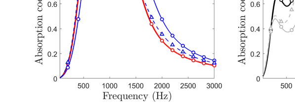 A A A Causal-based acoustic optimization of micro-perforated structures with rigid backing Teresa Bravo 1 Instituto de Tecnologías Físicas y de la Información Consejo Superior de Investigaciones Científicas Serrano 144 28006 Madrid, Spain Cedric Maury 2 Aix Marseille Univ, CNRS, Centrale Marseille Laboratory of Mechanics and Acoustics 4 impasse Nikola Tesla 13013 Marseille, France ABSTRACT The acoustical design of compact micro-perforated absorbers (MPA) that exhibit high performance over a broad bandwidth is a difficult challenge, often faced in building, ventilation and transportation industries. A causal-based optimization criterion of the MPA constitutive parameters is considered as an alternative to the maximization of the frequency-weighted overall absorption. It maximizes the directional gradient norm of the total intensity reflection coefficient (in logarithmic scale) integrated over all positive wavelengths. The causal and standard optimization strategies are assessed for sin- gle- and double-layer MPAs as well as for MPA arrays, the former (resp. the latter) being supported by Kundt tube measurements (resp. finite element simulations). The causal criterion ensures perfect absorption and the broadest possible bandwidth at one or several resonant states of the MPA, with efficient grouping and merging of the resonances of the optimized MPA array. Its performance is comparable to direct maximization of the total inverse-frequency weighted absorption. 1. INTRODUCTION The problem of the improvement of the absorbing and isolation characteristics of acoustic materials at low frequencies is a continuous engineering challenge in the building, ventilation and transporta- tion economic sectors. Constraints associated to the total size and weight of the control device are normally encountered when dealing with the increasing low frequency content of these sources. Clas- sical porous and fibrous absorbers show good broadband performance in the high frequency range, but are not suitable to these applications [1]. 1 teresa.bravo@csic.es 2 cedric.maury@centrale-marseille.fr 21-24 AUGUST SCOTTISH EVENT CAMPUS ? O? ? GLASGOW Micro-Perforated Panels (MPPs) are alternative solutions for situations when porous components are excluded due, for instance, to the presence of a mean flow [2]. They are also very convenient to use when especial hygienic conditions have to be met, such as hospital, clean room environments or alimentary industries. They are absorbers with micro-slits or micro-perforations with sub-millimetric holes diameter backed by an air cavity. They have been shown to offer good performance in the low frequency range provided that the physical parameters are properly selected, although the high ab- sorption values are confined to a narrow frequency band due to their Helmholtz-type nature [3]. To avoid the restrictions imposed on the total absorption bandwidth, porous absorbers have been added to the backing air cavity [4]. Other solutions have proposed the use of multi-layer partitions composed of single panels with different physical materials. Individual resonances are then merged to cover a broad frequency band. However, optimal selection of the constitutive parameters becomes a combi- natorial optimization problem that cannot be solved with traditional techniques, and other random methods based on natural algorithms have to be used [5]. The optimization is made with a cost func- tion considering an average absorption coefficient over the targeted frequency range. However, there are many solutions that provide similar absorption results with different parameters and it cannot be assured that the configuration selected provides the highest absorption peak value over the largest bandwidth with the minimum total depth. In this work we propose an alternative method that can warrant this requirement. Similar problems have been analyzed before in the field of electromagnetism to find the maximum bandwidth that can be obtained by radar slabs absorbers of given thickness. Rozanov [6] has proposed an expression based on the causality principle relating the logarithm of the reflection coefficient in- tegrated over all wavelengths to its thickness. An extrapolation of these results has also been derived to provide a lowest thickness of a one-port rigidly-backed acoustic absorber considering a specific frequency bandwidth [7]. Integral inequalities have been obtained, over all positive frequencies, as- sociated to the reflection and transmission coefficients of the matching structure, as a function of its effective mass, bulk modulus and of the surrounding media impedances. These expressions are part of more general relations formulated in the frame of acoustic scattering theory [8] for one or two-port systems. Based on these expressions, in this work we will present a causal-based optimization criterion for the selection of the physical configuration of a one-port MPA able to maximize the dissipated incident sound power over a determined bandwidth. The theoretical formulation of the causal-based criterion will be presented in Section 2, and a comparison with a classical frequency-weighted optimization formulation will be shown. Section 3 will provide a set of analytical predictions for a single-layer MPA when finding the optimal holes diameter for perfect absorption at the Helmholtz resonance. The criterion will be also applied for a double-layer MPA when considering two optimization parameters in Section 4. Finally, the main conclusions will be summarized at the end of the paper. 2. CAUSAL-BASED AND FREQUENCY-WEIGHTED OPTIMISATION CRITERIA In this section we will present a general formulation for the design of absorbing acoustic materials that can achieve optimal performance over a specified frequency range of interest. This formulation can provide a strategy for the proper selection of the physical parameters for best acoustic perfor- mance with the minimum sample thickness. The theory is 