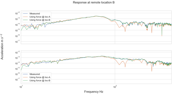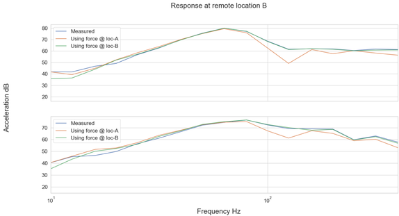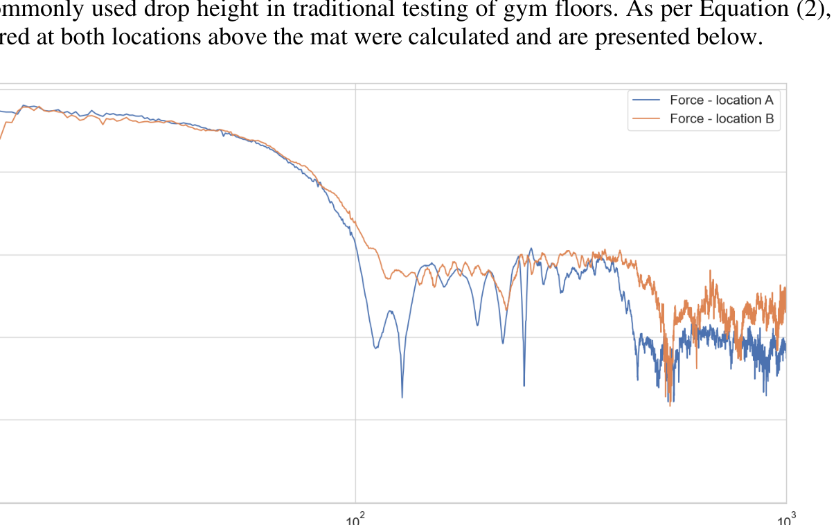 A A A Prediction of impact noise from gym sources on resilient matting Nikhilesh Patil 1 Hoare Lea 601 Royal Exchange, Manchester, M2 7FL Martin McNulty 2 Hoare Lea 601 Royal Exchange, Manchester, M2 7FL ABSTRACT Controlling impact noise from heavy weight drops continues to be a challenging design issue in new and existing gyms. Within the design and prediction phases, in-situ measurements on bare slab and flooring test samples are often required to reduce uncertainty. However, these can be intrusive, and there is no consistent test methodology within the industry as of yet. This is further complicated by the nature of problem – a large number of source mass and height combinations and potential floor- ing test samples to be tested with such source combinations. Emerging guidance within the UK is likely to fill gaps on predictions for typical gym floors with reliance on engineering grade assump- tions and empirical limits. However, this does not necessarily subside the need for robust in-situ test data to complement such predictive approaches. As such, there is a need for a methodology which bridges the gap between prediction and in-situ test elements which is reliable, time efficient and can be used for predictions on wider source cases and in varied locations or structures. The paper dis- cusses potential ways of simplifying prediction and testing strategies with a view to estimating the noise and vibration levels from gym floors with resilient layer. It is shown that if certain quantities can be independently characterized in a laboratory, then this would avoid the need of weight drop testing in-situ. 1. INTRODUCTION Controlling impact noise from gyms continues to be a design challenge to acoustic consultants world- wide and the adverse health effects are becoming well documented [1]. Whilst gyms have been iden- tified as a wish-list item in choosing a residential apartment, this driver has not done enough to push designers towards a robust approach in predicting its impact. To date, there is no consistent or ac- ceptable standard to predict gym impact noise that can be readily applied in early stages of design. The onus is rather put on control stage in a rather heavy-handed approach of high-performance heavy mass floating floors. This still requires a level of iterative testing on smaller samples and offers little room for optimization. For example, the architectural, cost allowance may not allow for the best floating floor and end user expectations may deviate from what a mitigation system (e.g., floating floor) has been designed in for. 1 nikhileshpatil@hoarelea.com 2 martinmcnulty@hoarelea.com worm 2022 There is an emerging consensus that such acoustic design issues could be potentially solved with a robust prediction method. When this prediction method (either wholly measurement-base, wholly simulation-based or a combination of the two) can be applied early on in the design process this can highlight expected mitigation or control system to be used on a case-by-case basis. 2. IMPACT NOISE FROM GYMS In typical gym setting, the problem of impact noise has to be dealt with a mitigation solution. This can take form of a floating floor or resilient matting or a combination of the two. Resilient mats can exhibit non-linearity (stiffening) with increased impact loads and can offer added complexity in the predictions. In this paper, we have targeted the problem in the linear range, where the loads do not significantly lead to local stiffening from excessive compression at the impact location. During a testing stage on site to determine the in-situ performance, often a number of matting combinations are tested. This can become cumbersome when a number of mass-height combinations of the weight drops are to be tested manually. The number of unlimited permutations can make it practically impossible to simulate every scenario within a typical test period. A judgement has to be made on part of the consultant and the end user feedback on types or weights and user patterns (if known) to simulate the most likely impact event(s). However, that still does not get rid of the require- ment to test multiple combinations of weights. One potential way of addressing this is a hybrid approach – whereby in-situ data of the re- ceiver (sub floor) and dynamic characteristics of the resilient matting can be combined in a prediction model to enable simulation and prediction for a range of impacts and mats in a time effective manner. This would limit the need of testing multiple weights on site. Furthermore, if a library of laboratory test data of the right dynamic characteristics of the mats is available, the modelling may allow for optimized selection of mats based on predictions. The question now arises as to whether such an approach is feasible and if so, what characteristics can be adequately coupled for the receiver (sub floor) and the isolating material (the resilient matting). To this end, a discussion and methodology is presented in the next section. 3. METHODOLOGY Let us represent the physical system as a source receiver system. For the sub floor, assuming the construction is test ready, the response of the floor to a known force can be established. This can be obtained in terms of an Accelerance (Acceleration/force, A ) or Mobility (Velocity/force, Y ) Fre- quency Response Function (FRF) which characterizes the vibration response of the floor slab to a unit force excitation at an impact location. Note that similarly a vibracoustic FRF (sound pres- sure/force) could also be measured but this is generally sensitive to background noise. If the mat is also considered a part of the receiver, then these FRFs can be measured with the mat included (i.e., with the excitation on top of the mat). Therefore, depending on whether the resilient matting is in- cluded as part of the source we can characterize two forces, namely, Forces above the mat into the mat-floor receiver (R1) Forces below the mat into the