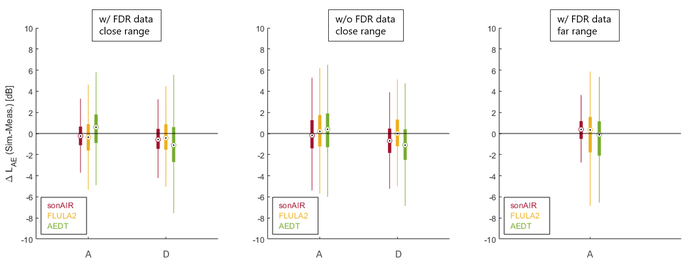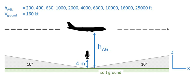 A A A Validation of three aircraft noise calculation models Jonas Meister 1 , Stefan Schalcher, Jean-Marc Wunderli, Beat Schäffer Empa, Swiss Federal Laboratories for Materials Science and Technology Ueberlandstrasse 129, 8600 Dübendorf, Switzerland ABSTRACT Aircraft noise affects large areas around airports. Noise calculation programs therefore need to account for air operations with high accuracy. In this contribution, we simulated several thousand single flights with three aircraft noise calculation models, namely sonAIR, FLULA2 and AEDT, and compared the results among each other and with corresponding noise measurements to evaluate their accuracy. While FLULA2 and sonAIR calculations are adjusted to local conditions, AEDT was run with default settings (NPD data and standard procedural profiles) to assess its performance when using unadjusted input data. We found that results of all three programs on average agree well with measurements and with each other. sonAIR is more accurate when using flight configuration data, but also in greater distances to the airports. Exemplarily adaptations of AEDT input data to local conditions showed that such adaptations clearly improve its calculation results. The contribution thus shows that, despite their inherently different modelling approaches, (a) all three programs are on average equally capable of reproducing the sound exposure in the vicinity of airports, (b) adaptions of input data to local conditions substantially improve results and (c) sonAIR is able to reproduce single flights with higher accuracy when provided with flight configuration data. 1. INTRODUCTION Aircraft noise affects large areas and is hardly shielded by obstacles on the ground. Around 4 million people in Europe were estimated to be exposed to aircraft noise levels ( L den ) of 55 dB or higher [1]. Further, the most likely scenario according to EUROCONTROL [2] is a 44% increase in air traffic by 2050 compared to 2019, which will also increase the number of affected people. Since aircraft noise has negative public health effects, the WHO recommends to reduce aircraft noise below the an L den of 53 dB [3]. To be able to monitor aircraft noise for large areas, accurate calculation models are required. They need to represent real aircraft noise very accurately, since the results have large-scale impacts, e.g., on land-use planning. To evaluate the accuracy of different aircraft noise modelling approaches, we conducted validation simulations of three inherently different models, namely sonAIR [4, 5], FLULA2 [6] (the latter officially used for aircraft noise calculations in Switzerland) and AEDT [7] (a Doc 9911 [8] compliant and Doc 29 [9] equivalent model) and compared the results among each other and with measurements. These results are published in greater detail in [10]. In a second part, we conducted AEDT simulations with adapted input data adjusted to local conditions to demonstrate its influence on the simulation accuracy. 1 jonas.meister@empa.ch a Shea mar ce 21-24 AUGUST SCOTTISH BENT caso 2. Model Validation 2.1. Validation Concept We used noise measurements of several thousand aircraft fly-overs at different locations around Zurich (ZRH) and Geneva (GVA) airports, Switzerland, and simulated these noise events with the three models. For approaches, the measurement points are located up to 53 km from touchdown. The acoustic quantity used for the model validations and comparisons is the A-weighted sound exposure level L AE (sometimes also referred to as SEL). The simulated aircraft types are the most frequently operating large aircraft in ZRH and GVA, which account for the largest share of the total noise. For one part of the simulated flights, flight data recorder (FDR) data was available, which, beside time and position information, include the aircraft configuration and N1 (rotational speed of the low- pressure compressor) data, which sonAIR is able to account for in simulations. For the other part of the flights, only time and position information from radar data were available. Table 1 summarizes the most important dataset properties, which we used for the simulations. Table 1: Properties of the different datasets used for the validation simulations. Range to airport(s) FDR data # Flights Airport(s) # Different aircraft types close yes 1732 ZRH/GVA 8 close no 6659 ZRH/GVA 24 far (up to 53 km) yes 394 ZRH 5 For this validation, we ran AEDT without adjustments to local conditions (standard procedural profiles, default thrust setting, NPD tables and ISA) and had to apply corresponding decibel adjustments according to chapter 6.4 of the ECAC.CEAC Doc 29 (Volume 1) [9] for substituted aircraft types. More details on the input data (e.g., weather, terrain, ground cover) for all three models can be found in [10]. 2.2. Aircraft Noise Models A detailed comparison of the three models can be found in [10]. The three models are briefly described in the following. sonAIR [4, 5] (version 7) is a time-step aircraft noise simulation model that yields spectral sound pressure levels in third-octave bands, designed to represent single flights in great detail. Engine and airframe noise are separately modelled as three-dimensional directivity patterns. The sound propagation is calculated separately and accounts for various attenuation and meteorological effects [4]. If the underlying dataset for the simulations are FDR data, all necessary parameters such as N1, air density, Mach number and aircraft configuration are available. Otherwise, as it is the case for 6659 validation flights (see Table 1), radar data are used, which only yield time and position information. Mandatory inputs, such as N1 and air density, have to be estimated or taken from other sources in the latter case. However, since it is hardly possible to estimate the aircraft configuration, a reduced model is used for these cases, which does not consider aircraft configuration. FLULA2 [11] (version 004) is also a time-ste