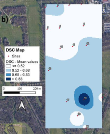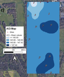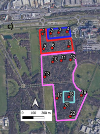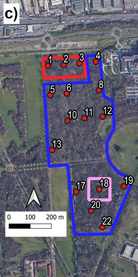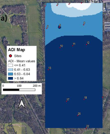 A A A Towards an environmental sound map at Parco Nord of Milan, Italy Roberto Benocci 1 , Andrea Potenza 2 , Alessandro Bisceglie 3 , Chiara Confalonieri 4 , Claudia Canedoli 5 , Emilio Padoa Schioppa 6 , Giovanni Zambon 7 Department of Earth and Environmental Sciences (DISAT), University of Milano-Bicocca Piazza della Scienza 1, 20126 Milano, Italy. H. Eduardo Roman 8 Department of Physics “G. Occhialini”, University of Milano-Bicocca Piazza della Scienza 3, 20126 Milano, Italy. ABSTRACT Green areas suffer the growing influence of urbanization and may benefit from the use of passive acoustic monitoring (PAM) which can provide biodiversity estimation and conservation especially in fragile environments such as urban parks and protected areas. A network of low-cost sensors has been distributed over an area of approximately 20 hectares at the Parco Nord of Milan, Italy, to highlight areas with different acoustic characteristics. The audio files analysed in this study were recorded at 16 sites on four sessions between May 25 th and May 29 th 2015 from 06:30 a.m. to 10:00 a.m.. Seven eco-acoustic indices have been computed and analysed. A map of eco-acoustic indices has been built and validated by comparing the results with an aural survey aimed at determining the sound components at each of the sixteen sites (biophonies, technophonies and geophonies). This approach may represent a useful tool for an integrated approach aimed at conservation planning and development decisions. 1. INTRODUCTION Sound is an everywhere component in the environment with potential negative effects on human health as proved by a number of studies [1, 2]. The noise effect on wildlife is a branch of acoustics called soundscape ecology. The term “soundscape” is generally referred to as the relationship between the landscape and the mixture of sounds that characterize it. Sounds at a location include bio-phony (animal vocalization) [3], anthrophony (mechanical sounds) and geophony (wind or rain) [4]. Studying the soundscape may help determine to what extent anthropogenic noise, while being part of the soundscape itself, plays a role in disturbing terrestrial and marine habitats, altering intra and inter-species communications. Soundscape is investigated through passive acoustic monitoring 1 roberto.benocci@unimib.it 2 a.potenza@campus.unimib.it 3 alessandro.biscegle@unimib.it 4 c.confalonieri12@campus.unimib.it 5 emilio.padoaschioppa@unimib.it 6 claudia.canedoli@unimib.it 7 giovanni.zambon@unimib.it 8 eduardo.roman@mib.infn.it which consists of recording devices placed in the studied area to extract information on the abundance of species and the ecosystem condition [5-7]. The audio recordings are then analysed using eco- acoustic indices, which capture different sound characteristics, such as frequency modulation and distribution, wave amplitude and compare spectral and temporal trends. Recently, cost-effective soundscape assessment tools have been successfully applied to traffic noise mapping in urban areas as for instance in Madrid [8], Rome [9], Paris [10], Milan [11] and Rotterdam [12], but it is now becoming a strong requisite across all fields of eco-acoustics and bioacoustics. In this paper, we present the results of a measuring campaign performed at Parco Nord of Milan, Italy using eco-acoustic indices aimed at the realization of spatial maps of environmental sound characteristics. 2. MATERIAL AND METHODS The area of study extends over 20 hectares of wooded parcel at the outskirt of the city of Milan, and surrounded by a congested road network and a near light aircraft airport. Measurements were taken in May 2015 using 16 low-cost recording devices positioned on a regular grid as shown in Fig. 1. Figure 1: Measurement sites. Red circles represent the effective measuring sites (16). Yellow circles represent sites (6) where sensors had a glitch. For each site and day of monitoring (four in total), 3.5 h were recorded (from 6.30 am to 10.00 am). Seven eco-acoustic indices have been employed: the Acoustic Complexity Index (ACI) [12], the Acoustic Diversity Index (ADI) [13], the Acoustic Evenness Index (AEI) [14], the Bio-acoustic Index (BI) [15], the Normalized Difference Soundscape Index (NDSI) [16], the Dynamic Spectral Centroid (DSC) [17] and the Acoustic Entropy (H) [18]. The eco-acoustic indices have been computed according two different patterns in order to extract different characteristics of the time series. 1. Global information : for each site, computation of seven eco-acoustic indices at 1 s integration time. The distribution of the values of each index has been described using the most representative statistical metrics. For this purpose, seven descriptors were considered: the mean value, median, mode, standard deviation (SD), interquartile range (IQR), skewness, and kurtosis. 2. Dynamic information : for each site, computation of seven eco-acoustic indices integrated over 30 minutes. An aural survey, aimed at determining the sound components, such as biophonies, technophonies and geophonies at each site, has been performed as cross-validation of the eco-acoustic indices analysis. 3. RESULTS The choice of the eco-acoustic indices and their settings for the analysis requested an initial tuning due to the specific environment under investigation. We started with the seven eco-acoustic indices as also employed in previous works [19, 20]. For NDSI the threshold between human-generated and biological sounds is generally set at 2 kHz, whereas for BI, the area under the mean frequency spectrum describing the biophonic activity is limited within 2 kHz and 8 kHz. These settings have been successfully used in other contexts [21], but in the specific case they proved to be inappropriate because of the presence of bird species such as the carrion crow ( Corvus cornix ), the wood pigeon ( Columba palumbus ) and the cuckoo ( Cuculus canorus ) which produce sounds in the interval considered to be restricted t