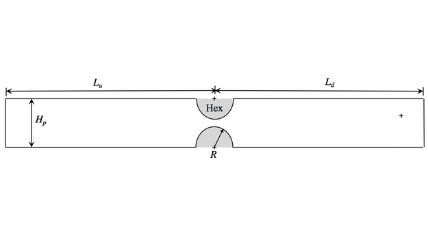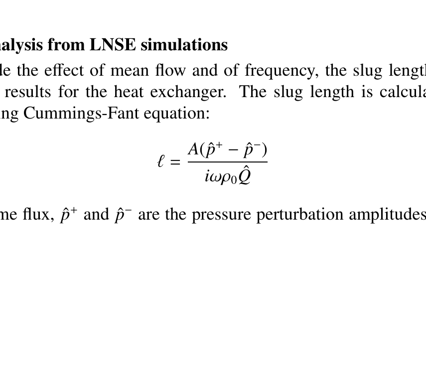 A A A A slug length calculation for a contraction with mean flow between two half cylinders Wei Na 1 Department of Mechanics and Maritime Sciences, Chalmers University of Technology, SE-41296 Gothenburg, Sweden Dong Yang Department of Mechanics and Aerospace Engineering, Southern University of Science and Technology, PR-518055 ShenZhen, China Aswathy Surendran Department of Engineering Physics and Computation, Technical University of Munich, GE-85747 Munich, Germany Susann Boij KTH Royal Institute of Technology, Marcus Wallenberg laboratory for Sound and Vibration Research, Deptartment of Engineering Mechanics, SE-10044 Stockholm, Sweden Aimee Morgans Department of Mechanical Engineering, Imperial College London, SW72AZ London, United Kingdom Huadong Yao Department of Mechanics and Maritime Sciences, Chalmers University of Technology, SE-412 96 Gothenburg, Sweden ABSTRACT A slug length is widely used to describe additional mass inertia at low frequencies in duct acoustics. It is often used in acoustic energy analysis, e.g. as one of the inputs for semi-analytical or empirical models to obtain the acoustic reflection and transmission coe ffi cients. However, the calculation of slug length is usually empirical and limited to certain conditions, such as simple geometric configurations, low frequencies, no mean flow, etc. In this paper, the slug length at a contraction with mean flow between two half cylinders is calculated by di ff erent methods: solving the Laplace’s equation numerically, solving the Helmholtz equation, and using the Cummings – Fant equation based on the numerical results of frequency-domain linearized Navier-Stokes equations. Both the frequency-dependance and the mean flow e ff ect are discussed. The calculated slug length can also be used as a crucial input, for example, in the Dowling and Hughes slit model and modified Cummings slit model to predict the acoustic scattering at tube rows in the presence of a cross mean flow[ 7 ]. 1 wein@chalmers.se a slaty. inter.noise 21-24 AUGUST SCOTTISH EVENT CAMPUS O ¥, ? GLASGOW 1. INTRODUCTION AND NUMERICAL CONFIGURATION The use of heat exchangers in aeroengines can have a large impact on thermoacoustic instabilities, since the heat exchangers influence the heat transfer as well as the acoustic perturbations in the thermoacoustic feedback loop. Here, we only consider heat exchangers with the structure of tube rows subject to cross-flow as Fig. (1) shows, and focus on the acoustic response of heat exchanger tube rows without any heat transfer. Multiple physical phenomena are involved when there is an incident acoustic wave and flow going through the contraction of the tube row. Acoustic waves will be scattered at the cylinders, leading to both sound transmission and reflection; In addition, acoustic energy is absorbed within the boundary layer due to the wall friction on the cylinder surfaces; When flow passes through the contraction, a jet flow and recirculation zones are formed in the formation of the shear layers. Such shear layers are unstable to low-frequency acoustic perturbations, and energy may be absorbed or amplified due to coupling between acoustic waves and vorticity waves. Thus, it is of interest to make an analysis of flow-acoustic interactions for tube row heat exchangers. Figure 2: The simplified two-dimensional numerical geometry of the tube rows investigated in the paper, where R is the diameter of the cylinder, R = 5.9mm, H p is the duct height H p = 17.2mm, yields the open area ratio η = 0 . 31. The duct length up- and downstream of the half cylinders are L u = 40 R , L d = 40 R , respectively. Figure 1: Schematic of the three- dimensional tube rows in the presence of cross-flow. 2. SLUG LENGTH CALCULATION The slug length is an important criteria for acoustic energy analysis [ 2 ]. Further, it is an input for the analytical model proposed by [ 1 ] to obtain the acoustic reflection and transmission coe ffi cients. However, the evaluation of the slug length is often empirical and limited by many factors, e.g., di ff erent geometries and flow conditions. For example, T. Luong [ 5 ] proposed a model for the slug length for a bias-flow aperture, that is ℓ = 2 l 0 + l ω , where l 0 is the end correction by the irrotational flow and l ω is the thickness of the orifice. In this case, the slug length is a constant value independent of frequency, and is thus limited to describing the behaviour of low-frequency incident acoustic waves when a jet flow is present. However, the value of the slug length changes at higher frequencies due to that the pulsations in the momentum flux cannot continue to be absorbed by acceleration of the incompressible jet [ 5 ]. Here, we propose a methodology to get the frequency dependent slug length, where the slug length is calculated from the numerical LNSE results through using the Cummings – Fant equation [ 6 ][ 3 ][ 4 ]. By the work conducted here, the slug length for the geometry depicted in Fig. (2) is obtained numerically considering a cross-flow with di ff erent inlet flow speeds and at di ff erent frequencies. This analysis establishes a link between the numerical model and the analytical model, providing a physical insight for the vortex-sound interaction at tube rows in the presence of flow. First, the slug length in the absence of flow is calculated by solving the Laplace equation numerically, as presented in Section 2.1. The slug length as a function of frequency, and with cross-flow is then calculated from the LNSE numerical results in the presence of flow in combination with the use of the Cummings - Fant equation as described in Section 2.2. 2.1. Numerical solution of the Laplace equation The slug length is an e ff ective length of the ‘slug’ of fluid flowing through the cylinder contraction. For the current heat exchanger configuration, the diameter of the heat tubes is much smaller than the acoustic wavelength. At low frequencies, the contraction region can be c