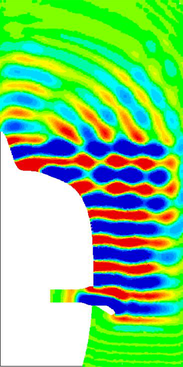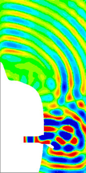 A A A Basic investigation of sound field inside and outside ear canal under ultrasound irradiation Yuya Ogawa 1 Department of Electrical Engineering, College of Science and Technology, Nihon University, Japan 11-2-3, Kanda-Surugadai, Chiyoda-ku, Tokyo 101-8308, Japan Ayumu Osumi 2 Department of Electrical Engineering, College of Science and Technology, Nihon University, Japan 11-2-3, Kanda-Surugadai, Chiyoda-ku, Tokyo 101-8308, Japan Youichi Ito 3 Department of Electrical Engineering, College of Science and Technology, Nihon University, Japan 11-2-3, Kanda-Surugadai, Chiyoda-ku, Tokyo 101-8308, Japan ABSTRACT In recent years, high-intensity airborne ultrasound applied technology has been developed actively. Accordingly, there are concerns about the effects of sound wave exposure by high-intensity air- borne ultrasound. The sound wave intensity is different near the entrance of the ear canal and near the eardrum, because the wavelength is short in the ultrasound region. Therefore, it is nec- essary to know accurately the sound pressure at the eardrum position in considering the effects of sound waves exposure by ultrasound. However, it is difficult to measure sound pressure near the eardrum with a probe microphone because it may damage the ear canal and eardrum. Against this background, we have studied the sound pressure characteristics inside and outside the ear canal when airborne ultrasound is exposed to the mannequin head (KEMAR) with a pseudo-ear canal created to imitate the dimensions of the human ear canal. And, we have attempted to estimate the sound pressure value near the eardrum using the sound pressure in the ear canal. In this report, we verified the sound field inside and outside the ear canal and the sound pressure near the ear- drum, when ultrasound (frequency:20 kHz) were irradiated to the mannequin head. 1. INTRODUCTION Many technologies using a high-intensity airborne ultrasound have been studied. In addition, the devices that can radiate the high-intensity airborne ultrasound to realize applied technology are also developed. [1-6]. As examples, there are parametric speakers [7,8]that are super-directional speakers, airborne ultrasound phased arrays [9] that can perform high-speed electronic scanning, and devices [10,11] that can emit extremely the high-intensity airborne ultrasound. On the other hand, the ultra- 1 csyu21008@g.nihon-u.ac.jp 2 osumi.ayumu@nihon-u.ac.jp worm 2022 sound exposure by the high-intensity airborne ultrasound used in these techniques has become a prob- lem. Therefore, various safety standards for ultrasound exposure have been studied [12-17]. One of evaluation of ultrasound exposure is an evaluation of sound pressure at the eardrum. The sound pres- sure near the eardrum often does not match the sound pressure near the entrance to the ear canal. The reason for this is that the wavelength of the sound wave is short in the ultrasound region. Therefore, in order to verify the effect of ultrasound exposure, it is necessary to accurately measure the sound pressure at the eardrum. worm 2022 In order to verify the sound pressure near the eardrum, we proposed to evaluate the sound pressure inside and outside the ear canal when the mannequin head is irradiated with airborne ultrasounds. In this report, the sound field formed in the ear canal was verified by the measurement and the analysis. 2. Simulation of ultrasound exposure using pulsed ultrasound 2.1. Analysis procedure (a): Schematic view. (b): Cross section view. Figure 1: Simulation model. Figure 1(a) and (b) show the analytical model. Fig. 1(a) shows a schematic view and Fig. 1 (b) shows a cross-sectional view. (a) Pseudo-auricular. (b) Pseudo-ear canal. Figure 2: Pseudo-auricular and pseudo-ear canal. Figure 2(a) and (b) show the pseudo-auricular and pseudo-ear canal used in the analysis. Here, the head model used in the analysis is simulated of a mannequin head (GRAS, KEMAR Type 45BA), as shown in Fig. 1, with pseudo-auricular and pseudo-ear canal structures as shown in Fig. 2(a) and Fig. 2(b). In the analysis, as shown in Fig. 1 (b), the plane shaped ultrasound is set to be irradiated from the front direction of the mannequin head. In addition, the analysis area of the sound field distribution is around the head and the ear canal. The material of the mannequin head was water (sound velocity: 1500 m/s, density: 997 kg/m3), simulating a human head, and an air medium (sound velocity: 340 m/s, density: 1.293 kg/m3) in the other areas. Other analysis conditions are shown in Table.1. worm 2022 Table.1: Analysis conditions Mesh type Free tetrahedral Mesh size 3.4 mm Number of element Approx.320000 Time resolution 1 us Input cycle 7 waves The COMSOL Multiphysics (ver. 5.6) finite element method software was used for the acoustic analysis. 3. Result and discussion _ ae a— | = S—— a — —_—.. — i= _. = — = = = ——- 3.1. The sound field around the head Aut): Apt aan (a) (b) (c) Figure 3: Observation of pulse ultrasound propagation around head. Figure 3 shows an image of ultrasound propagating around the head. Fig. 3(a)-(c) are images at each time periods. First, sound waves arriving at the head are divided into two types. One is sound waves that goes directly to the auricular (Primary wave). The other is a sound wave that propagates to the auricular while diffracting along the side surface of the head (Succeeding wave), (Fig. 3(a)). Subsequently, a part of the primary wave that reaches the auricle enters the ear canal. In addition, a part of the primary wave is reflected by the auricle and interferes with the succeeding wave. Sound waves entering the ear canal is reflected by the eardrum and interfere with the succeeding wave to form standing waves. worm 2022 3.2. The sound field formed inside the ear canal Based on the simulation results verified in Section 3.1, we performed a detailed verification of the sound field in the ear canal. This verification was performed both by analysis and 