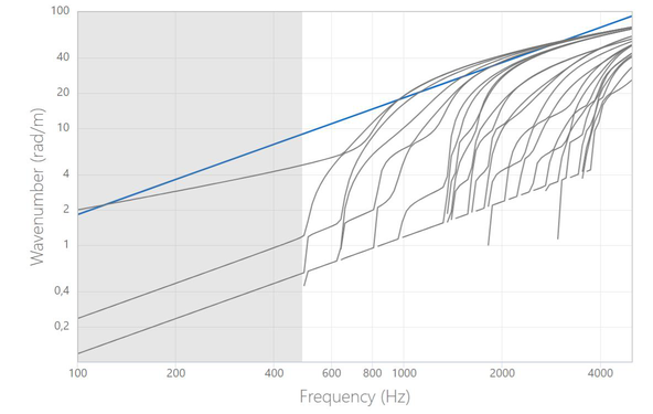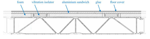 A A A Modelling of train floor sound transmission using coupled FE-SEA analysis Ulf Orrenius 1 Akustikdoktorn Sweden AB Drakens Gränd 6 II 111 30 Stockholm, Sweden Torsten Kohrs 2 Alstom Am Rathenaupark 16761 Hennigsdorf, Germany ABSTRACT A hybrid FE-SEA numerical method is applied to calculate transmission and radiation properties of periodic structures typical for railway design. Train floor structures made from extruded aluminium profiles with and without interiors are analysed. Such structures are common in rail vehicle design, in particular for high-speed vehicles, and are typically subject to various noise control measures. Accurate and effective simulation models are key to reaching the acoustic design targets while respecting weight and cost budgets. The simulation concept applied, rests on that an accurate Statistical Energy Analysis (SEA) representation of the structure is determined from a small FE model consisting of a few cells of the periodic structure. The FE model can be kept small and computationally efficient, and the system model can for this reason be used for parametric studies of the effect of design changes. Calculated transmission loss results are found to compare well to measured data. Also, radiation efficiencies are calculated and compared to measured data. 1. BACKGROUND The design of rail vehicles is driven by a number of functional requirements. One of these is the internal acoustic comfort of the vehicle. As sound pressure levels below the carbody may be above 120 dB(A), very effective noise barriers are needed for floors above bogies and Diesel engines, as well as for the roof below pantographs of high-speed trains. In addition, structural sound transmission should be kept to a minimum, e.g. for Diesel vehicles for which the engines may be strong sources of structure-borne sound. Solutions have to be sought in consideration of several other design criteria, such as static and dynamic stiffness, thermal insulation, partition thickness as well as weight and production costs. An overview of railway sources, and the challenges associated with sound transmission into the carbody, is given in [1]. 1.1 Rail carbodies in aluminium Rail carbodies are made in aluminum, steel or in some cases, composites, predominantly GRP but also metal sandwich designs. Aluminium carbodies, although more expensive than corresponding steel designs, can be made lighter and to a high degree of pressure tightness, making 1 ulf@akustikdoktorn.se 2 torsten.kohrs@alstomgroup.com them the primary candidate for high-speed trains . For aluminum carbodies, wall, roof and floors are normally made from extruded hollow profiles that are welded together, cf. Figure 1. Figure 1: Structural layout of extruded body-shell section. 1.2 The need for prediction tools Due to their poor acoustic insulation properties, train structures in extruded profiles are subject to extensive noise control treatments and there is a strong interest from the industry to be able to validate and optimize such designs using computer models. The principal application is to support decision- making in the engineering process, preferably in its early stages when the design still can be influenced without major cost and project time losses. For this reason, the model should be able to correctly resolve the effects of design alterations that have an impact on noise transmission, including dedicated noise control treatments such as introduction of damping layers and stiffness alterations. The ability to model the complex radiation and transmission mechanisms associated with the modes of built-up structures is critical to the accuracy of vibro-acoustic predictions. The transmission properties of built-up structures is, to a large extent, governed by near field radiation in the vicinity of exciting forces and at the member junctions making it necessary to resolve the detailed vibration field to correctly determine sound radiation. 1.3 Vibroacoustic modelling Traditionally, methodologies applied for industrial acoustic predictions are based on either Statistical Energy Analysis (SEA) [2] or Finite Elements (FE) combined with Boundary Elements (BE) [3]. For large structures at audio frequencies, the fluid-structure FE-BEM models become numerically expensive. The SEA methodology is suitable for vibro-acoustic analysis of large structures, like those of aircraft and trains which mostly exhibit sufficient modal density throughout the audio frequency range. Early work applying SEA for extruded profiles in train structures are reported in [4], [5] and in [6]. Also, analytical models based on smearing of the stiffness and mass have been reported in [7] and waveguide Finite Elements (WFE) in [8] and in [10]. For structures made from extruded profiles, SEA models should account for the fact that the vibrational modes relevant for sound radiation can be divided into two groups: global and local modes [5] and [9]. This characteristic also applies to many other stiffened engineering structures like those of airplanes and ships but the cut on frequencies for the local modes are typically higher for rail structures making it relatively more important for the modeler to include both mode types. A promising concept for periodic engineering structures is to determine the parameters needed for an SEA model from the solution of a small FE model. This FE model is then built up from one or a few cells of the periodic structure and periodic boundary conditions are applied. The FE model can be kept small and computationally efficient, allowing for parametric studies of the effect of design changes. This concept has been applied for train structures in [10], [11] and [14], and for aircraft structures in [14], [11] and [12]. In reference [13] the concept is applied to minimize the weight of an extruded train floor, subject to acoustical and structural constraints. 2. AIM The overall objective is to develop a robust modeling method to used for parametric st