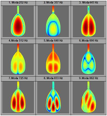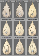 A A A The Sound Characteristics Of The Baglama With Respect To Differ- ent Chest Shapes Sinem Öztürk 1 İstanbul Technical University İTÜ Gümüşsuyu Kampüsü, Makina Fakültesi, 34437, Beyoğlu - İstanbul / Türkiye Filiz Yücel Gürer 2 Ankara Music and Fine Arts University Turan Güneş Bulvarı Yukarı Dikmen Mahallesi, Neşet Ertaş Caddesi, No:4 06550 Oran Çankaya/An- kara/TÜRKİYE Özay Önal 3 Ankara Music and Fine Arts University Turan Güneş Bulvarı Yukarı Dikmen Mahallesi, Neşet Ertaş Caddesi, No:4 06550 Oran Çankaya/An- kara/TÜRKİYE ABSTRACT Baglama is the most common folk string instrument in Turkey. It has a bowl-shaped resonator box called a chest which amplifies the sound. The chest can be constructed in various forms by the luthiers. This study aims to determine the sound characteristics of the baglama associated with dif- ferent chest forms. First, a prototypical baglama was modeled and analyzed numerically with the SolidWorks, HyperMesh and Actran software programs. Operational Deflection Shape (ODS) meas- urements of the baglama were also carried out experimentally. The numerical results were compared with the experimental ones and had an excellent agreement. Using this experimentally validated nu- merical model, the natural frequencies, mode shapes and sound propagation properties of the bag- lama were investigated for chests of different geometries. 1. INTRODUCTION Although there are few publications in the literature on Bağlama acoustics, studies in the national field have gained momentum in the last 20 years. As the baglama is an instrument whose material is wood, it undergoes some deformations over time. One of them is the soundboard collapse. Similar problems exist in instruments such as guitar, oud and violin. The problem was tried to be solved by adding balcony laths to the inside of the soundboard. A similar method has also been tried in baglama to prevent the soundboard from collapsing (Aktaş, 1999; Coşgun, 1991; Demir, 1996). It has been stated that gluing the balcony laths made in different lengths, thicknesses, and heights to different parts of the soundboard positively affects the sound. However, this described effect was not measured 1 ozturksi@itu.edu.tr 2 filizyucel@mgu.edu.tr 3 ozayonal@mgu.edu.tr worm 2022 by any tool and was limited to personal evaluations. It is also unknown whether the soundboard col- lapses over time and thus whether the experiments have worked. The vibrations that occur in the strings of the bağlama are transferred to the soundboard. In oud and guitar, the strings are connected to a piece on the soundboard. However, in the baglama, the strings are connected to the wire plug at the end of the boat. In this part, the wire plug and the lower threshold are together. As a result, different forces and pressures act on the soundboard of the oud and guitar, unlike the baglama. Demir studied a baguette produced according to this setup and com- pared the resulting sounds with another traditional baglama (Demir, 2002). At the end of these com- parisons, based on personal perception, without using any measurement tool, it was stated that the vibration duration of the sounds increased, the loss in high-pitched sounds decreased and the harmon- ics became more pronounced. In another study, a two-piece soundboard is used instead of a one-piece soundboard, balcony laths are added to the simple soundboard, new sound holes are drilled on the soundboard instead of the soundhole at the bottom of the wire insert, and a mechanical auger structure is preferred instead of a wooden auger. Baglama and a cura were produced (Erdis, 2006). This baguette and cura produced were compared with two baglamas and two cura in the classical structure. The sounds obtained from these instruments were compared to sound intensity and resonance times. It was determined that the sound intensity of the new baguette increased, but the expected increase in the resonance times could not be observed. Çiçekçioğlu (2017) made a baglama according to the golden ratio in his study and compared it with another traditional baguette. The sounds obtained from both baglamas were recorded with a sound recording program on the computer and the sound intensity-time graphics were examined. In his study, Akaltan (2017) modeled the body and cover of the guitar using ANSYS software and de- termined the resonance mode shapes of the body and cover with the help of this model. In the guitar, the force applied to the cover and the resulting deformation resulting from connecting the strings to the body at different angles were examined with the help of SOLIDWORKS software. It was deter- mined that the angle with the least buckling effect of the strings was 60°. Resonance mode shapes were determined by modeling the boat and soundboard of the baglama using similar methods. Ac- cording to the results obtained, guitar and baglama were compared. In another study, Alp (2018) investigated the effects of the change in the boat size of the baglama. In this context, it has been ensured that only the hull sizes of the two baglamas produced from the same material with the same thickness and method are different. This study determined that the bag- lama sound board's size changes affect the baglama's acoustics. In this study, a bağlama with a widely preferred body form was constructed using wooden material whose parameters were already decided. After performing required experimental studies on it, the 3D solid model of the baglama was generated. After validation studies of the numerical model, the mode shapes of the baglama were determined by making a modal analysis. Then, keeping all the parameters constant in the baglama model, it was examined how the acoustic properties of baglama changed due to the changes to be made only on the body form. Natural frequencies and mode shapes were exam- ined for those different body forms. 2. NUMERICAL MODEL The solid model of the baglama, which wa