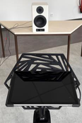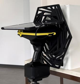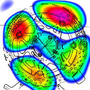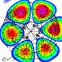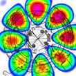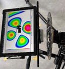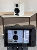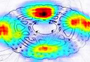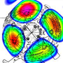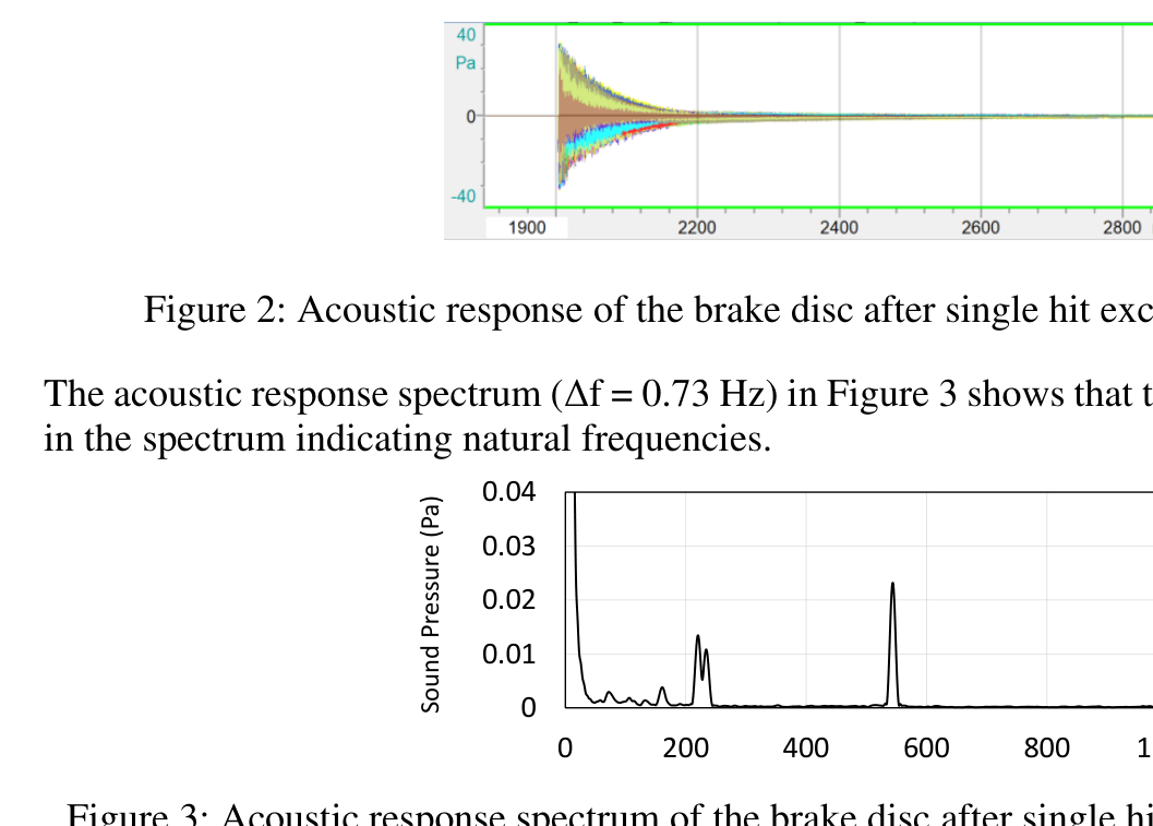 A A A Investigation of potential benefits and functionality of a vibroacoustic camera by combining results of a common beamforming and nearfield holography acoustic camera and a high-speed camera, allowing to vis- ualize structural vibration (optical flow tracking). Johannes Pehe 1 , gfai tech GmbH Volmerstr.3 12489 Berlin Daniel Herfert 2 , Dirk Doebler 3 , Christof Puhle 4 , GFaI e.V. Volmerstr.3 12489 Berlin ABSTRACT In this paper potential benefits and functionality of a vibroacoustic camera are investigated by com- bining results of a common beamforming and nearfield holography acoustic camera using the soft- ware NoiseImage and a high-speed camera, allowing to visualize structural vibration (optical flow tracking) using the software WaveImage. Both results can be used to calculate color maps – mapped parameters are sound pressure, vibration displacement and its derivatives. The authors will investi- gate how the combination of methods might enhance understanding and interpretation of the vi- broacoustic behavior of specimens in the overlapping frequency range. At low frequencies, the beam- forming approach is limited due to main lobe width and array size. The limits for source localization can be offset employing nearfield acoustic holography. It was also previously shown that mode shapes of 2-dimensional structures can be reproduced using nearfield acoustic holography (SO- NAH). The high-speed camera results present a way to provide positions of local vibration maxima and operating deflection shapes without accessing the acoustic nearfield. Accordingly, the approach could be viewed as a potential extension of the frequency range in which meaningful visualization of vibroacoustic data can be achieved from a single far field measurement from 0 Hz to the ultrasound frequency regime. 1 pehe@gfaitech.de 2 herfert@gfai.de 3 doebler@gfai.de 4 puhle@gfai.de worm 2022 1. INTRODUCTION Wherever there is airborne noise it has a root-cause that is either a vibrating surface like chords, speaker membranes or the surface of machinery or due to sudden pressure changes like explosions, lightning or gas relaxation. Any rotating or reciprocating machine or apparatus will therefore radi- ate airborne noise that is mostly adverse. Common methods to localize noise sources include beamforming and acoustic holography. Sound power is typically quantified employing methods to measure sound intensity. In addition, vibration testing is often employed to trouble-shoot issues and perform detailed root-cause analysis. If the vi- bration velocity and size of a surface is known the radiated sound power can be calculated based on the radiation efficiency. This relationship also offers the possibility to predict acoustic radiation based on structural dynamic simulations. A measurement approach that comprehensively allows to qualify noise and vibration properties in a single easy to set up and non-contact measurement would potentially allow to improve understand- ing of the vibroacoustic behavior of complex structures that are harder to control or yet cannot be simulated. It is expected that a vibroacoustic camera will provide complementary insights and a bigger picture of the vibroacoustic behavior and facilitate derivation of manipulation potential. To obtain a general idea of potential benefits and redundancies, two tests will be conducted to compare results of the different measurement approaches, namely an impact test on a brake disc to investigate mode / de- flection shapes as well as a conventional speaker including a tweeter and a woofer. 2. VIBROACOUSTIC ANALYSIS ON A BRAKE DISC 2.1. Test setup A brake disc of a motor bike was rigidly mounted on a tripod (Figure 1, left). Acoustic measurements were taken using a gfai tech Mikado equipped with 96 MEMS microphones sampling with 48 kHz. The array was placed parallel at 8 centimeters from the brake disk as shown in Figure 1 (center). Optical testing was conducted using a Chronos 1.4 low-cost high-speed camera that was placed 1.5 meters to the brake disc at approximately 40° angle (Figure 1, right). The angle is important to ensure that main directions of vibration will be in plane of the recorded image. Aperture, lighting and fram- erate are the main factors to influence measurement quality. In this case 2.8 kfps were used. Results will be compared up to 1200 Hz. To improve contrast the background was covered with white mate- rial. The structure was excited using a handheld impact hammer with a metal tip. As this paper is aiming to investigate a wireless, contactless and quick installation approach, the structural response will be analyzed without consideration of the impact force. The specimen was chosen due to its 2-dimensionality and porous character as well as the reflective surface that complicate setup and constrain the utility for a Laser-Doppler-Vibrometer. worm 2022 worm 2022 Figure 1: Rigidly mounted brake disc (left), Acoustic holography measurement (center), high-speed camera setup (right). 2.2. Results A decay measured with the microphone array is shown in Figure 2. Figure 2: Acoustic response of the brake disc after single hit excitation with a metal tip. The acoustic response spectrum (Δf = 0.73 Hz) in Figure 3 shows that there are four prominent peaks in the spectrum indicating natural frequencies. 0.04 Sound Pressure (Pa) 0.03 0.02 0.01 0 0 200 400 600 800 1000 1200 Figure 3: Acoustic response spectrum of the brake disc after single hit excitation with a metal tip. Hz Using the gfai tech software NoiseImage 4.13.2 acoustic maps were calculated for these narrow bands using the nearfield module. As indicated by Puhle et al [1] the statistically optimzed near-field acoustical holography (SONAH) was giving the best results over the range of investigated frequencies. Results were plotted on a total view image of the brake disc shown in Figure 4. For the investigated frequency range, the found mode shapes are plausible. 220 Hz 235 Hz 560 Hz 1000 
