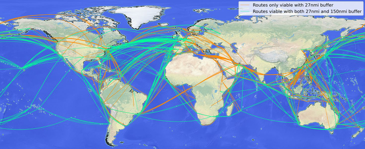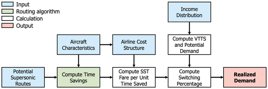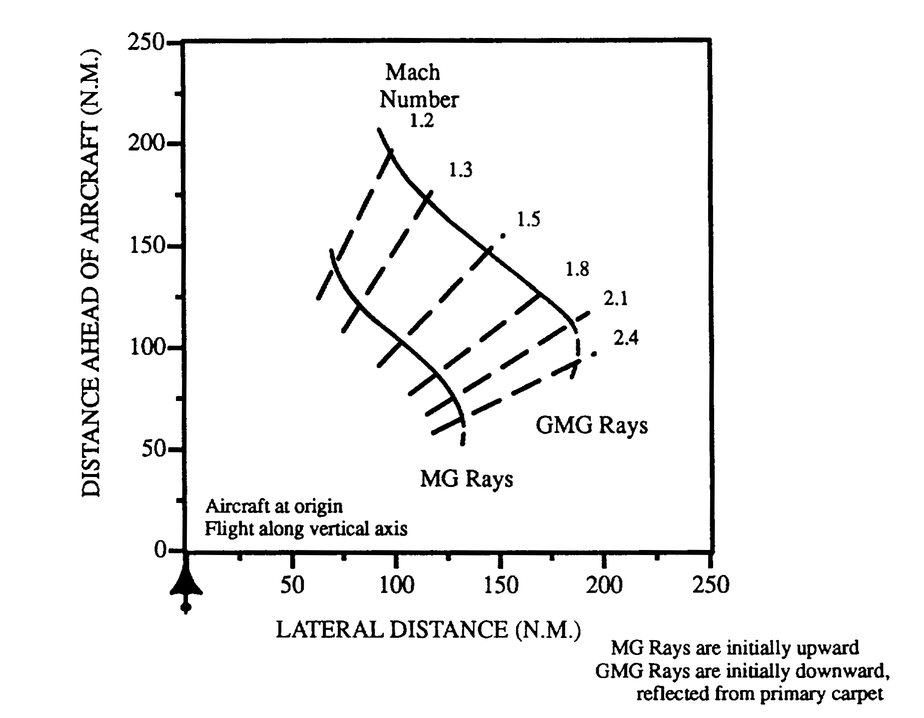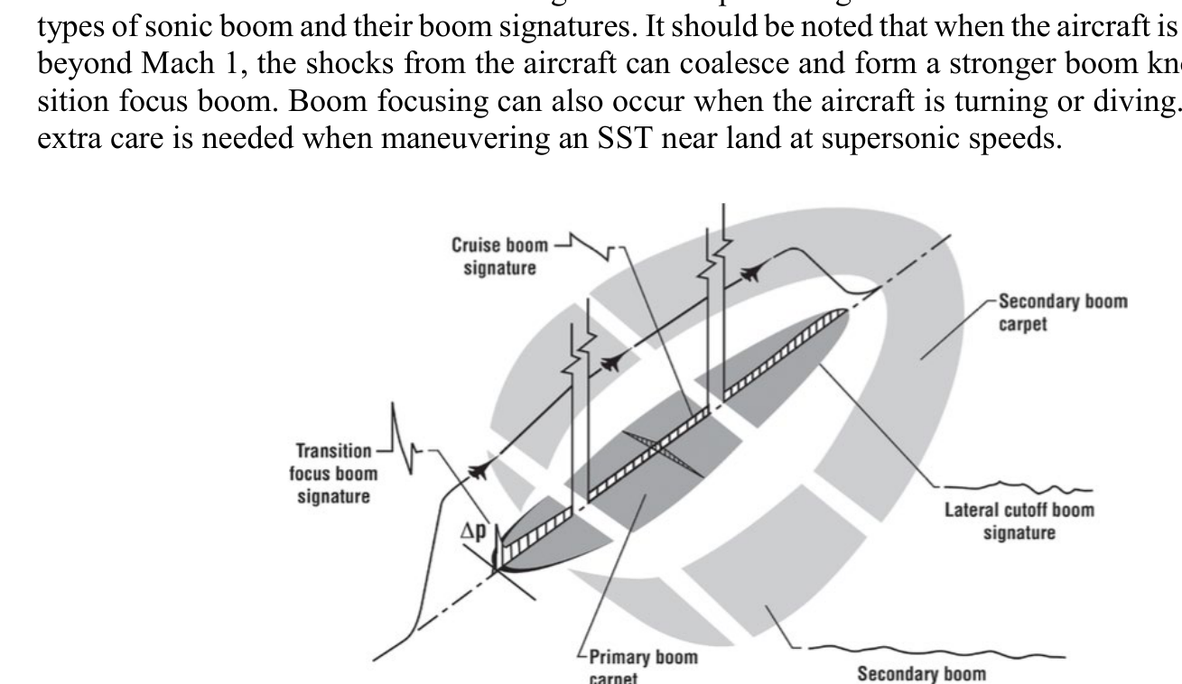 A A A Sonic Boom Over-land Avoidance and the Impact on Economic Feasibility Holger Pfaender 1 Georgia Institute of Technology 270 Ferst Dr Atlanta, GA 30332 United States Jiajie (Terry) Wen 2 Georgia Institute of Technology 270 Ferst Dr Atlanta, GA 30332 United States Dimitri Mavris 3 Georgia Institute of Technology 270 Ferst Dr Atlanta, GA 30332 United States ABSTRACT There has been renewed interest in commercial supersonic air travel in recent years with sev- eral new efforts being pursued by several companies. They currently advertise entry into ser- vice of these new concepts within the next decade. Current regulations do not permit overland operations for supersonic vehicles due to the sonic booms produced during flight. As a result, these vehicles will need to abide by the over land boom restrictions. This study presents a com- prehensive approach to overland-prohibited supersonic flight routing and route-specific de- mand forecasting for commercial supersonic air travel, in order to assess the expected market in 2050. This also includes the need for the seasonally-dependent need to avoid secondary sonic boom exposure of land. 1. INTRODUCTION In recent years, a number of start-up companies have started development on new commercial supersonic transports (SSTs). These aircraft represent a potential second generation of supersonic aircraft, which would not include low boom design such as explored in the experimental X-59. The companies pursuing this type of aircraft design include Boom Supersonic, Exosonic, and others. A key consideration for these supersonic concepts is not only the technical feasibility to meet all requirements, but also economic viability. One important limitation for these aircraft is the essential 1 Holger.pfaender@asdl.gatech.edu 2 twen@gatech.edu 3 dimitri.mavris@aerospace.gatech.edu ‘inter.a 21-24 AUGUST SCOTTISH EVENT CAMPUS ? O? ? GLASGOW complete ban of supersonic booms generated reaching land. This has been a key consideration in exploring the economic viability because if these aircraft, which are designed to fly primarily at su- personic speeds, are forced to spend long parts of actual operations missions flying at subsonic speeds, the time savings can be severely reduced while the operating cost is increased. This study is intended to investigate the impact of different operating scenarios (related to sonic boom ground exposure) on the feasibility and viability of commercial supersonic operations. 2. MODELING AND SIMULATION METHODS Analyzing the feasibility and viability of commercial supersonic flight is a multifaceted problem that requires a wide variety of domain knowledge. It is impossible to cover all the relevant topics in detail, but the following subsections will provide an overview on sonic boom, flight path planning, aircraft mission analysis, aircraft modeling, and demand estimation. 2.1. Sonic Boom Considerations There are many different ways for sonic boom to propagate through the atmosphere and reach land. When the sonic boom disturbance emanating from the aircraft reaches ground directly, the area of contact is known as the primary boom carpet. Primary boom’s signature (overpressure) on ground is usually “N”-shaped, after all the smaller shocks and expansion waves generated by the aircraft coalesce as the disturbance travel through the atmosphere. Figure 1 below is a schematic of the two types of sonic boom and their boom signatures. It should be noted that when the aircraft is accelerating beyond Mach 1, the shocks from the aircraft can coalesce and form a stronger boom known as tran- sition focus boom. Boom focusing can also occur when the aircraft is turning or diving. As a result, extra care is needed when maneuvering an SST near land at supersonic speeds. ‘inter.a 21-24 AUGUST SCOTTISH EVENT CAMPUS ? O? ? GLASGOW Figure 1. Types of sonic booms and their signatures, from [1] Secondary boom’s propagation paths are more complex than those followed by the primary boom’s rays. Both the rays emanating above the aircraft and reflected rays after primary boom’s incidence with ground can bend downward again by means of diffraction, and eventually reach ground at some distance farther away than the primary boom carpet. The secondary booms are not as loud as the primary booms, and they tend to sounds like rumbles instead of bangs. Because of the longer and more complex propagation paths, these secondary booms typically reach ground at over 100 nmi away from the instantaneous aircraft location in which they are generated. Figure 2 shows the maximum extent of the secondary boom’s ground interception, modeled using an arctic tempera- ture profile that is known to favor secondary booms under no-wind conditions. The specific condi- tions under which these secondary booms reach ground is subject to upper stratosphere wind and temperature gradients. The details of this are described in [2] with several follow-on investigations being conducted in the years since. ‘inter.a 21-24 AUGUST SCOTTISH EVENT CAMPUS ? O? ? GLASGOW Figure 2. Maximum extent of secondary boom ground interception, from [2] 2.2. Flight Routing Algorithm Two different types of path planning methods have been successfully implemented by researchers to find the optimal trajectory under some pre-defined criteria. The first is an analytical approach based on optimal control theory, which solves a set of ordinary differential equations (ODEs) that govern the aircraft’s flight heading. Even though this type of method is widely used to calculate wind-optimal subsonic flight trajectories, they have some limitations when analyzing supersonic missions. The pri- mary challenge is that these methods use penalty functions to model less favorable regions (land areas in the case of supersonic flights). However, imposing penalty functions that follow the coastline of the continents could be non-trivial. The second type of algorithm used for flight trajectory optimization is ras
