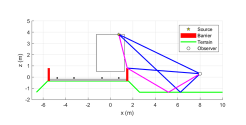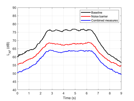 A A A Auralisation of combined mitigation measures in railway pass-by noise Reto Pieren 1 , Fotis Georgiou Empa Swiss Federal Laboratories for Materials Science and Technology, Überlandstrasse 129, 8600 Dübendorf, Switzerland Giacomo Squicciarini, David J. Thompson ISVR University of Southampton, Highfield, Southampton SO171BJ, UK ABSTRACT To reduce noise exposure along railway lines various combinations of noise mitigation measures can be considered. However, predicting and assessing their e ff ects is non-trivial and the potential need for multiple measures is di ffi cult to communicate to stakeholders. Auralisation is a promising tool that can help to support communication and decision-making, and enable psychoacoustic evaluations. This paper presents developments of a physics-based auralisation model for train pass-bys that allows various mitigation measures to be included. The work is conducted within the European research project SILVARSTAR. The proposed model includes contribution from rolling noise, impact noise, traction, auxiliary systems, and aerodynamic noise. It is physically based and allows a direct assessment of pass-by parameters such as speed, roughness, wheel flats and track design. Based on the TWINS model, five structural transfer paths for rolling noise are considered to integrate mitigation measures such as wheel and rail dampers. Shielding by noise barriers is simulated with analytical models. Reflection at di ff erent ground types is considered and can account for track embankments. The results can be coupled to an immersive Virtual Reality environment, by first panning the synthesised sounds to a small virtual speaker array and subsequently dynamic binaural rendering for headphones. 1. INTRODUCTION Auralisation is the acoustical counterpart to visualisation and allows users to audibly experience situations that do not necessarily exist (yet). The term was introduced by Kleiner et al. [1] and it involves rendering an audible sound field emanating from acoustic sources located within a virtual environment. Auralisation has a long tradition in the planning process of concert halls and opera houses [2]. During the past decade, there has been increasing interest in environmental acoustics applications of auralisation. Auralisation provides much more information than noise levels regarding the acoustics and the quality of the sound environment. It can be used to characterise di ff erent acoustical scenarios using psychoacoustic parameters. It can also be combined with visual information, thereby 1 reto.pieren@empa.ch a slaty. inter.noise 21-24 AUGUST SCOTTISH EVENT CAMPUS O ¥, ? GLASGOW USER INPUT Railway track Railway vehicles Mitigation measures Environment Observer SILVARSTAR Auralisation tool SILVARSTAR VR tool 3D model Graphics Animation Emission Propagation Reception Mono Divergence Rolling noise Audio integration User interaction Stereo Doppler effect Traction Ambisonics Ground reflections Equipment Surround Edge diffraction Aerodynamic Calibration Reproduction Air absorption Rail singing OUTPUT: VR EXPERIENCE OUTPUTS INTERFACES TO VISUALISATION Example for coupling Audio data for standard reproduction + calibration Multichannel audio data Sound levels Figure 1: Concept of the SILVARSTAR auralisation and VR simulation. achieving a more thorough evaluation of a virtual environment using current Virtual Reality (VR) technologies. As a communication tool, auralisation can be used in noise control engineering to provide an audible impression of the e ff ect of a future noise mitigation measure instead of demonstrating the reduction graphically or in terms of decibel values. This will allow the relevant parties involved in future developments (public, decision makers, vehicle customers and designers) to have a full immerse experience of the e ff ect of the mitigation measure and obtain much better insight than sound pressure levels or other acoustic quantities, which are di ffi cult to communicate to an audience without an acoustics-related background. Existing operational railway auralisation models lack the possibility to simulate various combinations of di ff erent mitigation measures [3,4]. This paper presents some first developments that are conducted within the European research project SILVARSTAR. They are based on previous work from the authors, combining expertise in railway noise modelling [5] and acoustic VR. Technical objectives of SILVARSTAR are the development of models for realistic physics-based railway auralisation that allow the inclusion of combined mitigation measures. Intuitively understandable demonstrations of railway noise mitigation will be achieved by coupling the auralisation models to 3D visualisations creating an immersive, interactive VR environment. The concept is illustrated in Figure 1. To achieve this, advances in sound synthesis, propagation filtering, and on sound reproduction are required. 2. SYNTHESIS OF TRAIN PASS-BYS In most relevant exposure situations, a train has to be regarded as an extended acoustical source. For the horizontal extension this is due to the train length being comparable or greater than the distance between the track and the observer. Vertical source extension typically becomes relevant in cases where a noise barrier provides shielding to rolling noise, while having little impact on sources on top of the train such as HVACs. The chosen auralisation process thus consists of three modules that separately describe sound emission, sound propagation and sound reproduction. Equivalent sources are distributed in a virtual environment. The sources are attributed to a certain location with a certain orientation. A source signal describes the sound pressure as radiated by each source. Auralisation requires a procedure to generate sound samples. Relying on audio recordings for railway auralisation is rather limited with respect to the representation of di ff erent scenarios and for di ff erent applications. Sample-