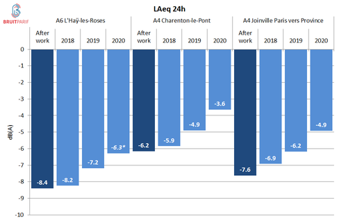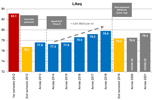 A A A LIFE project Cool & Low Noise Asphalt: monitoring the acoustic per- formance of low noise pavements in the city center of Paris David Bernfeld 1 , Carlos Ribeiro 2 , Fanny Mietlicki 3 Bruitparif 32 boulevard Ornano 93200 Saint-Denis, France, Metropolitan Jérôme Lefèbvre 4 Ville de Paris / LEMVP 15 rue Jean Baptiste Berlier 75013 Paris, France, Metropolitan Giulia Custodi 5 Ville de Paris / DEVE / AEU 103 avenue de France 75013 Paris, France, Metropolitan ABSTRACT In 2012, the City of Paris launched an experiment on a 200 meters section of the Paris ring road to test low noise pavements and their acoustic and mechanical durability over time, in a context of heavy road traffic. Bruitparif maintained a permanent noise measurement station to monitor the acoustic efficiency of the pavement over several years. Follow-ups have recently been implemented by Bruit- parif in the vicinity of dwellings near major road infrastructures crossing the Ile-de-France territory, such as the A4 and A6 motorways. Today, for ring roads and motorways with traffic speed limits of 70 and 90 km/h respectively, the benefits of using low noise pavements is demonstrated. It is now interesting to study the contribution of low noise pavements in downtown areas with speed limits of 50 km/h or less. As part of the European LIFE “Cool & Low Noise Asphalt” project led by the city of Paris, in which Bruitparif is a partner, three innovative asphalt pavement formulas are being test- ed to fight noise pollution and global warming on three heavily exposed Parisian sites. Asphalt mixes combine acoustic, thermal, mechanical properties and durability. This article presents the latest re- sults. 1. INTRODUCTION Reducing noise generated by road traffic in urban areas involves a combination of several actions. Among the possible actions, the laying of low noise pavements appears to be a promising solution to solve the problem at the source. Various evaluations on the subject are carried out in the Ile-de- France, on the Paris ring road and on the A4 and A6 motorways. More recent experimental projects combining acoustic and thermal properties in Paris are also underway. An article on this subject was 1 david.bernfeld@bruitparif.fr.fr 2 carlos.ribeiro@bruitparif.fr 3 fanny.mietlicki@bruitparif.fr 4 jerome.lefebvre@paris.fr 5 giulia.custodi@paris.fr ‘inter.a 21-24 AUGUST SCOTTISH EVENT CAMPUS ? O? ? GLASGOW published in 2021 [1]. This document provides new elements concerning the monitoring of acoustic performance one year later. 2. TEST ON THE PARIS RING ROAD Over the 2010-2011 period, several factors led the City of Paris to test the use of low noise road surfaces on the Paris ring road, in a context of strong constraints linked to the large number of vehicles using this road infrastructure daily (more than 1.2 million vehicles with up to 270,000 vehicles per day in some places). 2.1. Experimental section As early as 2012, the City of Paris and Bruiparif tested this type of solution on part of the Paris ring road in order to assess its relevance and durability over time from an acoustic and mechanical point of view. The portion chosen for the experiment is a 200 m section located at the Porte de Vincennes. This sector benefited from ADEME funding as part of the treatment of noise hot points. From 25 to 29 June 2012, the City of Paris and the Colas Company applied BBTM 0/6 and BBTM 0/4 type of asphalt on the interior and exterior lanes of the ring road respectively instead of the old pavements that were 3 to 30 years old. 2.2. Noise source evaluation method Continuous measurements of tyre/road contact noise according to LCPC method n°63 (CPX) have been regularly programmed by the City of Paris in order to monitor the evaluation of the acoustic performance of each traffic lane. 2.3. Noise evaluation method at residential facades Bruitparif deployed five noise measurement stations to monitor the acoustic efficiency of the products tested. At first station was installed between the lanes (in close proximity to the traffic), three others were installed on the facades of the nearest residential buildings. The fifth station was positioned outside the experimental perimeter of operations as a control station. Real-time access to the results of the noise monitoring system at Porte de Vincennes is available on the Bruitparif data consultation platform via the Bruitparif website: https://rumeur.bruitparif.fr . The results of this experiment have also been published and shared with other examples of good practice on the noise abatement actions database available on the LIFE HARMONICA project internet portal online from the end of 2013 [2]. 2.4. Initial performance: tyre/road contact noise The CPX approach allows to characterize the 8 lanes independently for a differentiated follow-up according to the supported traffic (fast lane 1 and slow lane 4). The sound levels were measured at 70 km/h and corrected to a reference temperature of 20°C. To evaluate the gains obtained between the initial situation and the situation after the laying of acoustic pavements, two measurements cam- paigns were carried out, before (in March 2012) and after in August 2012). Table 1 presents the reductions achieved for each lane since 2012. In 2012, the decrease in sound levels is very important since its varies for BBTM 0/6 from -5.1 dB(A) to -7.8 dB(A) and for BBTM 0/4 from -7.0 dB(A) to -10.1 dB(A). These performances depend to a large extent on the initial conditions of the road sur- faces. Also, for substantially identical initial sound levels, the BBTM 0/4 offers better performance. 2.5. Initial performance: noise at residential facades The first evaluation was carried out three months after the pavement was changed. The noise reduc- tion at the source was on average around - 7.5 dB(A) for the central location results [3]. Such a reduction in noise is quite significant and corresponds to what could be obtained by dividing traffic ‘inter.a 21-24 A