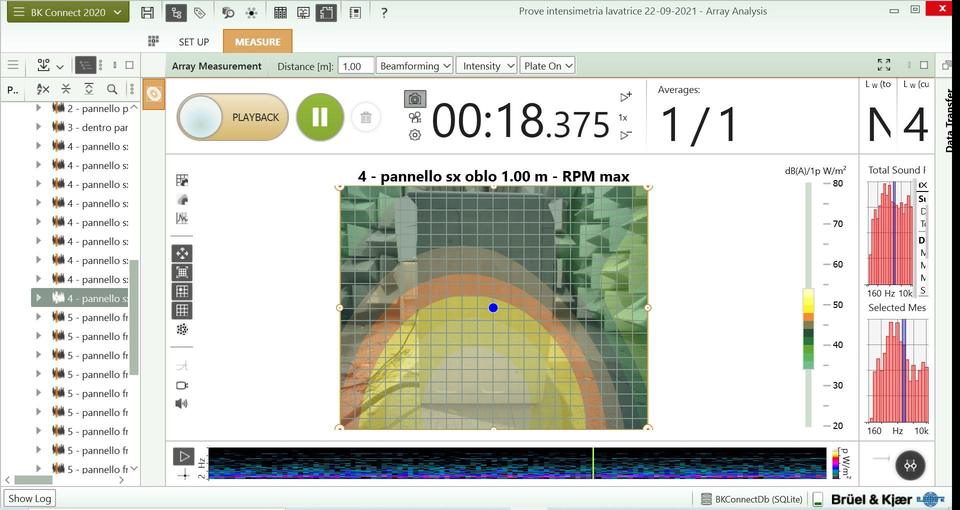 A A A Combined acoustic testing of home appliances: a case study Luca Rapino 1 Politecnico di Milano Department of Mechanical Engineering, Via La Masa 1, Milan 20156, Italy Arianna Cavallo 2 Politecnico di Milano Department of Mechanical Engineering, Via La Masa 1, Milan 20156, Italy Ivano La Paglia 3 Politecnico di Milano Department of Mechanical Engineering, Via La Masa 1, Milan 20156, Italy Francesco Ripamonti 4 Politecnico di Milano Department of Mechanical Engineering, Via La Masa 1, Milan 20156, Italy Roberto Corradi 5 Politecnico di Milano Department of Mechanical Engineering, Via La Masa 1, Milan 20156, Italy Antonio Acri 6 Haier Europe Via Privata Eden Fumagalli, 20861, Brugherio, Italy ABSTRACT To improve the comfort of the domestic environment, the acoustic performances of home appliances need to be optimised. During the product development stages, manufacturers typically carry out acoustic measurements to validate design strategies and to perform troubleshooting. Moreover, sev- eral experimental techniques can be used depending on the target of the analyses. In this paper, the sound field radiated by an operating washing machine is investigated. A combined acoustic testing is carried out by means of a sound intensity probe and a microphone array. The details on the tests execution and the data processing are presented. The experimental results are discussed, providing a synthesis of the two sets of measurements. 1 luca.rapino@ polimi.it 2 arianna.cavallo@mail.polimi.it 3 ivano.lapaglia@polimi.it 4 francesco.ripamonti@ polimi.it 5 roberto.corradi@ polimi.it 6 antonio.acri@haier-europe.com worm 2022 1. INTRODUCTION Acoustic performances are a key aspect for home appliances market. Therefore, manufactur- ers are committed to reducing noise generated by their products and acoustic-oriented design strate- gies are typically adopted during the development of new devices. In this context, vibroacoustic experimental tests are fundamental to perform troubleshooting and supporting the development of washing machines, as testified by the research activities carried out in this field [1,2]. Focusing on acoustic measurements, sound intensity and sound mapping tech- niques are particularly suitable to investigate the influence of components on the radiated noise, as highlighted in previous studies [3,4]. In this work, a combined acoustic testing campaign was carried out by means of a sound intensity probe and a microphone array. The activity aims at the comparison between the two exper- imental approaches in terms of tests’ execution and correlation of the results. 2. EXPERIMENTAL TECHNIQUES In this section, a brief overview of sound intensity probes and the processing of microphone arrays’ signals is provided. In particular, for this study, tests were carried out using a 3D sound in- tensity probe and a microphone array, whose acquisition were processed through Planar Near Field Acoustic Holography (PNAH) and beamforming algorithms. 2.1. Sound intensity probes The most common device to measure sound intensity is the so-called p-p probe. This tool consists of two closely spaced microphones: their signals are processed based on a finite difference approximation to estimate the sound pressure gradient and to evaluate the component of the sound intensity vector that is parallel to the line connecting the two sensors [5-6]. However, the sound intensity is a vectorial quantity, thus three components must be measured to fully describe the amplitude and direction of the sound intensity vector. To this aim, 3D sound intensity probes can be adopted. These devices are based on an arrangement of four or more micro- phones that can be also embedded on a rigid spherical surface. The analytical solution to the acoustic scattering due to a rigid spherical geometry represents the main advantage of the latter configuration; moreover, its effect on the measured signals can be removed in a post-processing stage. Details on the estimation of the sound intensity vector using 3D probes are provided in [7]. 2.2 Planar Near Field Acoustic Holography (PNAH) The Planar Near Field Acoustic Holography is a technique based on near field measurements through a planar array of microphones. Acoustic pressures are evaluated on the array surface and measurements are processed in order to describe the sound field based on propagating and evanescent planar waves, represented by the set of wavenumbers (𝑘 𝑥 , 𝑘 𝑦 , 𝑘 𝑧 ) . From this description, the sound field can be projected onto any other plane parallel to the measurement one through a processing based on Green’s function. Eventually, the sound field is reconstructed on the plane containing the noise source and the results are visualized as 2D colormaps, so that regions with higher sound emis- sions can be located. Further details on this technique are provided in [8]. The PNAH technique is particularly suited for the investigation of the low frequency range since the inclusion of evanescent waves guarantees superior resolutions with respect to other ap- proaches. Conversely, in order to investigate the high frequency range, the beamforming technique worm 2022 provides better results with respect to PNAH, provided that the same number of microphones is con- sidered. 2.3. Beamforming According to the beamforming technique, sound sources are modelled as monopoles and a spherical sound wave propagation model is considered. In this condition, an observer at a distance 𝑟 from the source perceives a signal with a delay equal to 𝑟/𝑐 , being 𝑐 the speed of sound. Thus, con- sidering an array of microphones and an arbitrary sound source, each sensor measurement is affected by a certain time delay. Provided that these are compensated for, then signals reinforce each other and their summation is maximized, that is the principle behind the Delay and Sum (DAS) beamform- ing techniques: in the end, the source location is identified on the plane of the