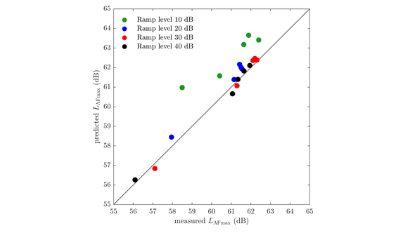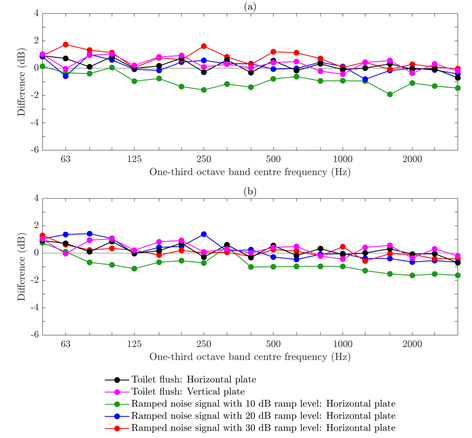A A A Characterisation of time-varying structure-borne sound sources using a reception plate to predict maximum Fast time-weighted levels in heavyweight buildings Steffi Reinhold 1 University of Applied Sciences Stuttgart Stuttgart, 70174, Germany Carl Hopkins 2 Acoustics Research Unit, School of Architecture, University of Liverpool Liverpool, L69 7ZN, United Kingdom ABSTRACT Structure-borne excitation from many mechanical appliances leads to structural vibration in buildings which can be transmitted to nearby rooms. The reception plate method provides a characterisation procedure to obtain the power input for SEA prediction models. Earlier work developed empirical corrections based on the relationship between L eq,125ms and L Fmax to predict sound transmission from time-varying sources in buildings. For this purpose, the reception plate method is used to capture the maximum power input over a short time period. Using different ramped noise signals to represent idealised versions of time-varying signals from machinery allowed empirical corrections to be identified such that L eq,125ms measurements can be used with the reception plate. When using SEA or EN 12354, it is shown that L Fmax in a room can be predicted for a time- varying structure-borne sound source with one-third octave band errors within 3 dB. Similar or better results occurred for the predicted L AFmax that was calculated from one-third octave band L Fmax values. Reception plate measurements were carried out on a sanitary installation using the toilet flush to compare the empirical corrections with those from ramped noise signals. Close agreement indicated that the empirical corrections are also applicable to a real, and more complex, time-varying source. 1. INTRODUCTION Structure-borne sound, which is injected into the building structure by mechanical appliances such as washing machines, boilers, sanitary installation systems, heat pumps, etc., can cause noise nuisance for occupants when transmitted to adjacent rooms. To characterise the steady-state structure-borne sound source, the reception plate method described in EN 15657 [1] can be used to obtain the steady- state power input data. This power can then be used in prediction models based on Statistical Energy Analysis (SEA) to estimate equivalent continuous levels, eq L , according to EN 12354-5 [2]. Since domestic appliances have different operating cycles, they will transmit time-varying structure-borne sound power into the building structure. For this reason, it is common practice in European building 1 steffi.reinhold@hft-stuttgart.de 2 carl.hopkins@liverpool.ac.uk regulations on installation noise (e.g. SIA 181 [3] and VDI 4100 [4]) to set requirements using a maximum Fast time-weighted sound pressure level, Fmax L in frequency bands and/or AFmax L , in the receiving room. In heavyweight buildings, the prediction of Fmax L and AFmax L from heavy impacts can be estimated using Transient SEA (TSEA) [5,6]. Although TSEA could be used for mechanical building appliances or machinery with time-varying operating phases, the model is likely to be too complex to be incorporated into European or International Standards. Hence, a simplified approach that could encourage industry would be to modify an SEA-based model such as that in EN 12354-5. In previous work [7,8], an approach based on an empirical weighting factor was identified that might encourage uptake by industry due to its relative simplicity. An SEA-based prediction model relating to EN 12354-5 was therefore developed to predict Fmax L . As input data from time-varying structure- borne sound sources for SEA predictions, the maximum injected power over a 125 ms period in the form of a maximum short equivalent continuous velocity level, eq,125ms max L (based on the Fast time constant of 125 ms), is measured with the reception plate method described in EN 15657. This paper reviews the approach to the prediction of AFmax L in rooms from energetically summed Fmax L levels in one-third octave bands that has been obtained from predicted eq,125ms max L levels in combination with a single-number empirical correction. To provide evidence of the applicability of the empirical correction to real structure-borne sound sources, a case study is carried out to investigate the empirical link between Fmax L and eq,125ms max L with a time-varying structure-borne sound signal from a sanitary installation on the reception plate. 2. PREDICTION OF L Fmax LEVELS FROM SHORT L eq LEVELS WITH SEA For steady-state sound transmission in buildings, an SEA model of a coupled room-plate system can be used to model energy exchange between a coupled homogenous plate (subsystem 1) and a receiving room (subsystem 2). Considering the power input into the plate (subsystem 1), internal losses and coupling losses between the two subsystems [9,10], the power balance equations for a coupled room-plate system can be written as where in,1 W is the power input applied to the plate (subsystem 1), 11 is the internal loss factor of the plate (subsystem 1), 22 is the internal loss factor of the receiving room due to sound absorption (subsystem 2), 12 and 21 are the coupling losses from the plate (subsystem 1) to the receiving room (subsystem 2) and vice versa. Eq. (1) is solved to give the plate and room energies. The temporal and spatial average mean- square sound pressure, 2 where 2 V is the volume of the receiving room, 0 and 0 c are the density and the speed of sound in air respectively. Experimental work was used to determine the vibrational power input [11], the radiation efficiency, the loss factors of the plate and the receiving room, and the coupling loss factors between the plate and the room [8]. SEA or simplified SEA-based models (e.g. EN 12354-5) for building machinery are mainly used for relatively long steady-state time periods during an operating cycle. The majority of building machinery/equipment runs with cyclic signals ramping up and down; he