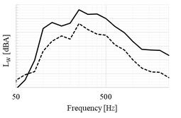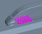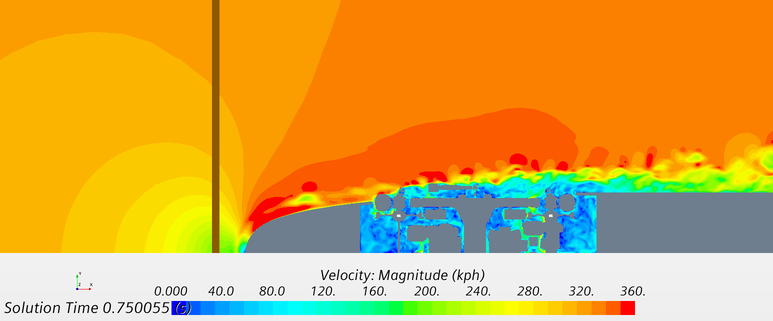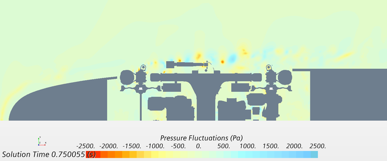 A A A Unsteady FW-H simulation of aerodynamic noise of a high speed train bogie Martin Rissmann 1 , Romain Leneveu Vibratec – Railway Business Unit, 28 Chemin du Petit Bois, 69130 ECULLY Cedex, France Claire Chaufour 2 , Alexandre Clauzet, Fabrice Aubin SNCF Voyageurs – Centre d’ingénierie du matériel, 4, Allée des Gémeaux, 72100 Le Mans, France ABSTRACT Aerodynamic noise is generated by interaction of the air flow with an object and by the turbulent flow itself. In railways it becomes a significant noise source for speeds above 250 kph and major areas of noise generation on trains, in particular high speed trains, are the train head, the leading and second bogie, the pantograph and the gaps between trailers. This paper presents a numerical simulation approach based on CFD/CAA techniques aiming to predict aerodynamic noise of different components of SNCF’s TGV high speed trains. The approach is based on an unsteady DES flow simulation combined with the Ffowcs-Williams and Hawkins (FW-H) analogy for the acoustic part. In order to develop the method different models are implemented and the leading bogie was selected as an application case. A simplified symmetric model will be compared against a full, higher resolved model in order to see if computation time gains are feasible. Results of this simulation, in terms of sound power and directivity, are already used by SNCF noise experts in order to estimate pass-by noise levels of TGV high speed trains at the noise emission point. 1. INTRODUCTION Railway noise is largely dominated by rolling noise. However, above 250 to 300 kph and beyond, the aerodynamic noise becomes a significant additional source, which can even become the dominant noise source. It is characterized by an evolution with speed following 60 to 80 log laws and its tonal and broadband character in the low and mid-frequency range [1]. The noise is generated by interaction of the air flow with the train surfaces and by the turbulent flow itself (turbulent boundary layer, unsteady wake, etc.). It is well known from several publications [2], [3] and [4] that the major aerodynamic noise sources are the train head, the leading and second bogie, the pantograph and the gap between trailers. For SNCF the main goal is to be able to characterize aerodynamic noise sources in order to include them in exterior noise emission predictions at train level (including rolling and equipment noise sources) for typical EMU running at 200 kph and more. Furthermore once the noise emission of the 1 martin.rissmann@vibratec.fr 2 claire.chaufour@sncf.fr whole train is simulated, SNCF is able to define the source term for the CNOSSOS noise assessment method (European parliament directive 2002/49/CE). Determining aerodynamic noise of high speed trains by numerical simulation is documented in several literature sources: [5] studies for example the impact of different streamlined train heads with a LES/FW-H/APE method. The noise of the entire trainset is predicted. [6] considers a simplified ICE3 high-speed train model to study noise generated at the front part of the train. The bogie is however omitted in this study. [7] focuses on the noise generation at the bogie. A simplified, isolated bogie is considered. The presented work is focused on developing a numerical simulation approach based on CFD/CAA techniques aiming to predict aerodynamic noise of different areas of SNCF’s TGV high speed trains. In order to develop the method different models are implemented and the leading bogie was selected as an application case. 2. METHODOLOGY SNCF uses STARCCM+ for different aerodynamic simulations. Therefore in this study, this tool is used for the prediction of the aerodynamic sound power of the leading bogie. The prediction approach is based on an unsteady DES flow simulation combined with the Ffowcs-Williams and Hawkins (FW-H) analogy for far-field acoustic prediction. To ensure a correct implementation of the approach in STARCCM+ the well-known reference case of flow noise around a tandem cylinder was reproduced before modelling the TGV train: Satisfying agreement with the simulated and measured reference case was obtained [8]. 2.1. Setup Figure 1 shows the computation domain with the TGV train’s head: the nose is placed far from the inlet boundary condition such that the flow field develops properly. The bogie geometry is modelled in detail including suspension elements, brake discs, motors and gearboxes. After the first bogie the train’s geometry is simplified by extruding its section up to the outlet boundary condition. Furthermore, a symmetry plane is introduced along the centre axis of the train to save computation time. This hypothesis is acceptable with regard to the objective of the project. A model taking into account the full geometry is currently in work. Figure 1 – Computation domain and boundaries – X = longitudinal, Y = lateral, Z = vertical The mesh, in total 36 million trimmed cells, is gradually refined from 0.56 m towards the bogie area, where a cell size of 17.5 mm is reached, see Figure 2. More details about the mesh parameters and the boundary conditions are given in Table 1 and 2. The chosen mesh resolution allows to solve turbulence up to 500 Hz (local turbulent fluctuations compared to mesh size), respectively 1000 Hz for the acoustic part (at least 20 elements per wavelength). Figure 2 – Computation mesh in a horizontal plane 1.5 m above ground Table 1 – Mesh parameters Parameter Value Domain length (X) 20 m upstream extension + 37.75 m + 40 m downstream extension Domain width (Y) 10 m Domain height (Z) 25 m Boundary layers 6 1 st layer thickness 2e-5 m Boundary layer thickness 4.4 mm Table 2 – Boundary conditions Boundary Value Inlet Velocity inlet 320 km/h Outlet Pressure outlet Ground Wall - no slip Sides Symmetry Y = 0 Symmetry 2.2. FW-H The sound pressure at far-field receivers is predicted using the FW-H acoustic analogy with Farrassat’s Formulation 1A.