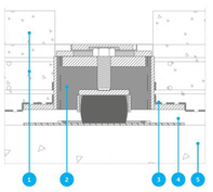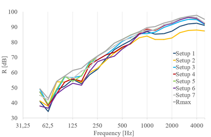 A A A Laboratory measurements on replaceable jack-up systems Marina Rodrigues 1 CDM Stravitec nv Reutenbeek 9-11 3090 Overijse Belgium Reinhilde Lanoye 2 CDM Stravitec nv Reutenbeek 9-11 3090 Overijse Belgium ABSTRACT Floating floor systems are part of state-of-the-art modern building technology. They are an efficient option to improve the acoustical performance of buildings and can be part of box-in-box systems installed in high-performance spaces. There are many types of high-performance floating floor types, one of which is a jack-up system that guarantees that the floor is decoupled from the structural floor. With these systems, once the concrete has cured, the isolated slab is raised off the structure to the required void depth using pre-cast boxes. These boxes allow for easy adjustment of the final floor height and, if the use of the room or load conditions change in the future, can also allow the replace- ment of the isolators inside them. Replaceable and inspectable acoustical floor systems are perceived as systems with lower sound in- sulation (airborne noise) than traditional floating floor or non-replaceable jack-up systems. To measure airborne sound reduction and impact noise isolation of replaceable jack-up systems and confirm factors that can influence its performance, CDM Stravitec invested in a testing campaign, where measurements were made considering many variables, such as: concrete floating slab thick- ness; bearings type, air void depth, steel lid installed on top of each box and insulation material installed in the air void. This paper will present the findings of the test campaign. 1. INTRODUCTION A floating floor system can have three functions, or a combination thereof: airborne nose isolation, vibration isolation and impact noise isolation. 1 m.rodrigues@cdm-stravitec.com 2 r.lanoye@cdm-stravitec.com worm 2022 Stravifloor is the brand that represents CDM Stravitec product line of high-performance floating floors and Stravifloor Jackup-R is a jack-up floating floor system with reinforced steel boxes cast into concrete. Jack-up floating floor systems guarantee that the floor is decoupled from the structural floor (reducing the risk of acoustic bridging between the floating floor slab and the structural floor). With these systems, once the concrete has cured, the isolated slab is raised off the structure to the required void depth. Stravifloor Jackup-R boxes allow for easy adjustment of the final floor height as well as replacement of isolators, should the use of the room or load conditions change in the future. The isolators remain accessible and replaceable even after installation and concrete pour, allowing future inspection. However, replaceable and inspectable acoustical floor systems are perceived by the market as systems with lower sound insulation (airborne noise) than traditional floating floor or non- replaceable jack-up systems. To measure the acoustical performance (airborne sound reduction and impact noise isolation) of Stravifloor Jackup-R systems and define and confirm the parameters that can influence its perfor- mance, CDM Stravitec performed a test campaign (done on Belgian Building Research Institute, in- stitution recognized by application of the decree-law of the 30th of January 1947) that is described in this article. In this testing campaign, measurements were made considering the following variables: • Concrete floating slab thickness: 100 mm (4’’) and 150 mm (6’’) • With and without live load simulation • Bearings: natural rubber pads and springs • Air void depth • 50 mm (2”) steel lid installed on top of each box • With and without insulation material installed in the air void 2. TEST METHODOLOGY 2.1. Impact Sound Insulation of Floors Tests were carried out according NBN EN ISO 10140 Acoustics – Measurement of sound insulation in buildings and of building elements (ISO 10140-1:2021; ISO 10140-3:2021 and ISO 10140-5:2021) and NBN EN ISO 717-2:2021 Acoustics - Rating of sound insulation in buildings and of building elements (ISO 717-2:2020). Measurements were taken from 50 to 5000Hz and 100 to 3150Hz was the frequency range for rating in accordance with EN ISO 717-2. Test were carried out on the bare slab, a reinforced concrete slab of uniform thickness 140 mm (5.5”) over a surface of 260 cm x 442 cm (8.5-ft x 5.4-ft), with 210 mm (8-17/64’’) high elevated borders that simulate the surrounding walls of an actual floor slab. The test element was mounted according to the NBN EN ISO 10140-3, in a similar manner to the actual construction and tests were carried out on each system described on section 3. Limits of test chambers, due to flanking noise transmission, were measured and registered (L n,min ), being shown on section 4. The single-number values (given by the index “w”) and spectrum adaptation terms are described in the standard EN ISO 717-2:2020. As the standards ASTM E492 - 09 and the EN ISO 10140-3 give similar procedures for the measure- ment and determination of the normalised impact sound pressure level L n , the impact insulation class IIC was calculated based on the measured values from 100 Hz to 3150 Hz, rounded to the nearest decibel, according to the ASTM E989 - 21 procedures. worm 2022 2.2. Airborne Sound Insulation of Floors Tests were carried out according NBN EN ISO 10140:2021 Acoustics - Measurement of sound insu- lation in buildings and of building elements (ISO 10140-1:2021 and ISO 10140-2:2021) and NBN EN ISO 717-1:2021 Acoustics - Rating of sound insulation in buildings and of building elements (ISO 717-1:2020). Measurements were taken from 50 to 5000Hz and 100 to 3150Hz was the frequency range for rating in accordance with EN ISO 717-1. Test were carried out on the bare slab with the size and characteristics and test elements mounted as described in the previous section. Limits of test chambers, due to flanking noise transmission, were measured and registered (R max ), being shown in