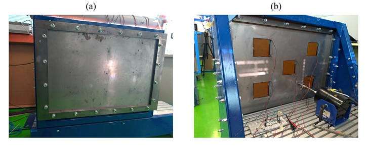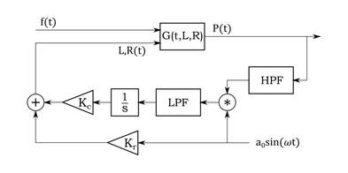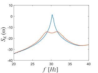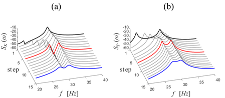 A A A Self-tuning vibration control using piezoelectric patches and RL shunts set to maximise electric power absorption Gabriel Konda Rodirgues 1 , Paolo Gardonio, Loris Dal Bo, Emanuele Turco DPIA, Università di Udine Via delle Scienze 206, 33100 Udine, (I) ABSTRACT This paper presents experimental results on the flexural vibration response of a thin plate structure subjected to a stochastic disturbance. The plate is equipped with five piezoelectric patches connected to shunt circuitry with an online tuning to reduce the resonant response of a target flexural mode. The shunts are digitally synthesized mimicking a resistor-inductor connected in parallel. Firstly, the study assesses the vibration control effects produced by the shunts, contrasting the time-averaged flexural kinetic energy of the panel and the time-averaged electric power absorbed by the shunts filtered in a narrow band centred on the resonance frequency of the target mode. This analysis shows that both cost functions results on the same optimal tuning parameters, which provides a benchmark for the vibration control performance. Next, it proceeds to investigate the online tuning of the resistive and inductive components of the shunt by implementing an extremum seeking algorithm set to maximise the time-averaged electric power absorbed locally by the shunt filtered in a narrow band centred on the resonance frequency of a target mode. The study shows that indeed the resistive and inductive components in the shunts connected to the five patches converges to the optimal values with the application of extremum seeking algorithm and this leads to a minimisation of the flexural response vibration at the resonance frequency of the target mode by 16 dB. 1. INTRODUCTION Noise transmission through lightweight thin panel structures is a relevant problem for civil transportation vehicles [1-3]. To achieve higher efficiency standards, companies and industries have migrated towards a strategy of saving resources on the fabrication and reducing the mass of vehicles, which results in lower fuel consumption and smaller ecological footprint on their production and low operation costs. Therefore, during the past three decades, there has been a steady move towards new designs of aircraft fuselage, automobile bodywork, railway carriage, etc., which increasingly incorporate lightweight and stiff thin panels, often made of low-cost materials, which created two issues. First, it tends to shift towards lower frequencies the coincidence between the interior acoustic waves and the panel flexural waves [4]. Second, it also extends the low frequency range over which the flexural vibration of the panel is characterised by low modal overlap and thus distinct lightly damped resonances [4-6]. These two concurrent phenomena result in a significant increment of the structure-borne and air-borne noise transmission through the panel structures, which could be tackled by classical vibration and sound insulation treatments solely at the cost of substantial weight penalties 1 kondarodrigues.gabriel@spes.uniud.it [7,8]. In particular, the resonant response and sound radiation of low order flexural modes of thin stiff structures can be effectively controlled by tuned vibration absorbers [8-11]. However, these are rather bulky mass-spring-damper devices, which, moreover, require fine-tuning to the resonance of the target mode, and thus require semi-active systems, to track changes in the structural response [12- 15]. In this respect, an electro-mechanical solution is suitable for implementation. The solution, which is adopted in this study, relies on a piezoelectric patch transducer connected to a resistive-inductive shunt circuit. In this case, the resistive-inductive effects of the shunt combined with the capacitive effect of the piezoelectric element to generate via the piezoelectric transduction a combined inertia- stiffness-damping action on the hosting mechanical system, which can be used to produce a piezoelectric vibration absorption effect [16-20]. This arrangement can be operated with self-tuning algorithms, which vary online the resistive and inductive components of the shunt in such a way as the fundamental natural frequency and damping ratio of the resulting piezoelectric vibration absorber are continuously adapted to changes of the dynamic response of the hosting structure [21-25]. This paper presents a simulation and experimental study on the self-tuning tuning of a vibration absorber formed by piezoelectric patches connected to a digital shunt [26] mimicking a resistor and inductor connected in parallel (RL-shunt), which is set to maximise the time-averaged electric power absorption by the shunt to reduce low-frequency flexural modes on a thin-panel under stationary stochastic disturbances. Firstly, Section 2 presents the laboratory plate structure studied in this paper, which is equipped with five piezoelectric patches connected to the proposed self-tuning RL-shunts implemented in a digital board. Then, it briefly describes the mathematical model used to produce the simulation analyses. Next, Section 3 presents simulation and experimental results that contrast the online implementation of the proposed extremum seeking gradient search tuning algorithm set to maximise the time-averaged electric power absorbed by the shunt. Finally, Section 4 summarises the principal conclusions of the study. 2. FORMULATION AND EXPERIMENTAL SETUP Figure 1 shows the test rig used for this study, which is composed by a thin rectangular panel of steel equipped with five thin square MFC piezoelectric patches [27] bonded on one side of the panel. The patches are connected via ad hoc interface circuits to a multi-channel dSPACE digital board, which has been used for the online implementation of the self-tuning RL-shunts. The panel is fixed to a rigid frame and is excited by a transverse point force exerted by a shaker via a stinger equipped with a force sensor. The dSPACE b