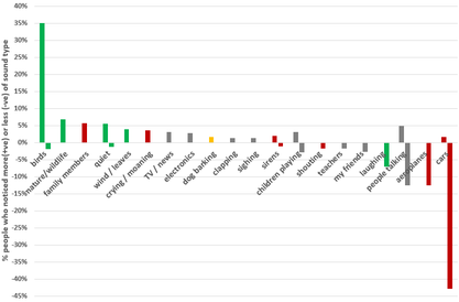 A A A Citizen Science and Soundscape Perception during COVID restriction in the UK Jim Smith 1 Sustainable Acoustics Ltd., UK Unit 1, The Rural Business Hub, Gander Down Barns, Rodfield Lane, Ovington, SO24 0HS, UK Peter Rogers 2 Sustainable Acoustics Ltd., UK Unit 1, The Rural Business Hub, Gander Down Barns, Rodfield Lane, Ovington, SO24 0HS, UK ABSTRACT Winchester Science Centre in Southern England hosts a significant number of informative exhibits pertaining to principles of acoustics; one such example being on the subject of euphony, which seeks to collect evidence from the visiting public by asking questions about their sound environment. In a period of time between the first and third COVID lockdowns, visitors to this exhibit were asked what sounds they noticed more or less of, and what their favourite and least favourite sounds were during this period. The results are shared with two-fold benefit: to assist the public perception of noise and euphony, and to capture the aural response of the public to the 2020 COVID restrictions. This paper explores these results, but also the potential for conducting research from a larger cohort of visitors using a citizen science approach to deliver big data sets, to further explore the perception of sound in the environment with regard to its context. 1. INTRODUCTION COVID-19 (SARS-CoV-2) was officially declared a pandemic by The World Health Organization (WHO) on 11 March 2020 i . In the UK, A national “lockdown” was introduced on 23 March 2020, replaced in May by specific regional restrictions; additional nationwide lockdowns were introduced in the autumn and winters of 2020 in response to a surge in cases. During these times, where many commercial and transport areas were temporarily shut or partially suspended, the public were also advised/ordered to stay at home where possible. The intention of this regime was, of course, to protect the public from the virus and accelerate its passing, however, there were significant secondary effects; two of which are explored in this paper: the actual change in noise levels generated in the UK, and the perception of sound and soundscape in the UK. “The Quiet Project” was created in association with the Institute of Acoustics, Association of Noise Consultants and the UK Acoustics Network, with the primary aim is to record environmental sound levels and observations across the UK during the lockdown and to repeat these observations at fixed 1 jsmith@sustainableacoustics.co.uk 2 progers@sustainableacoustics.co.uk milestones as the UK recovers, and illustrate the impact of lockdown on the external sound environment. The Natural History Museum has worked with the Quiet Project to provide a piece on this, in which they say “People in cities across the world felt as though the birds were singing louder. In fact, with competing urban noise down by five decibels (60% quieter), the birds were probably actually singing quieter. And this is good news ii .” One such study from The National history Museum depicts the grand scale of the change in noise using the metric of ground acceleration: Figure 1 : Change in ground vibrations in the earth during lockdown at different seismic sensor locations for the first three weeks of lockdown. Data collected by British Geological Survey for National History Museum Winchester Science Centre is a hands-on, interactive, science and technology centre located just outside the city of Winchester in Hampshire. In the second half of 2020, The Winchester Science Centre & Planetarium was open for business, albeit with COVID restriction in place. As part of their recently improved exhibits, there is a significant section dedicated to sound and vibration. A short questionnaire in the form of luggage tags was made available to patrons visiting this major area, which provided four open-ended questions: • What sounds did you notice more of during the lockdown? • What sounds did you notice less of during the lockdown? • What are your favourite sounds? • What are your least favourite sounds? This paper intends to explore the results and the potential links between objective changes in the environment and subjective response to its soundscape and also explore whether a proper approach in the collection of such data could be useful in design or curation of a soundscape. This presents an opportunity to communicate the benefits to the public of soundscape designing, to improve their environments. 2. TERMINOLOGY Soundscape - this paper adopts the definition presented in ISO 12913-1 iii as “The acoustic environment as perceived or experienced and/or understood by people, in context iv ” Anthropic is of or pertaining to mankind or humans, or the period of humanity's existence while anthropogenic is pertaining to the origin of man, or anthropogeny. 20% 70 60 50 40 30 20 0 O% 0 120 130 HO 150 160 170 som +” ‘di cena bn itbcation’s Geneciacl nccalentices nas’ Noise – generally understood to be described as unwanted sound, or a particular part of the soundscape as described Euphony – derived from the Greek, meaning “pleasing to the ear”. In this context, “euphonic” is used to describe particular sounds with positive connotations. Whilst “noise” is commonly referred to as unwanted sound, no commonly used word is used for pleasant sound – but it is apparent to everyone that such a concept exists. “ Euphony ” is one example of such a word and may, one day, be used in greater circulation ( Rogers 2019) v . Applying this a euphonic soundscape would be one that is pleasing to the perception of the listener, within its context. Wellbeing is defined as part of health by the WHO in its constitution as “a state of complete physical, mental and social well-being and not merely the absence of disease or infirmity” vi Tranquillity – the concept extends beyond aural stimulus, and is not straightforward to define. It is explored in “The importance of auditor