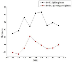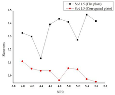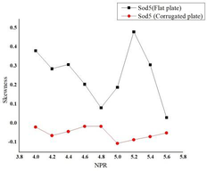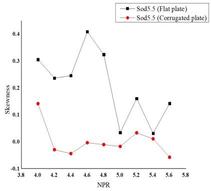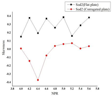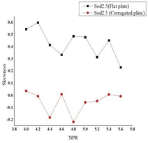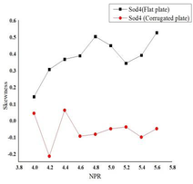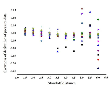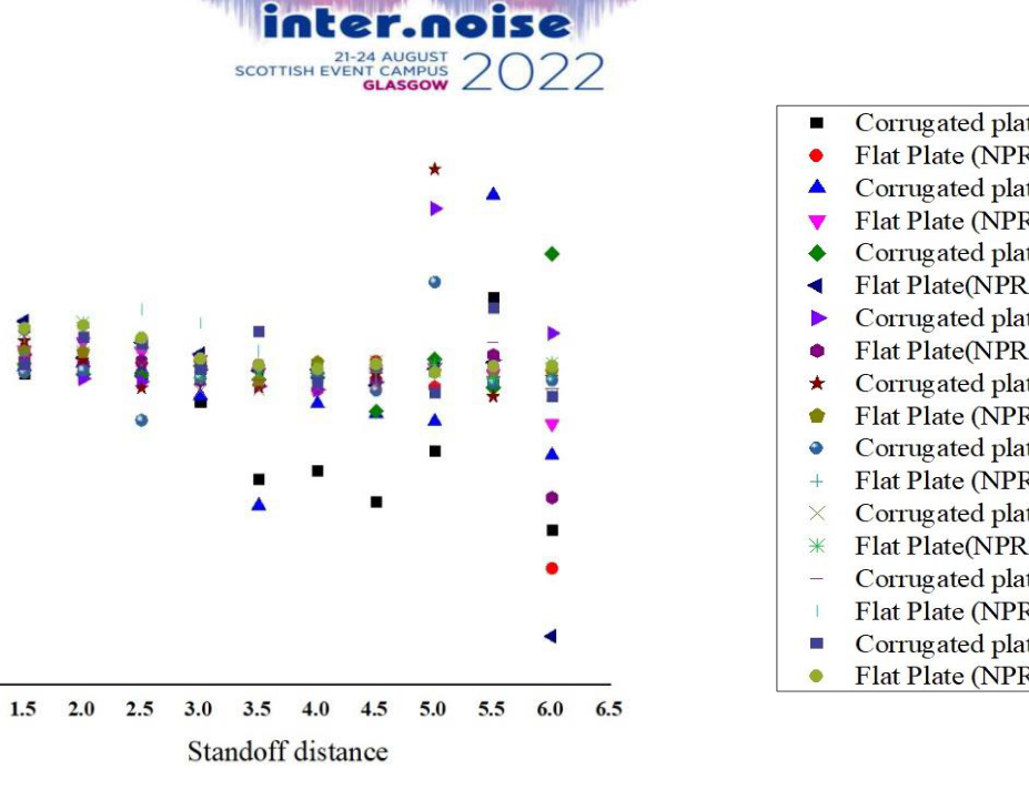 A A A The effect of corrugation on the crackle noise in underexpanded impinging jets Debivarati Sarangi 1 TDCE Lab Department of Mechanical Engineering IIT Madras R Karthik 2 TDCE Lab Department of Mechanical Engineering IIT Madras K Srinivasan 3 Professor TDCE Lab Department of Mechanical Engineering IIT Madras ABSTRACT The present study investigates crackle noise of the impinging jet over the flat and corrugated plate. The experiments are conducted using a 10 mm diameter (d) orifice for jet production. The standoff distance is varied from 1.5d to 6d, incrementing 0.5d. The nozzle pressure ratio (NPR) is varied from 4 to 5.6 with a step size of 0.2. Results are discussed by plotting the probability density function of normalized pressure data and its derivative and the measured skewness values. For the flat plate, the positive skewed pressure data associated with strong compression and expansion is observed for all NPRs, and the skewness value fluctuates with the change in NPR. The crackle noise is absent in the corrugated plate for most NPRs and standoff distances, although it is observed within a short duration at some NPRs. In contrast, the crackle noise is persistent for the flat plate throughout the time range and is observed even the skewness of the normalized acoustic pressure exceeds the skewness of the derivative of acoustic pressure data. 1 debi.sarangi53@gmail.com 2 ME19D026@smail.iitm.ac.in 3 ksri@iitm.ac.in 1. INTRODUCTION Crackle is present in the form of a wave of intermittent sharp compression followed by gradual expansion. The presence of crackle can be measured from the skewness value. The skewness value less than 0.3 is crackle-free for the jet [1]. In heated supersonic jets, the coalesce of Mach waves causes steepening of wavefronts in the near field, which exceeds a certain level produces crackle noise [2]. The design and underexpanded rectangular supersonic jet produces crackle noise when skewness value exceeds 0.4 and the propagation direction of peak skewness corresponds to the peak jet noise direction [3]. Waveforms with positive pressure skewness radiate in the upstream direction and the skewness of the time derivative of the pressure waveforms increases significantly with range, which indicates the formation of shocks during propagation [4]. Crackle is observed in the form of strong positive pressure impulses associated with N-shaped waveforms involving a shock like compression. Unlike broadband shock-associated noise which dominates at upstream angles, crackle noise dominates at downstream direction. There has been some debate about the mechanism by which N-shaped waves are generated. These waves are generated either directly by the supersonic jet itself, or they may be a result of nonlinear acoustic propagation. High-amplitude acoustic waves are subject to nonlinear propagation effects leading to wave steepening or wave-coalescence, which might at first seem to explain shock- like compressions associated with crackle [5]. According to Joseph et. al. the N-shaped waves are directly generated by the supersonic jet itself [6]. 2. EXPERIMENTAL SETUP Experiments are conducted for the flat plate and corrugated plate with pitch 63 mm by varying the standoff distance from 1.5d to 6d and nozzle pressure ratio from 4 to 6. The experiments are conducted in an anechoic chamber of size 2.5 m x 2 m x 2 m, as shown in Figure 1 (a). The chamber walls, roof, and door are made of plywood. The inner surfaces of the anechoic chamber are fixed with square pyramidal polyurethane foam wedges to create an acoustic free field. An orifice of 10 mm diameter is used to supply high-speed air for impingement. The impinging plates are made up of Aluminum and have a dimension of 315 x 315 mm as shown in Figure 1 (b). The acoustic data are measured using ¼- in. microphone (PCB 378C01), which is placed at a distance 50 d above the orifice center. The microphone is calibrated using a B&K piston phone type 4228 calibrator at 250 Hz and 124 dB. The sensitivity of the microphone used is 1.55 mV/Pa. The Nyquist criterion is satisfied by passing the signal through a low pass filter by maintaining the cut-off frequency as 70 kHz. The acoustic signals are acquired using the National Instruments data acquisition board (NI-PCI-6143). The settling chamber pressure is continuously monitored using a piezo-resistive pressure transducer (Endevco Model 8510C-100). The settling chamber pressure is monitored using a piezo-resistive transducer with an uncertainty of ±0.2% of full scale. The anechoic chamber environment temperature and relative humidity is almost constant during all the experiments. The reference sound pressure is 20 µPa. 3. RESULTS & DISCUSSIONS The skewness of pressure data is plotted in Figure 2. The negative skewness value is observed for most of the NPRs and standoff distances for the corrugated plate. For the flat plate, positive skewness is observed for all cases. For the flat plate at standoff distance 1.5 the skewness value exceeds 0.4 for NPR 4.8, 5, 5.4 and 5.6. At standoff distance 2 the skewness value lies below 0.4. At standoff distance 2.5 the skewness value exceeds 0.4 for NPR 4, 4.2, 4.4, 4.8, 5, 5.4. At standoff distance 3 the skewness value exceeds 0.4 at NPR 4, 4.2, 5. At standoff distance 3.5 the skewness value rises above 0.4 for NPR 4.8 and 5. At standoff distance 4 the skewness value exceeds 0.4 for NPR 4.8, 5, 5.6. At standoff distance 4.5 the skewness value exceeds 0.4 for NPR 4.8, 5.6. At standoff distance 5, 5.5 and 6 the skewness value falls below 0.4 for all NPRs. The skewness of derivative of pressure data is calculated further to analyze the presence of crackle noise as shown in Figure 3. The skewness of derivative of pressure data reduces significantly for the flat plate. The derivative of pressure data shows negative skewness for both the flat plate as well as the corrugated plate for most of the NPRs. (a) (b) (c) 1-Compressed air inlet, 2-Moisture remover, 