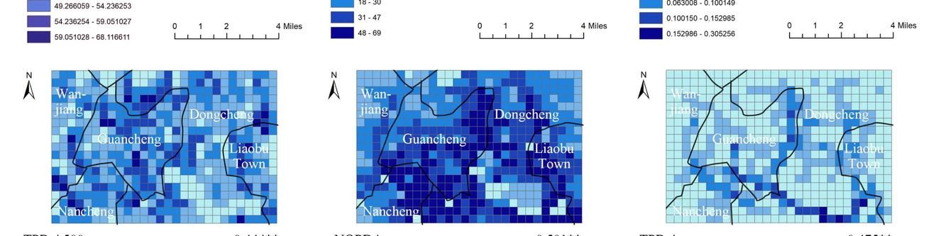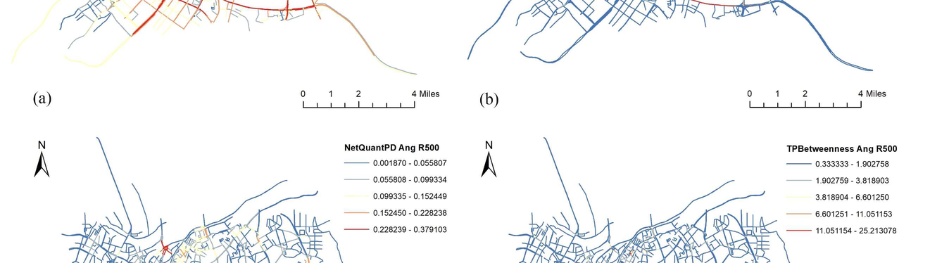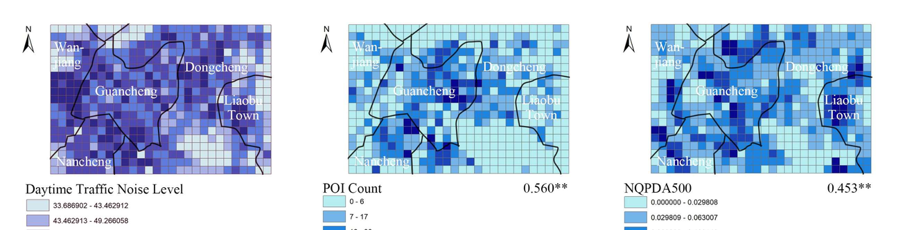 A A A A traffic big data analysis on relationships between urban planning and traffic noise level——taking Dongguan Demonstration Area, China as an example Jiaxun, Song 1 Key Laboratory of Cold Region Urban and Rural Human Settlement Environment Science and Tech- nology, Ministry of Industry and Information Technology, School of Architecture, Harbin Institute of Technology, Harbin 150001 66 West Dazhi Street, Nan Gang District, Harbin, China Qi, Meng 2 Key Laboratory of Cold Region Urban and Rural Human Settlement Environment Science and Tech- nology, Ministry of Industry and Information Technology, School of Architecture, Harbin Institute of Technology, Harbin 150001 66 West Dazhi Street, Nan Gang District, Harbin, China Mary, Nwankwo 3 Key Laboratory of Cold Region Urban and Rural Human Settlement Environment Science and Tech- nology, Ministry of Industry and Information Technology, School of Architecture, Harbin In-stitute of Technology, Harbin 150001 66 West Dazhi Street, Nan Gang District, Harbin, China Jian, Kang 4 UCL Institute for Environmental Design and Engineering, University College London (UCL), London WC1H 0NN, UK in Tay, "inter aGice ‘AUGUST SCOTTISH EVENT CAMPUS 202? GLASGOW ABSTRACT With the promotion of smart city research, traffic big data has become a new way to study urban traffic noise. Taking Dongguan Demonstration Area, China as an example, this research discussed the relationships between traffic noise levels and urban plannings using Geographic information system (GIS), global positioning system (GPS) techniques and OpenITS Organization OpenData. The results showed that, for the whole area, some planning factors, say global integration, local integra- tion (R=500m), global betweenness, local betweenness (R=500m) and number of points of interest (POIs) had significant positive correlations with the daytime traffic noise levels. Among them, the number of POIs had the strongest correlation with the traffic noise levels (r=0.560 p<0.01). How- ever, the degree of influence of each variable on traffic noise levels can be changed with geographical 1 21S034041@stu.hit.edu.cn 2 mengq@hit.edu.cn (corresponding author) 3 blessedmaryc@gmail.com 4 j.kang@ucl.ac.uk locations. This research also identified specific areas where traffic noise levels were negatively cor- related with local integration, which had great potential to provide a recreational and peaceful place for people to walk. Therefore, traffic noise can be effectively controlled by making changes in urban planning. Keywords: Big data; Traffic noise level; Urban planning 1. INTRODUCTION Traffic big data has been widely applied to smart city construction due to its enormous potentials for long-term city planning, such as the planning of public transportation and parking spaces [1] . For example, studies have found that, in terms of traffic conditions, traffic big data can be used to predict traffic congestion using machine learning. Aristeidis and Christos demonstrated that data quality and size were the most critical factors towards algorithmic accuracy and decision trees were more accurate than logistic regression in the prediction of traffic congestion [2] . In addition, studies also discussed big data applications in the aspects of traffic flow research and jam real-time evaluation [3] . Further- more, applying big data and machine learning analysis was able to forecast the real time traffic accu- rately [4] . For the traffic management aspect, a framework was proposed for visual big data analytics for automatic detection of bike-riders without helmets in city traffic [5] . Sustainable management could proceed by overseeing or redirecting traffic along different, less blocked routes to lessen carbon outflows in a specific territory [6] . Besides, traffic big data was applied to smart parking which could provide government managers with effective, accurate, and real-time data support, thereby improving the efficiency of managers' planning and management of parking lots [7] . However, most research fo- cuses on the mobility management level, which ignores the ability of traffic big data to improve the acoustic environment. The term “urban planning” has extensive meanings, referring to urban morphological factors, net- work structure, land use type et al. The relationships between the acoustic environment and urban planning have been proven. Research indicated that there were significant correlations among the spatiotemporal patterns in soundscape, acoustic and urban morphological factors that represented buildings, roads, open public space, and water feature components [8] . Moreover, a recent study has shown that regional road network structure, land use type, urban built-up area morphology, and street block morphology can affect noise-induced health problems [9] . Space syntax, which is a method of quantifying road network structure, shows its capacity for big data technique. Furthermore, integra- tion and betweenness, which were widely used in existing research, are important concepts in space syntax. Integration represents the accessibility within a network and determines whether pedestrians can travel to a given space quickly. Betweenness measures the probability that a spatial element is located along the shortest path between any two elements in the system [10] . Some research has dis- cussed their influence on the urban sound environment. For instance, Nabil and Sara found an obvious indication of a link between the noise level and the spatial configuration (integration and choice) of the street network. Although the correlation was not highly significant, the outcomes might still shed light on the type of relationship between noise and places [11] . Another study suggested that space syntax might have a potential for predicting traffic noise exposure by improving models for noise simulations using specialized software or actual traffic counts [12] . It can be seen that integration, betweenness a
