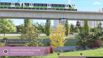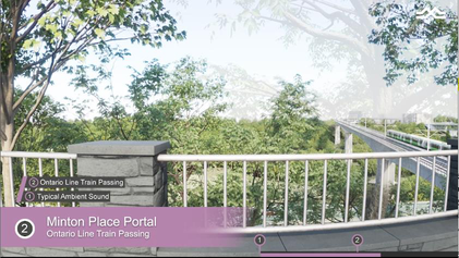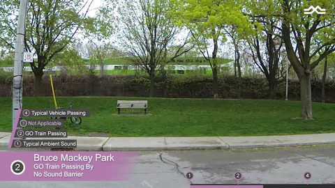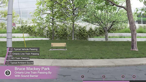 A A A An example of a digital engagement platform for large scale commu- nity engagement using auralization. Alex Southern 1 AECOM Ltd 120 Bothwell Street, Glasgow, G2 7JS, UK Brian Bulnes 2 & Alan Oldfield 3 AECOM Ltd 5090 Explorer Drive, Suite 1000, Mississauga, ON, L4W 4X6, Canada ABSTRACT The global COVID-19 pandemic has resulted in social distance restrictions that have limited the ability for transport authorities to undertake in-person community engagement activities and consult on proposed local infrastructure developments. Potential increases in noise levels or change in acoustic environment can often be a key concern for residents living close to a proposed development. This paper documents the approach taken to engage with local stakeholders regarding a proposed new light rail metro line in Toronto, Ontario, Canada, using an innovative online web-based aurali- zation tool. The tool allows the existing trains and planned new metro trains to be compared inter- actively in an environmental context and with and without acoustic mitigation interventions. The paper discusses the benefits, challenges and limitations associated with the delivery method and pro- vides an overview of the auralization approach of the proposed new metro line. 1. INTRODUCTION The east segment of the proposed Ontario Line project in Toronto will operate in the existing GO Union Station and Lakeshore East rail corridors (referred to as the Lakeshore East Joint Corri- dor). The north segment will include both a tunneled portion and raised guideways. The transporta- tion authority was looking to enhance communications with community stakeholders during public consultation for the Lakeshore East Joint Corridor and North segments. The proposed project will improve transportation links for the city and will increase the number of train movements within the Lakeshore East Joint Corridor. The project involves shifting existing GO train railway lines to accommodate the new Ontario Line. The total number of train movements is set to increase, but the use of quieter, shorter Ontario Line trains and targeted placement of noise barriers, means that the new trains may be considered less intrusive than those already operating and the introduction of noise barriers in some areas has the potential to improve the existing situa- tion further and can result in a perceived net beneficial or negligible change for many in terms of noise. Ontario Line North will involve creating a new rail corridor for the Ontario Line, including tunneling and raised guideways. 1 alex.southern@aecom.com 2 brian.bulnes@aecom.com 3 alan.oldfield@aecom.com worm 2022 AECOM’s technical Noise and Vibration study report, prepared as part of the Lakeshore East Joint Corridor early works impact assessment, includes tables of numerical results and noise con- tour figures, which help to explain the noise impacts of the proposed Ontario Line project. Such materials are considered standard approach in the industry to reporting and communicating planned changes. However, understanding how the different factors described and what the relative change sounds-like compared to that currently experienced is challenging to do when reading a report or verbal discussion. In addition to this, the social distancing restrictions introduced following the COVID-19 pan- demic had made the usual in-person consultation event practice less reliable as a method of con- necting with communities and discussing the project plans. Web-based presentation of materials was a natural consideration to address this. To help address concerns about changes in noise, AECOM delivered an interactive Immersive Sound Studio website to present sound demonstrations at a number of key locations along the route. The completed sound demonstrations combined environmental sound propagation modelling, spatial audio recordings, calibrated sound level measurements, audio processing, computer gener- ated visual renderings, animation, video editing, web platform development, and stakeholder en- gagement expertise. Whilst sound demonstrations have been prepared for infrastructure projects in the past, this project is the first of its kind in Canada for major transport infrastructure, with a dedi- cated website with interactive audio and video functionality. This paper documents the technical presentation of the sound demonstrations and the benefits, challenges and limitations of using a web-based platform for stakeholder engagement. 2. SOUND DEMONSTRATIONS When communicating with non-technical stakeholders the term auralization is difficult to interpret without additional explanation and therefore the term sound demonstration is often used as it is more self-explanatory. The term sound demonstration can also be used more broadly, for example it could include demonstrating the relative difference in decibels levels without any spatialized sound com- ponent. Auralization is long established as a potential design and communication tool in architectural acoustic design practice [1][2]. In more recent years the techniques have been adapted to inform the design and/or communicate planned developments within communities i.e. [3]. The application is typically used where transportation, industrial and commercial sources of sound have the potential to cause annoyance or disturbance to residents or other sensitive receptors such as schools, hospitals and heritage sites. While planning processes are not typically mandating the use of auralization when designing or communicating plans with stakeholders, there is generally a broad requirement on the developer to make noise impact assessment information accessible and understandable; and in our experience planning authorities have been known to recommend sound demonstrations as examples of best practice when communicating predicted noise impacts at public consultation events with non- technical stakeholders. While there is no single standard method to creating sound demo