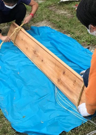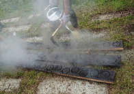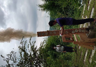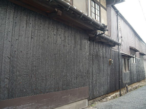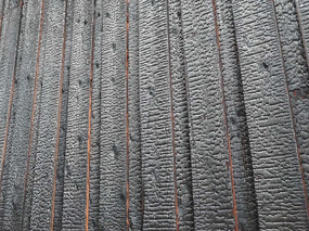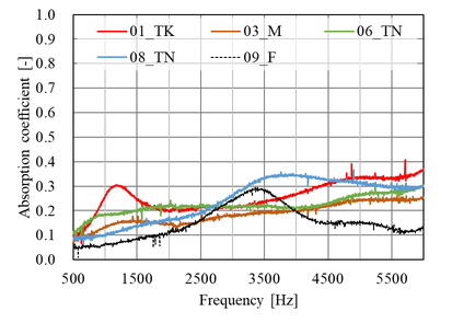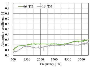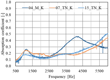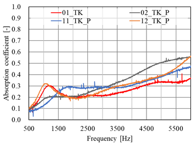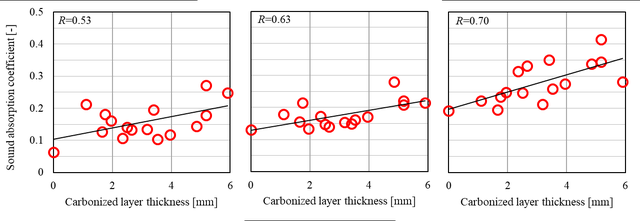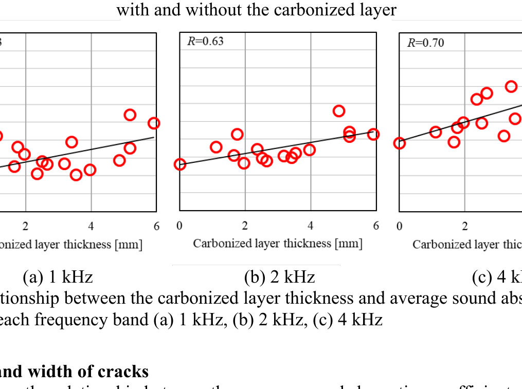 A A A A study on normal incident sound absorption characteristics of Japa- nese traditional cedar board, yakisugi Akiko Sugahara 1 , Kentaro Okamura 2 , Yasuhiro Hiraguri 3 Kindai University 3-4-1 Kowakae, Higashiosaka, Osaka, 577-8502, Japan Noboru Yasui 4 , Chihiro Kaku 5 Team SAKURA #501, 2-21-10 Yoyogi, Shibuya, Tokyo, 151-0053, Japan ABSTRACT Yakisugi is made by charring the surface of a cedar board to form a thin carbonized layer, which is said to improve durability, weatherability and fire resistance. It is a traditional Japanese exterior material that has become popular overseas due to its performance and visual texture. Recently, it has been attracting attention for its use as an interior material, but its basic performance is still unknown. In this study, we focus on the sound absorption characteristics of yakisugi as one of the investigations to understand its performance as an interior material. The carbonized layer of yakisugi is expected to have sound absorbing performance because of its porous nature. As a basic investigation, the sound absorption characteristics at normal incidence are measured using an impedance tube and compared with the carbonized layer conditions. It is found that yakisugi has sound absorption per- formance in the high frequency range. Moreover, the characteristics are depending on the thickness and surface properties of the carbonized layer. 1. INTRODUCTION Japan is a country with a large forest area, and there have been many wooden buildings since ancient times. Timber has been used for structural materials, interior and exterior materials, and many other purposes. “ Yakisugi ” is a traditional exterior material commonly used in Japan, especially in the middle and western parts of the country [1]. This is a Japanese cedar board whose surface is charred to form a thin carbonized layer (see Figure 1). It has been said that the formation of this carbonized layer pro- tects the surface of the cedar board and improves the durability, weatherability, fire and water re- 1 sugahara@arch.kindai.ac.jp 2 okamura@arch.kindai.ac.jp 3 hiraguri@arch.kindai.ac.jp 4 yasui@teamsakura.jp 5 chihiro.k@teamsakura.jp ‘inter.a 21-24 AUGUST SCOTTISH EVENT CAMPUS ? O? ? GLASGOW sistance, and biological resistance to mold and decay fungi. Recently, it has become popular in west- ern countries due to its beautiful texture and appearance. Some researchers showed the possibility of applying the traditional Japanese yakisugi construction method to European building materials, such as pine and oak, and the physical properties of the charred surface as the exterior materials are inves- tigated [2-6]. However, there are few such studies on the physical properties of yakisugi , and much remains to be learned. In addition to the use as exterior materials, demand for interior materials has been increasing in recent years. However, its performance as an interior material has not been well studied and is little understood. In this study, experimental investigations are conducted to determine its potential use as an interior material, especially as sound-absorbing material. The porousness of yakisugi ’s carbonized layer may have the sound absorption performance. In this paper, the sound absorption characteristics of yakisugi at normal incidence are investigated using the impedance tube. The effects of various parameters of yakisugi , such as the thickness of the carbonized layer, the charred surface, and the presence or ab- sence of knots and cracks, on the sound absorption coefficient are examined. ‘inter.a 21-24 AUGUST SCOTTISH EVENT CAMPUS ? O? ? GLASGOW Section 2 provides an overview of the yakisugi production process and case studies. Section 3 describes experiments using the impedance tube. Finally, Section 4 summarizes this study. (a) Exterior wall of yakisugi in Hiroshima, Japan (b) Yakisugi surface tecture Figure 1: Appearance examples of yakisugi 2. MANUFACTURE OF SPECIMENS 2.1. Surface carbonization procedure There are two types of yakisugi production methods: one is the traditional hand-burning method, and the other is machine-burning in a factory. In this study, a traditional hand-burning method called “ sankaku-yaki ” is used to make samples. The procedure is illustrated in Figure 2. (1) Three cedar boards are assembled and bound with straw rope to form a triangular chimney. (2) Wasted paper placed at the bottom of the chimney is ignited. (3) Then, the board surface is evenly baked due to the chimney effect. (4) When the surface is sufficiently browned, cut off the straw rope and let it cool down by exposing to the air and sprinkling water over it. The burning duration is about 5 minutes at most, depending on the moisture content of the board and the thickness of the carbonized layer. More- over, when the wood is heated, and the temperature exceeds about 200 ℃ , gasification occurs. The combustible gases produced during this process combine with oxygen in the air to cause combustion. This causes a volume reduction, resulting in shrinkage of the material and a distinct pattern of cracks on the carbonized layer. Finally, (5) in order to measure the sound absorption coefficient at normal incidence using a 30 mm-diameter impedance tube, yakisugi board was hollowed out with a hole saw. Note that the 10-cm-diameter circles pre-cut in Figure 2(5) are for use in other experiments and are not relevant to this study. In this study, 170 mm × 2,000 mm Japanese cedar boards from Nara are charred using “sankaku- yaki.” The thicknesses are approximately 21 mm and 35mm. Although it is common practice to char the sap-side of the board, we prepared samples carbonized on both the sap-side and the heart side to examine the difference in charring surfaces. Because the sound absorption performance of yakisugi is presumed to be highly dependent on the thickness of the carbonized layer, samples with three different carbonized layer thicknesses are prepared; “thin,” “norma