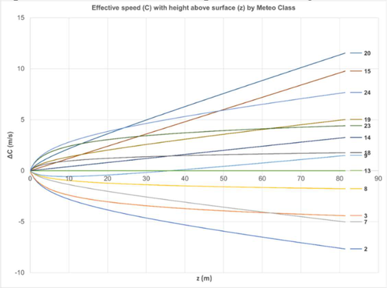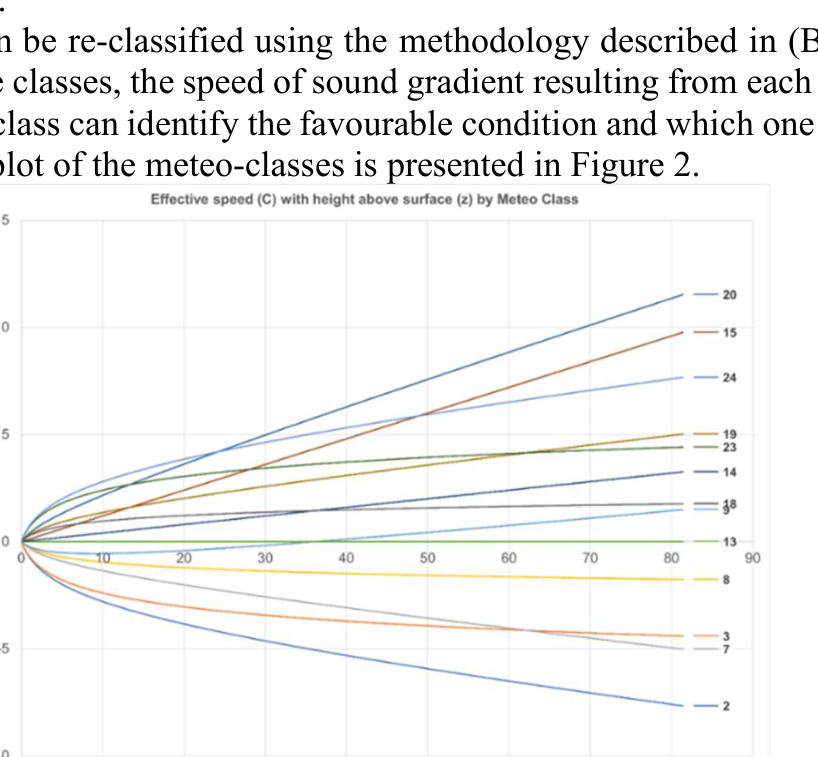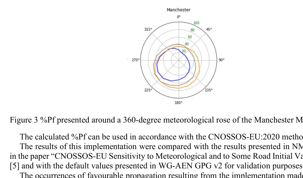 A A A Approaches to determining and the effects of utilising Favourable Propagation on CNOSSOS-EU calculated levels Davide Vinci 1 Noise Consultants Limited 6 Bankside, Crosfield Street, Warrington, WA1 1UD Joshua Nunn 2 Noise Consultants Limited 23 Coldharbour Road, Bristol BS6 7JT ABSTRACT This study has analysed the consequence of modelling favourable meteorological (met) condi- tions for sound propagation of sound in line with the CNOSSOS-EU:2020 and identified the most feasible methodology for the calculation of yearly average probability of occurrence of favourable propagation. Literature reviews have allowed the identification of two methodolo- gies and their met data requirements. The analysis on the availability of the met data at the met stations across UK have shown that the only feasible methodology is the NORD2000 methodol- ogy. English meteorological data have been processed to obtain long term means for relevant meteorological variables. Once the meteorological data was extracted and processed, a com- puter program was written to implement the NORD2000 methodology and, therefore, derive the percentages of favourable propagation (%Pf). Calculated %Pf are presented in tables and in the form of meteorological roses for all the available met sites across England. Furthermore, an analysis of the effect of meteorological conditions on CNOSSOS-EU calculated noise levels have been undertaken via the implementation of a test model in LimA and also a comparison of the results of different scenarios. The analysis of the results has indicated that compared to the NORD2000 model, all other models produce an under/over estimation of the results. 1. INTRODUCTION The Department for Environment, Food and Rural Affairs (Defra) commissioned a series of stud- ies investigating the sensitivity of the CNOSSOS-EU noise assessment method. These studies were commissioned to support the data governance and quantify potential uncertainties in Defra’s noise model. As part of these studies, this paper seeks to identify the requirements for met data within CNOSSOS-EU, a suitable methodology to determine the occurrence of favourable meteorological conditions, and its effect on the propagation of sound outdoors. CNOSSOS-EU:2020 [2][3] does not include a description of how the occurrence of favourable propagation is to be determined. Therefore, as there is currently no official methodology to develop the occurrence of favourable propagation, and the potential effect of the value on the results is un- known, both aspects were covered as part of this study. 1 Davidevinci@noiseconsultants.co.uk 2 joshuanunn@noiseconsultants.co.uk i, orn inter.noise 21-24 AUGUST SCOTTISH EVENT CAMPUS ? O? ? GLASGOW 2. LITERATURE REVIEW After literature review, two methodologies were identified as feasible for the calculation of the speed of the sound gradient and, consequently, the %Pf. The two methodologies identified are de- scribed in the following documents: Sétra, Road noise prediction - Noise propagation computation method including meteoro- logical effects (NMPB 2008), 2008 [1]; and Raimo Eurasto, NORD2000 for road traffic noise prediction: Weather classes and statistics, Vtt Technical Research Centre of Finland, 2006 [4]. The first document describes the French national methodology for calculation of outdoor sound propagation, on which the CNOSSOS-EU:2020 point-to-point propagation methodology is based. The second methodology is also cited within the NMPB 2008 method as a valid methodology for the calculation of the %Pf. This method requires air temperature, wind direction and velocity, and cloudiness. 2.1. Meteorological Data available from Met stations across England Meteorological data in England is primarily collected, aggregated and managed by the UK Met Office, for the purposes of weather forecasting and provision to stakeholders. Hourly average data for various meteorological variables have been acquired for this study, spanning the time period 2015 to 2020. Following review of meteorological data, the parameters: wind direction; wind speed; tem- perature; cloud cover; and relative humidity; were found to be widely available within meteorological data recorded at English meteorological stations. The majority of meteorological variables required by each of the proposed methodologies are measured at most of the meteorological stations for which data are available. However, some of the inputs required by the methodology described in the Sétra document for use with NMPB 2008 are not widely available. These include solar radiation and terrain moistness, which are parameters that are rarely measured at English meteorological stations. Therefore, due to the complexity in acquiring and determining some of the meteorological data required by the methodology described in the Sétra document for NMPB 2008, the NORD2000 meth- odology was identified as the most feasible and practical way to calculate the occurrence of favoura- ble propagation in England. 3. METHODOLOGY 3.1. NORD2000 Within NORD2000, the effect of the meteorological conditions on sound speed gradient is calcu- lated using Equation 2: బ ቁ+ 𝐵 ௭ + 𝐶(0) (1) 𝐶= 𝐴𝑙𝑛ቀ1 + Where: z height above ground surface z 0 the roughness length A coefficient of the logarithmic term (m/s) B coefficient of the linear term (1/s) C(0) sound speed at height z = 0 m (m/s). i, orn inter.noise 21-24 AUGUST SCOTTISH EVENT CAMPUS ? O? ? GLASGOW The effect of meteorological conditions on the propagation of sound can then be derived by the combination of logarithmic and linear sound speed profiles. The A and B coefficients are a function of the aerodynamic and thermal conditions, see Equation 3 below, and are themselves a function of three other parameters and wind direction in respect of sound propagation direction: friction velocity (u*) Monin-Obukhov length (L) temperature scale (T*) These three parameters can be derived, provided three characteristics are 