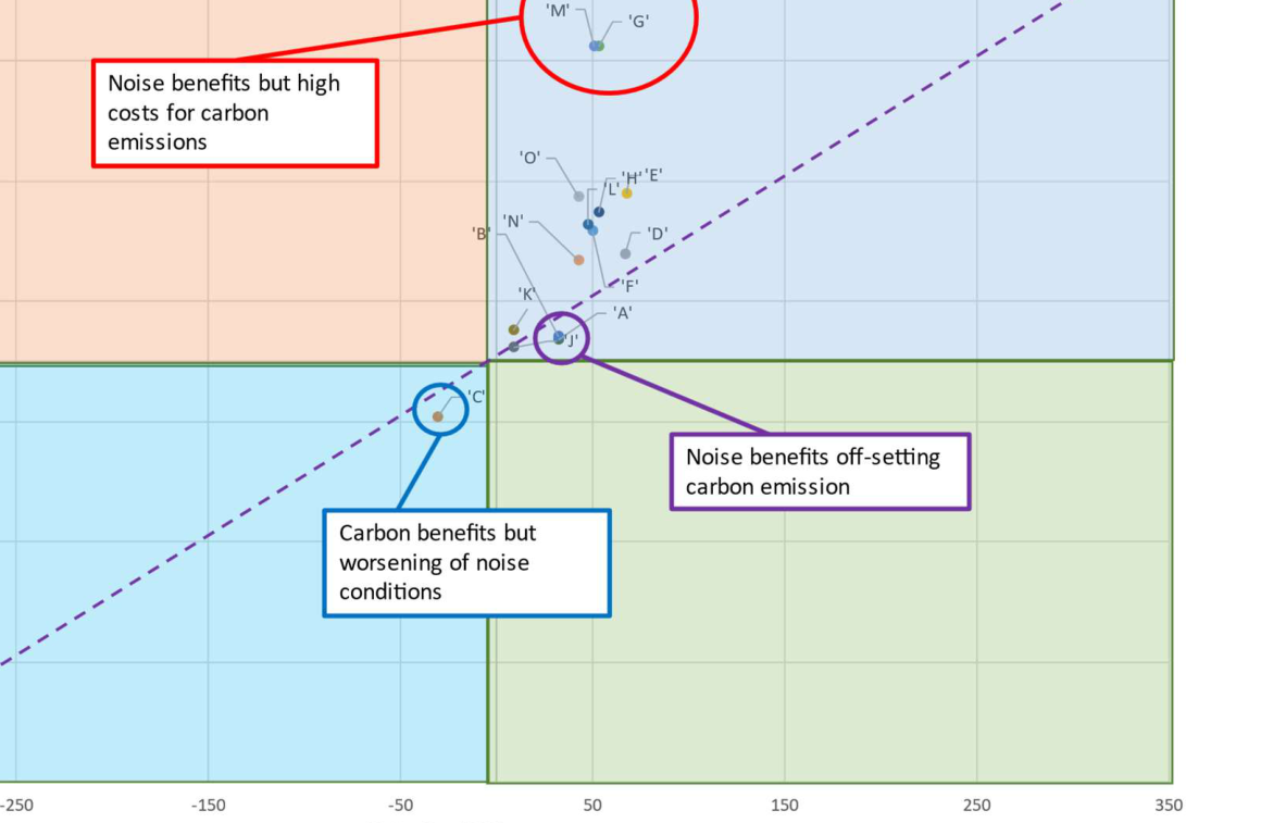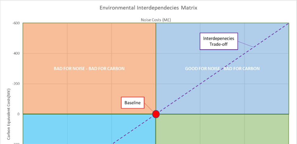 A A A Quantifying Carbon in Airspace Noise Management Measures James Trow 1 Noise Consultants Ltd 6 Bankside, Crosfield Street, Warrington WA1 1UD Pierangelo Di Stefano 2 Noise Consultants Ltd 24 Greville Street, Farringdon, London EC1N 8SS Davide Vinci 3 Noise Consultants Ltd 6 Bankside, Crosfield Street, Warrington WA1 1UD ABSTRACT Civil aviation is being constrained by the poor understanding of environmental and operational interdependencies. Noise, and carbon emissions belongs to different physical spheres not di- rectly comparable and managed under separate regulations. Noise reduction has been the pri- ority for the aviation industry for many years, but this recently shifted to decarbonisation to achieve Net Zero emissions. Although carbon emissions are one of the main contributors to environmental impacts at global level, we still must consider local impacts, like noise, affecting environment and communities. We developed a process to describe the interrelations between carbon and noise emissions for Airspace Management. Through this process, overall environ- mental benefits and disadvantages of airspace change concepts, operational procedure changes are assessed, considering both the monetisation of harmful effects and the costs of the carbon emissions impacts on the environment. While some designs provide benefits for noise or carbon emissions, others might provide minimum benefits despite the high costs associated either for noise or carbon, or their effectiveness might depend on the location where they occur. In the context of sustainable aviation, the process we developed provides a tool for airspace developers to identify the trade-off between noise and carbon emission to design an effective sustainable airspace. 1. INTRODUCTION Civil aviation is becoming increasingly constrained by the need to balance environmental, opera- tional, and economic interdependencies. Whilst carbon emissions are one of the main contributors to environmental impacts, especially at global level, it is important to also consider the other environ- mental impacts, such as noise, which can have more a local impact on the environment and local communities. 1 jamestrow@noiseconsultants.co.uk 2 pierodistefano@noiseconsultants.co.uk 3 davidevinci@noiseconsultants.co.uk i, orn inter.noise 21-24 AUGUST SCOTTISH EVENT CAMPUS ? O? ? GLASGOW Each of these environmental impact contributors belongs to different physics domains, which are not directly comparable, are often managed under separate policies and regulations, and do not have common cost functions other than their monetary values for a meaningful comparison, highlighting the fact that to date there is still a poor understanding of the interdependencies that relate environ- mental, operational and socio-economic factors. Challenges can occur when seeking minimise the impact of one environmental aspect which does not necessarily mean that all others are reduced. In fact, decisions made to manage an individual environmental aspects could be in direct conflict with the management and impacts of another. An example of this conflict arose less than 20 years ago with the Airbus A380, where fuel burn efficiency was sacrificed to some small extent to meet the inflexible noise regulations. However, noise reduction has been too small to make any noticeable difference to people on the ground, while the whole-life cost of the increased fuel burn is considerable [1] [2]. In less than a decade the priorities of the aviation industry changed with the industry now focused mainly on fuel efficiency and on the process of decarbonisation to meet the net zero carbon targets [3]. When considering airspace design in particular, an understanding of the potential environmental effects is key to ensuring that certain outcomes are prioritised and appropriate decisions are reachedFor instance, this is part of the consenting process in the UK [4]. For instance, a priority could be to trade more fuel burn and associated carbon emissions for reducing the population exposed to aircraft noise nearer to the airport. Vice versa, prioritising fuel efficiency by having more direct routes could result in more densely populated areas been overflown. When considering how airspace is managed, each of these environmental aspects requires detailed consideration. 2. BACKGROUND The considerable increase of the air traffic has implied a significant impact upon the environment during the last three decades gaining importance for aircraft manufactures, air traffic authorities and policy makers around the world, in order to reduce the environmental impact caused by aircraft op- erations. Key targets have been set at European levels that long for a zero pollution vision to be achieved by 2050, To steer towards the 2050 vision, 2030 targets to speed up emission reduction have been set. Among these there are [5]: • Reduction of more than 55% the health impacts (premature deaths) of air pollution; • Reduction by 30% of the share of people chronically disturbed by transport noise. These targets are not aviation specific but nonetheless potentially introduce political drivers for the entire industry. However, the quantification of the overall effects is difficult due to efforts in finding an appropriate model that can properly describe the interdependencies between noise and emissions as to date no such model has been identified to express interdependencies through a single applicable metric [2]. Interdependencies between noise, NO x and CO 2 emissions, for example, are complex and require careful evaluation prior to regulatory, operational or design decisions. As regulations become more stringent, the relevant trade-offs become more difficult to address. The identification of a sensible trade-off between emissions and noise should be therefore one of the main objectives of the aviation industry. i, orn inter.noise 21-24 AUGUST SCOTTISH EVENT CAMPUS ? O? ? GLASGOW In this identification exercise it is 