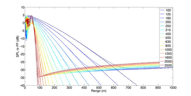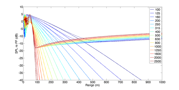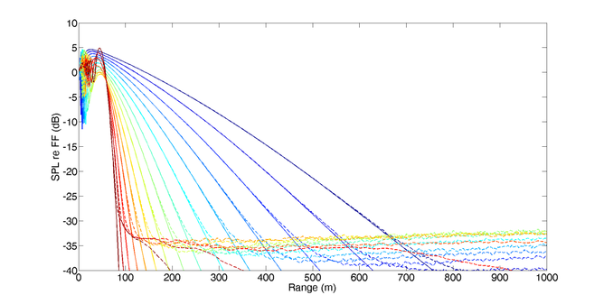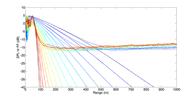 A A A Turbulent scattering in upwardly refracting atmospheres : towards a practical approach Timothy Van Renterghem 1 Ghent University Department of Information Technology, WAVES Research Group Technologiepark 126, B 9052 Gent-Zwijnaarde, Belgium Kirill Horoshenkov 2 University of Sheffield, Department of Mechanical Engineering, Sheffield S1 3JD, UK ABSTRACT Neglecting turbulent scattering when modeling sound propagation in an upwardly refracting atmosphere leads to the prediction of unrealistically low sound pressure levels. Engineering models then typically impose a distance independent constant value for the sound pressure level relative to free field propagation. However, such an approach neglects the strong temporal variability in the sound pressure level observed in the acoustic shadow zone due to the scattering phenomenon. A modeling framework is presented to account for the effect of such scattering contributions, showing that the level variations might be as large as 20 dB in such zones. An approach to feed the model with the necessary turbulence input data is discussed as well. The engineering type scattering model further shows to be in line with more advanced but highly time-consuming predictions of outdoor sound propagation in upwardly refracting and scattering atmospheric boundary layers. This work contributes to more accurately predicting long-term sound pressure levels outdoors, also in situations where low levels might be of interest, e.g. near wind turbines. 1. INTRODUCTION In the case of an upwardly refracting atmosphere, a so-called acoustic shadow zone is formed at some distance from the sound source [1][2][3]. There, contributions from that source become very limited. Besides some diffraction into the shadow zone, also turbulent scattering plays a role. The acoustic energy received due to scattering on the atmospheric turbulence is typically small, but such contributions do become relevant in these very low exposure zones. Note that both diffraction and turbulent scattering are strongly frequency and distance dependent, making its modeling challenging. Neglecting turbulent scattering in the acoustic shadow zone leads to unrealistic low sound pressure levels, or sound pressure level distributions get extremely long tails [4]. To avoid this, engineering models typically impose a fixed and frequency independent minimum level, relative to free field sound propagation. A value that is often used is -20 dB relative to free field [1]; a similar limit can 1 timothy.vanrenterghem@ugent.be 2 k.horoshenkov@sheffield.ac.uk be found e.g. in ISO9613-2 [5] or CNOSSOS [6] when predicting the noise shielding by a diffracting device. However, such an approach neglects the temporal variability in the level that might be observed in sthe acoustic shadow zone. Here the atmospheric boundary layer can be either strongly or weakly scattering. A scattering model that does include distance, sound frequency and scattering degree has been proposed before [7], and was included in the Harmonoise outdoor sound propagation model to correct predictions neglecting turbulence [8]: , (1) where is sound frequency, is the source-receiver separation, and is a measure of the turbulence strength. The latter is a combination of the and , the turbulence structure parameters for temperature and velocity: , (2) with and the temperature and sound speed at ground level, respectively. Finally, the sound pressure level prediction relative to free field, neglecting turbulent scattering, should be added with the scattering contribution expressed in Equation (1): (3) In this work, this model has been analyzed by comparing to more advanced wave-based predictions where turbulent scattering is directly modeled. In addition, quantifying the “scattering strength” is not straightforward. Standard observations by meteorological stations, and even meteo towers, typically do not provide the necessary information. A methodology has been presented here to account for the temporal variation in scattered contributions by the atmosphere. 2. METHODOLOGY In this work, meteorological tower data was used to describe the refractive state of the atmospheric boundary layer. A linear-logarithmic effective sound speed c eff profile is well suited to fit on such measured air temperature and wind speed data at multiple heights: , (4) with z being the height and z 0 the aerodynamic roughness height. More information on the processing can be found in Ref. [9]. Based solely on temperature and wind speed profiles, estimating the turbulent state of the atmosphere would be at least unreliable. Therefore, the ERA5 database [10] was consulted, providing hourly estimates of a wide range of atmospheric parameters, allowing to estimate the local turbulence strength. This so-called re-analysis data is available at a 30 km by 30 km resolution. The data point closest to the tower was selected, ensuring the link between the (fitted) sound speed profile and the turbulence parameters. The surface heat flux Q H , surface temperature T s and friction velocity u * were retrieved from that database. These parameters allow calculating the Monin-Obhukov length L MO : , (5) where is the gravitational acceleration (9.81 m/s 2 ), is the heat capacity of air at constant pressure (1000 J/kg), is the density of air (1.2 kg/m 3 ), and the von Karman constant for air (0.4). The temperature scale can be calculated as follows: (6) and related length scale , using following empirical expressions [2]: In the atmospheric surface layer, air temperature fluctuations can be described by its variance (7) (8) In case of shear dominated surface layer turbulence, the variance of the horizontal component of the wind speed and its length scale can be approached as follows [2]: (9) . (10) In a final step, Kolmogorov’s statistical representation of a turbulent atmosphere in the inertial subrange is used [2]: (11) (12) where denotes the gamma function. The inertial subrange is most 