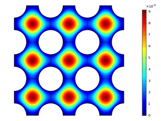 A A A Emission and propagation of sound waves in porous media with active inner heat sources Rodolfo Venegas 1 University Austral of Chile Institute of Acoustics, P.O. Box 567, Valdivia, Chile Claude Boutin 2 Université de Lyon - Ecole Nationale des Travaux Publics de l’Etat, LGCB / LTDS UMR-CNRS 5513 / CeLyA, Rue Maurice Audin, Vaulx-en-Velin 69518, France Gabriel Núñez 3 University Austral of Chile Institute of Acoustics, P.O. Box 567, Valdivia, Chile ABSTRACT Wave propagation through porous media with active inner heat sources is investigated in this paper. Through the use of the two-scale asymptotic method of homogenisation, it is found that a macroscopic non-homogeneous wave equation describes the emission and propagation of sound waves in such active porous media. The upscaled model is verified numerically for the cases of single and double porosity media, and shows that the general properties of the e ff ective parameters of the porous media are not altered by the inner heat sources. Instead, the inner heat sources contribute to the non-homogeneous term in the upscaled wave equation. This paper also explores the potential of using active inner heat sources in porous media for controlling incident sound waves in a practical scenario. 1. INTRODUCTION Acoustics of rigid-frame porous media with active inner heat sources is studied in this paper. These heterogeneous media, in their simplest form, comprise a solid frame and a single fluid-saturated pore network in which externally-actuated volumetric heat sources are placed. More complex materials, such as double porosity composites with heat sources in the pore fluid network of the most permeable constituent, are also investigated. The two-scale asymptotic method of homogenisation [1] is used to establish the macroscopic description of emission and propagation of sound waves in rigid-frame periodic porous media with active inner volumetric heat sources. 1 rodolfo.venegas@uach.cl 2 claude.boutin@entpe.fr 3 gabriel.nunez@alumnos.uach.cl a slaty. inter.noise 21-24 AUGUST SCOTTISH EVENT CAMPUS O ¥, ? GLASGOW The phenomenon of sound directly produced by heat is the subject of study of thermoacoustics [2]. A great deal of research has reported theoretical and / or experimental results on the acoustic emission, due to heat sources, by thermophones made of either solid or porous materials [3–7]. Several attempts to correctly model this acoustic emission phenomenon in porous media have been reviewed in [8]. However, none of the reviewed models reduces to the classical upscaled model of wave propagation in rigid-frame porous media [1,9–11] when the heat sources are o ff . Another instance in which heat sources are of use is in photoacoustic spectrometry [12]. This is a technique in which a modulated light beam impinging a sample can heat it up and cool it down in a cycle and, depending on how fast the cycle is, sound can be produced. Well established applications of photoacoustic spectrometry are trace gas analysis and spectroscopy of solid surfaces [12]. This non-exhaustive account of literature, together with recent investigations on sound propagation in metamaterials in which the changes in or gradients of temperature a ff ect their acoustical properties, e.g. [13,14], provide further motivation for the present study. This work generalises the theories of acoustic wave propagation in rigid-frame single porosity [1, 9–11] and double porosity composite materials [15, 16] by accounting for active inner heat sources in such materials. For the sake of simplicity, only local volumetric heat sources as forcing terms are considered in this work. However, other internal mechanisms of thermal excitation are possible and their study is a matter of future work. The format of the paper is as follows. The upscaled theory of wave emission and propagation in porous media with volumetric heat sources is presented in § 2. This includes the analysis of the e ff ective parameters and sources arising in the upscaling process. In § 3, the acoustic properties of a novel e ff ective parameter and those of the di ff erent e ff ective sources are discussed, along with the numerical verification of the theory and some examples of acoustic descriptors of rigidly-backed layers of active porous media. Concluding remarks are presented in the last section of the paper. 2. THEORY 2.1. Geometry and general assumptions Figure 1 shows a schematic diagram of the geometry of a single porosity air-saturated porous medium with identical volumetric heat sources Q placed in the pore fluid network Ω f . The porosity of the material is φ = Ω f / Ω , where Ω is the total volume of the material, Γ is the fluid-solid interface, and n is the outward-pointing vector normal to Γ . The period of the material is ℓ and the macroscopic characteristic size L is related to the sound wavelength λ through λ = 2 π L . Long-wavelength regime is considered, which means that λ ≫ ℓ . This ensures a large separation of scale, quantified through a small parameter ε = ℓ/ L ≪ 1, and the existence of a representative elementary volume Ω . Harmonic dependence of the type e j ω t , where ω is the angular frequency and t represents the time, is adopted. Figure 1: Scheme of the geometry of a porous medium with active inner heat sources in the pore fluid network. 2.2. Local description The local equations that govern the propagation of sound waves in a single porosity rigid-frame material are the linearised equations of conservation of momentum (Equation 1), mass (Equation 2), and energy (Equation 3), and the equation of state (Equation 4), i.e. div(2 η D ( v )) −∇ p = j ωρ 0 v in Ω f , (1) j ω ρ ρ 0 + ∇· v = 0 in Ω f , (2) ∇· κ ∇ τ − j ωρ 0 c p τ = − j ω p − Q in Ω f , (3) p P 0 = ρ ρ 0 + τ τ 0 in Ω f . (4) In these equations, p , τ , and ρ represent, respectively, the excess of pressure, temperature, and density, while v is the fluid 